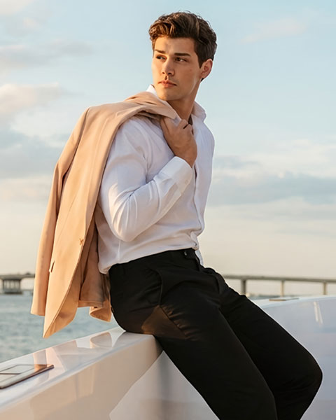 Apricot Orange Printed Slim Fit Semi Casual Shirt | Greenfibre