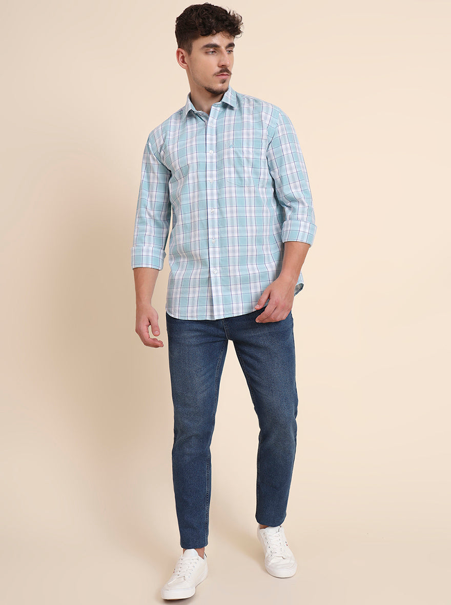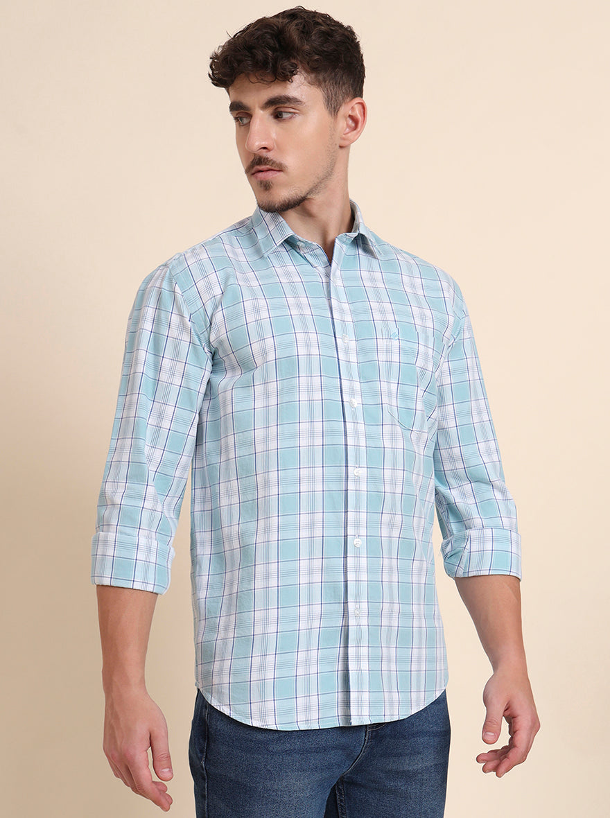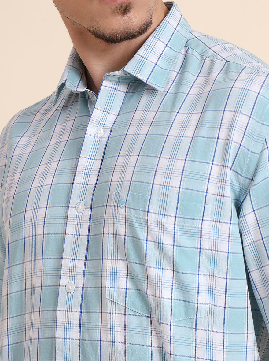 Aqua Blue Checked Smart Fit Semi Casual Shirt | Greenfibre