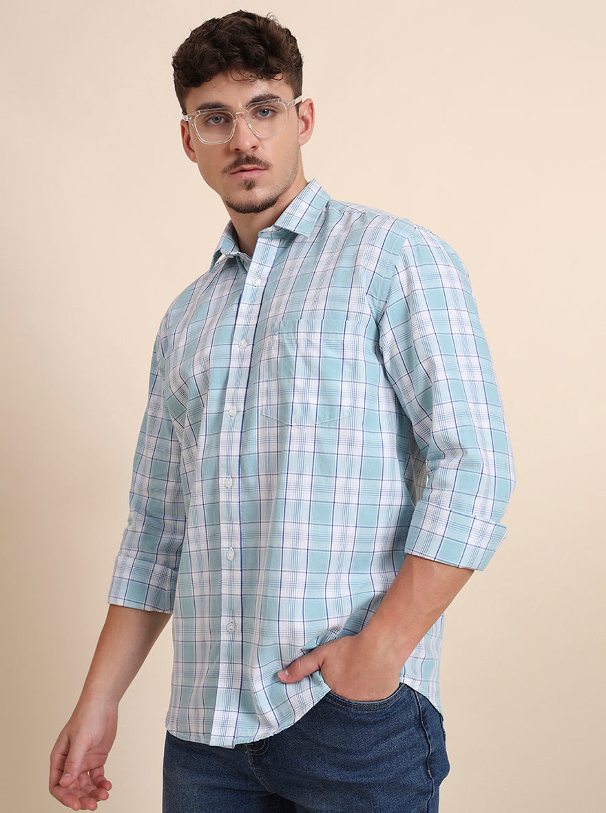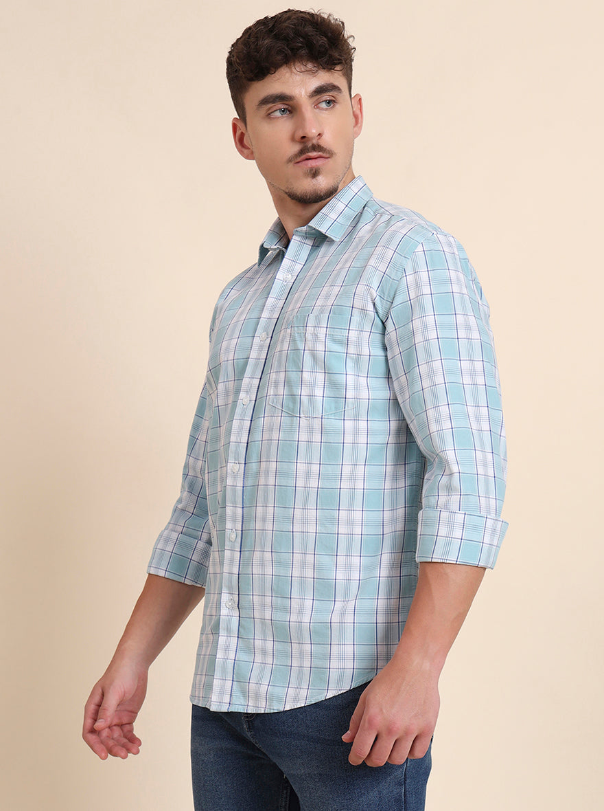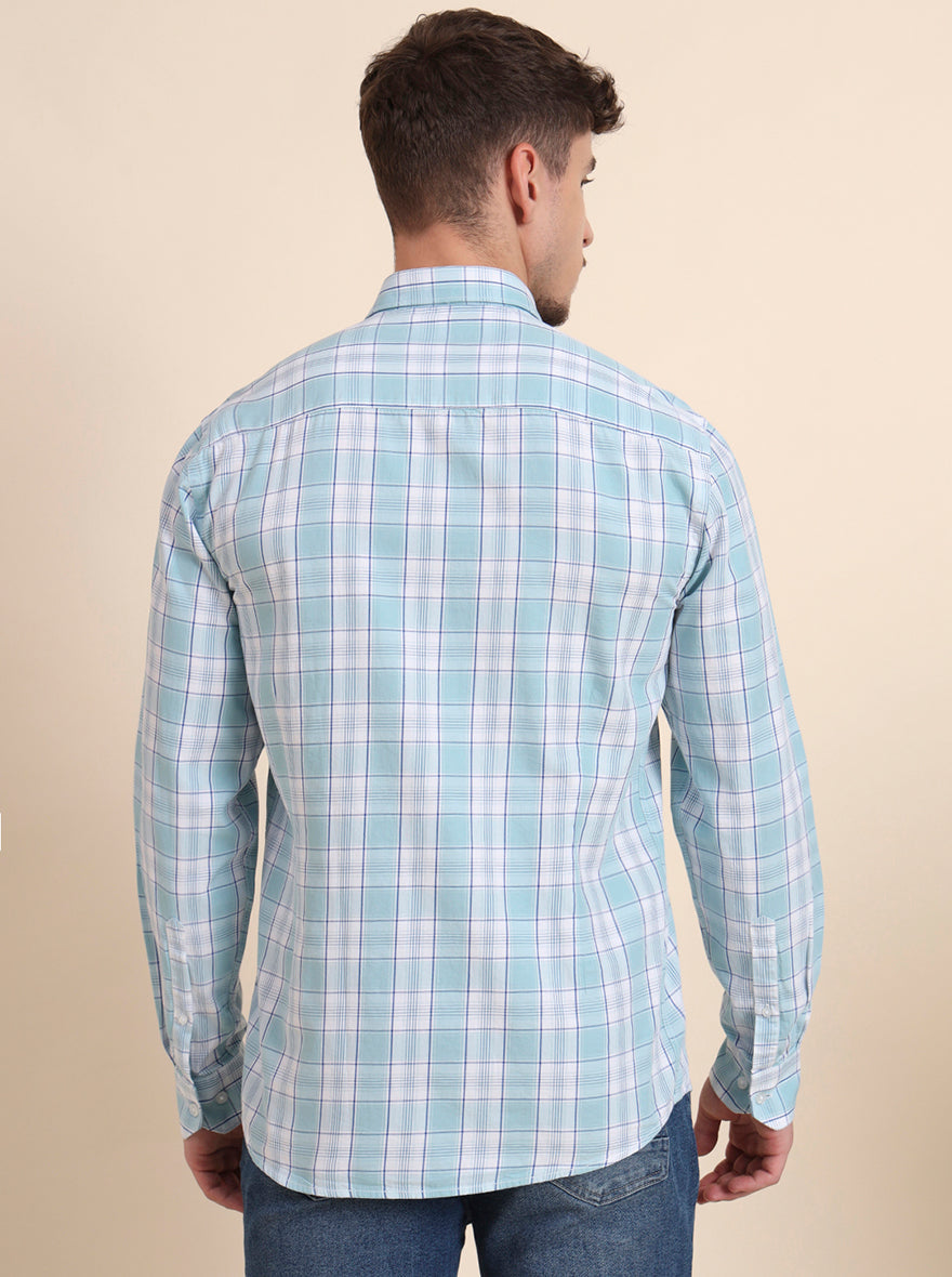 Aqua Blue Checked Smart Fit Semi Casual Shirt | Greenfibre