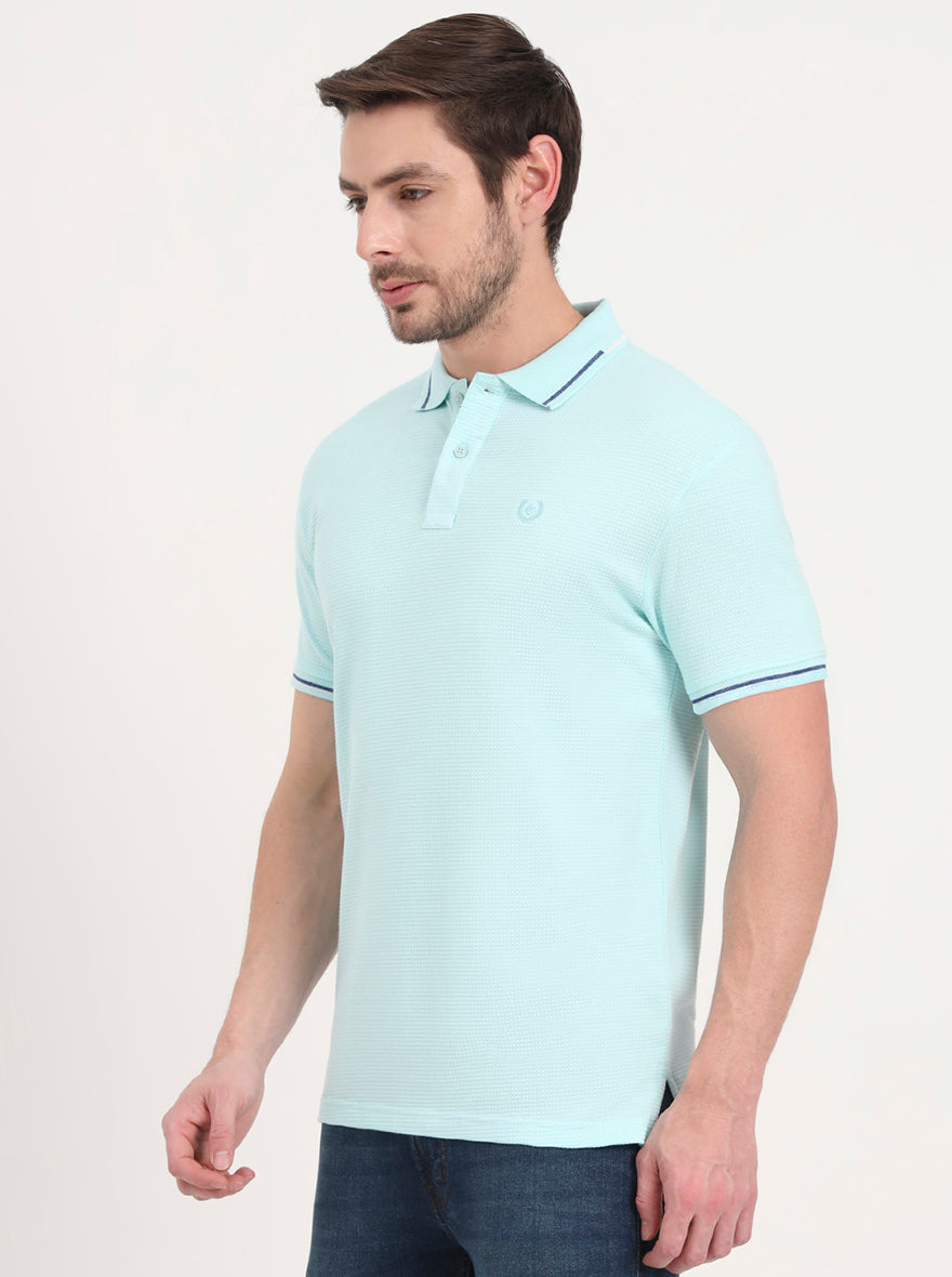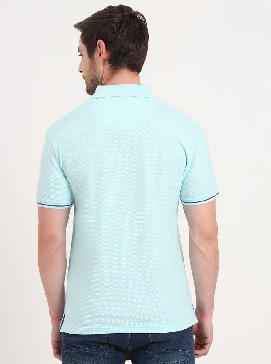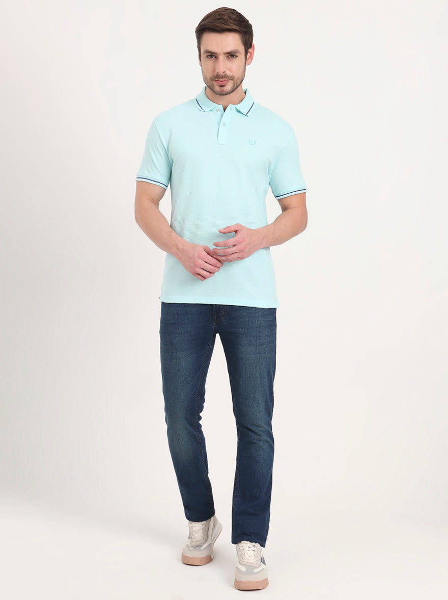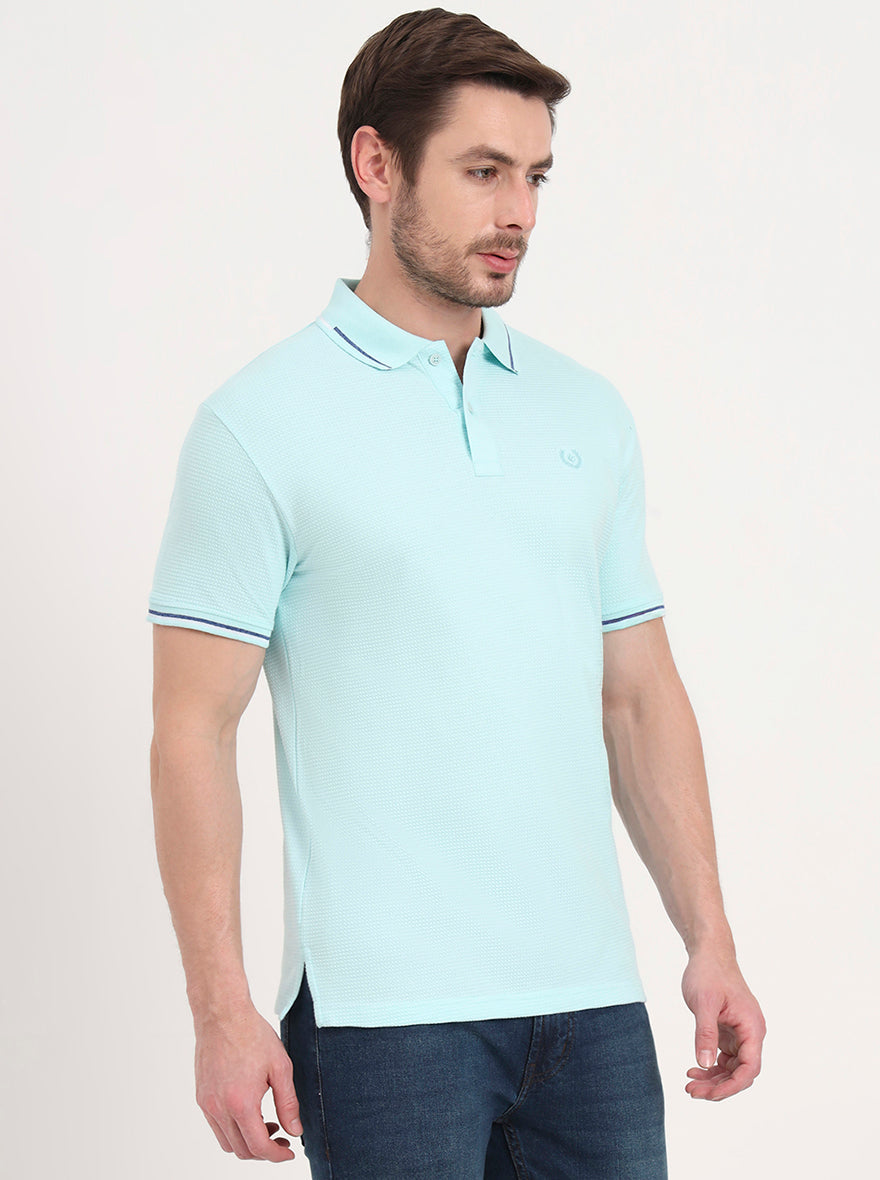 Aqua Blue Solid Slim Fit Polo T-Shirt | Greenfibre