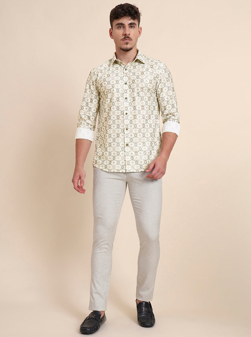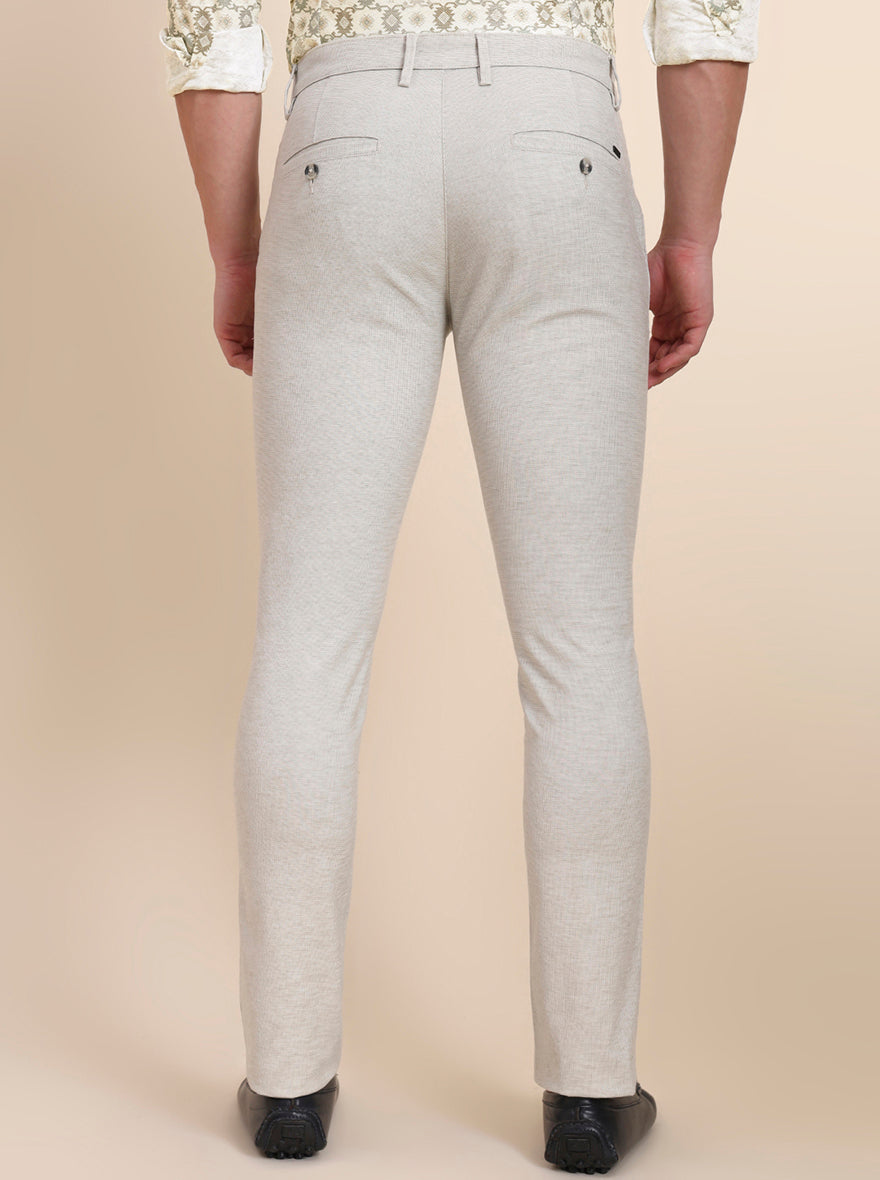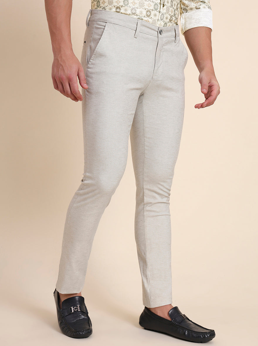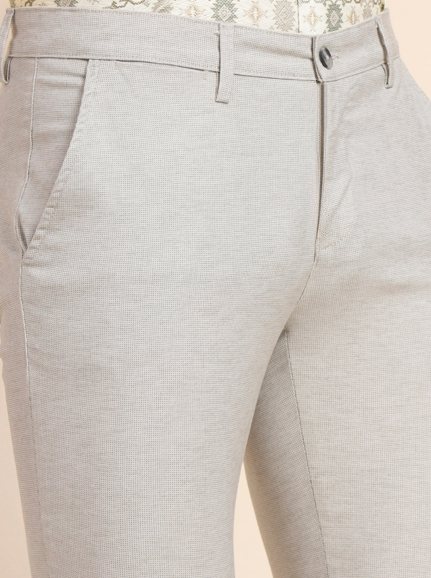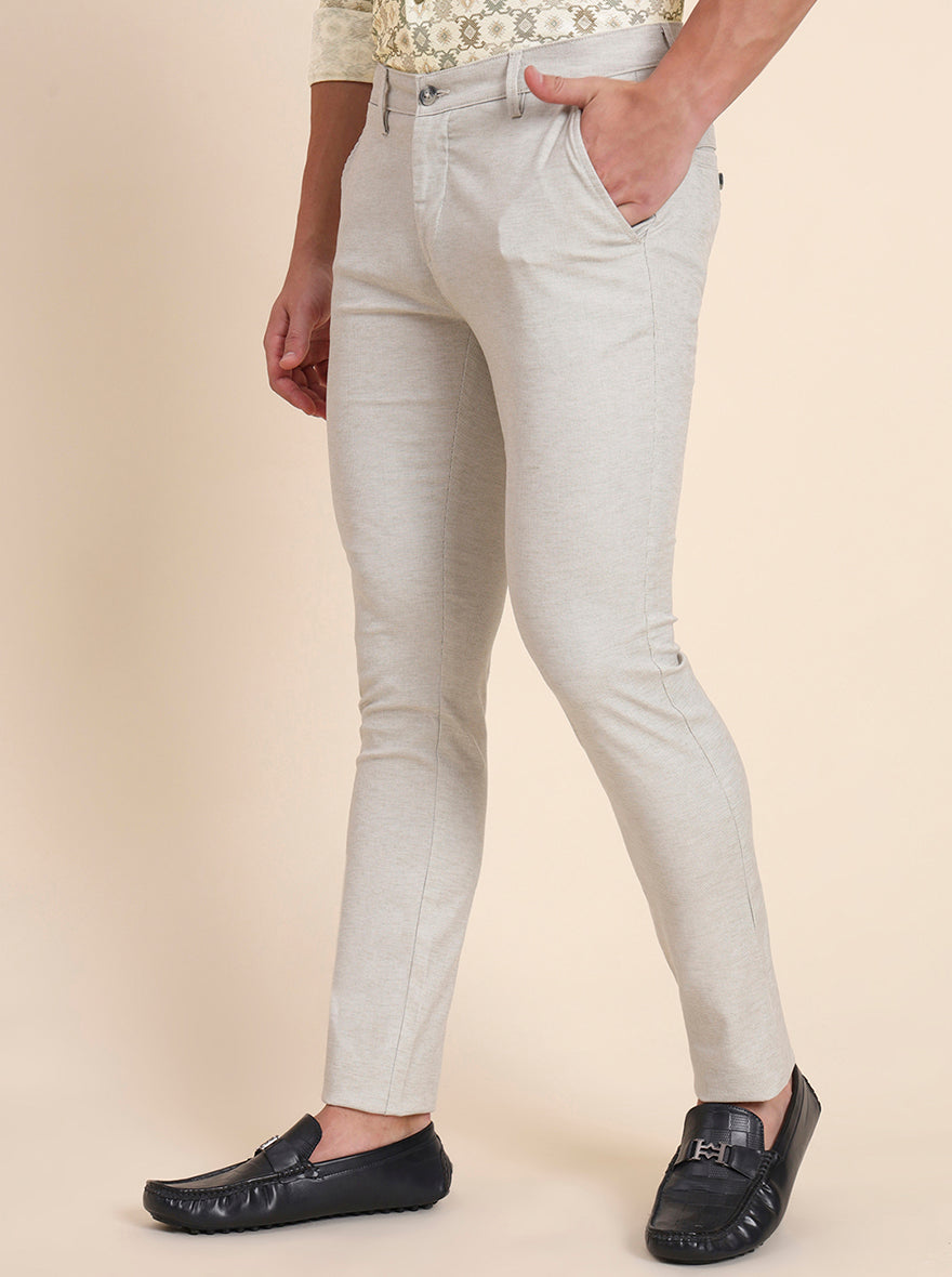 Beige Printed Super Slim Fit Casual Trouser | Greenfibre