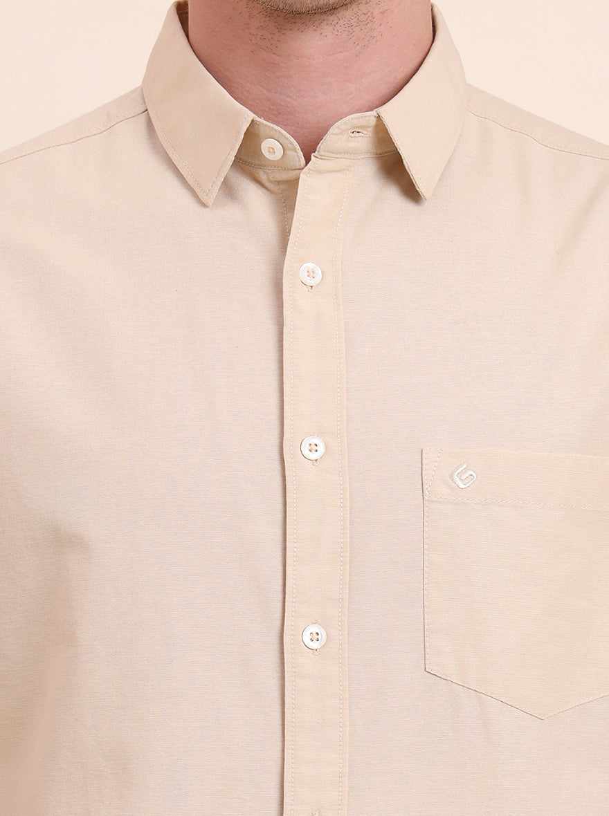 Beige Solid Slim Fit Casual Shirt | Greenfibre