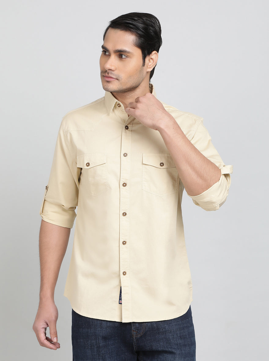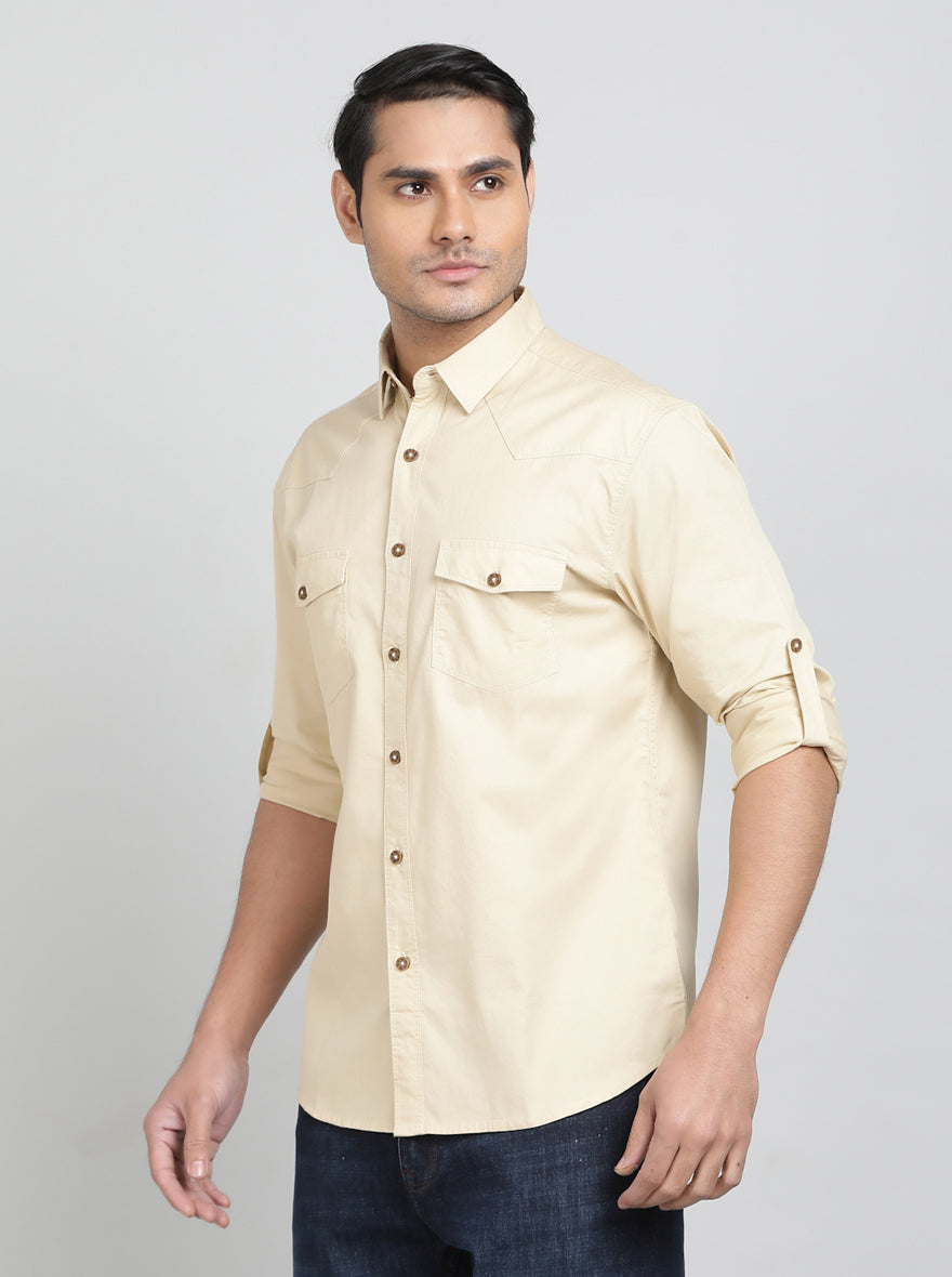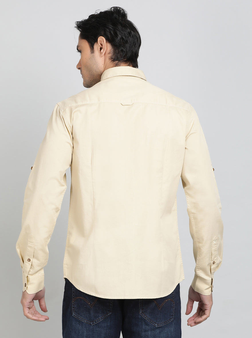 Beige Solid Slim Fit Casual Shirt | Greenfibre