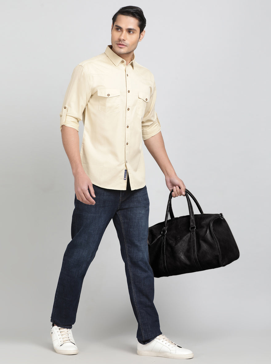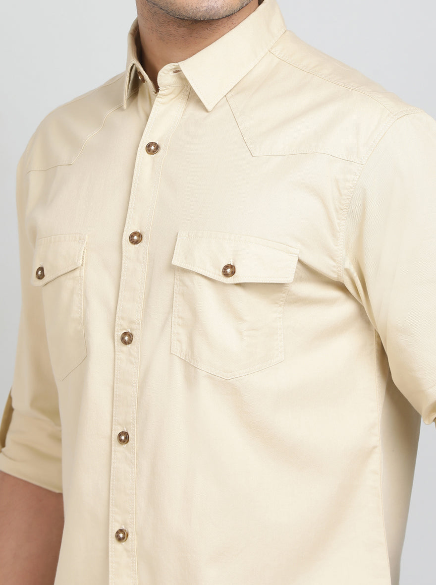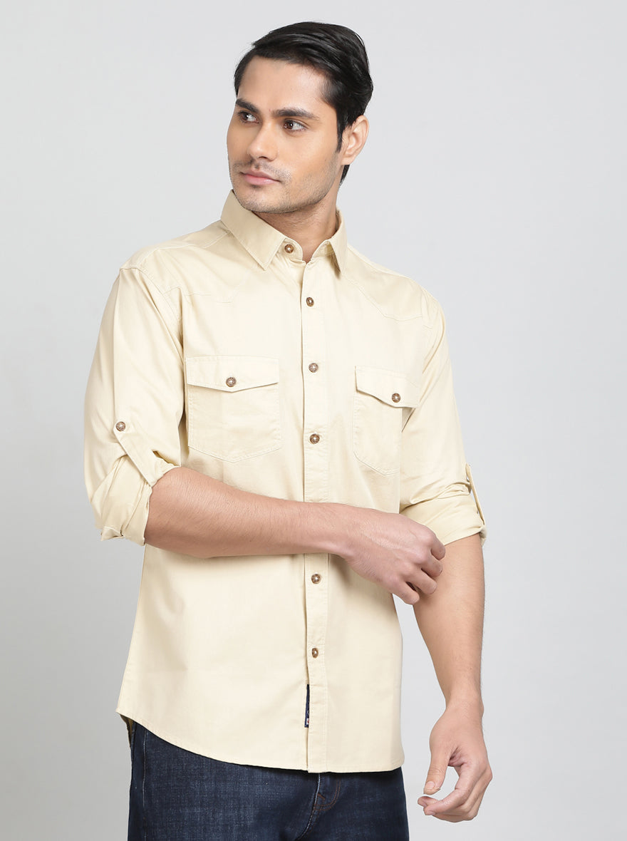 Beige Solid Slim Fit Casual Shirt | Greenfibre