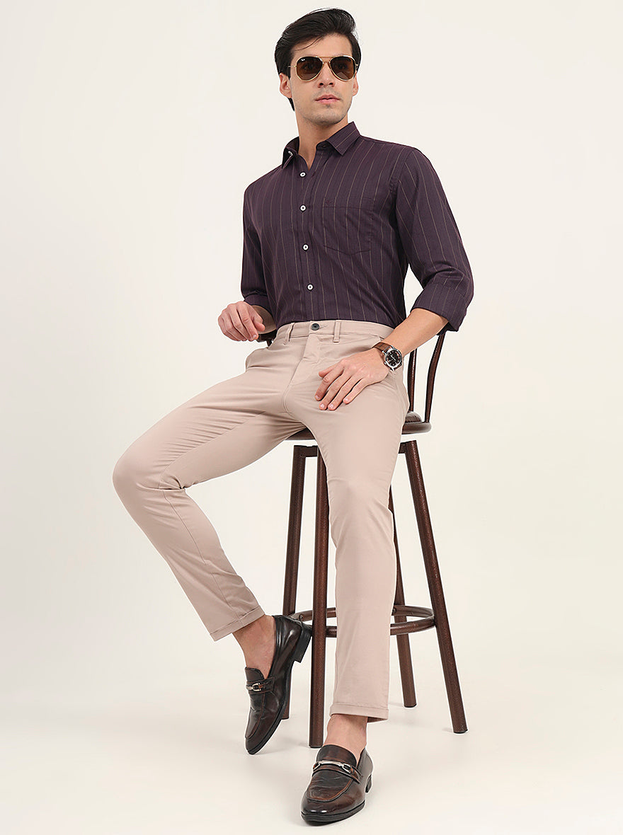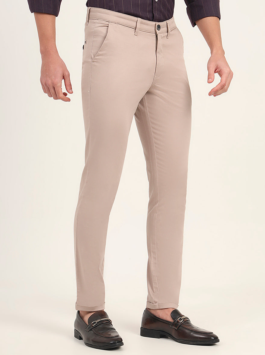 Beige Solid Slim Fit Casual Trouser | Greenfibre