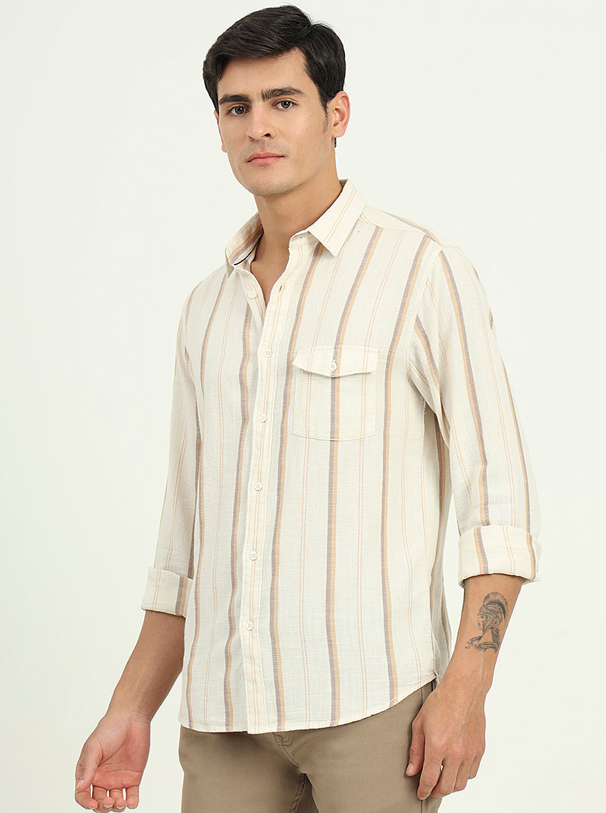 Beige Striped Slim Fit Casual Shirt | Greenfibre