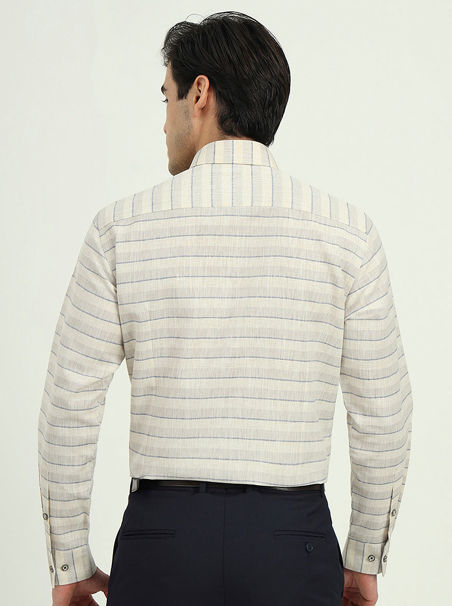 Beige Striped Slim Fit Party Wear Shirt | Greenfibre