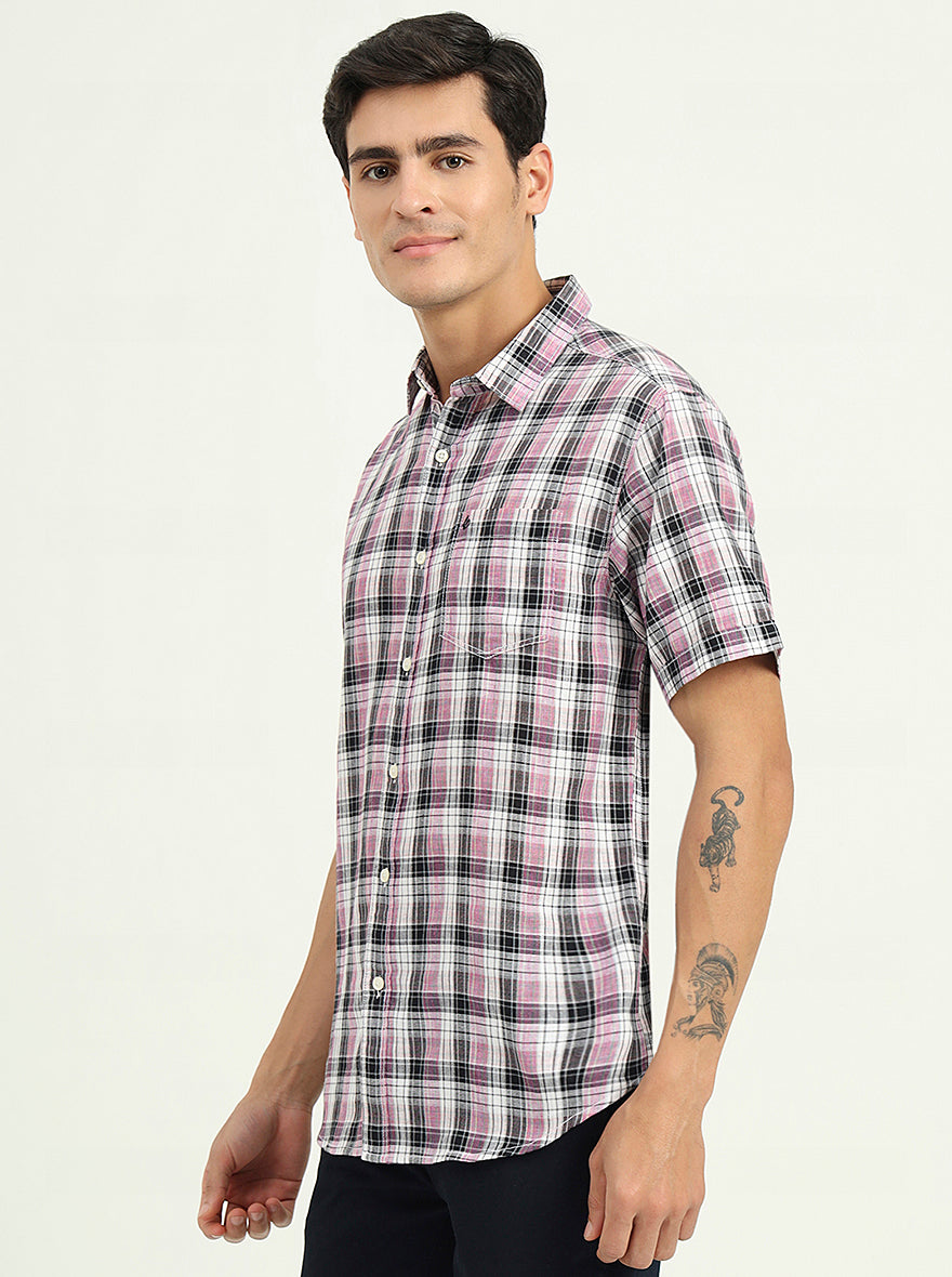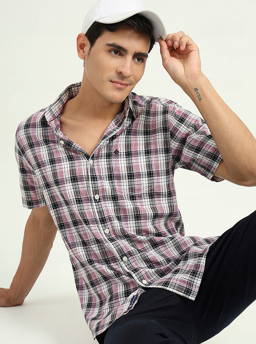 Black & Pink Checked Slim Fit Casual Shirt | Greenfibre