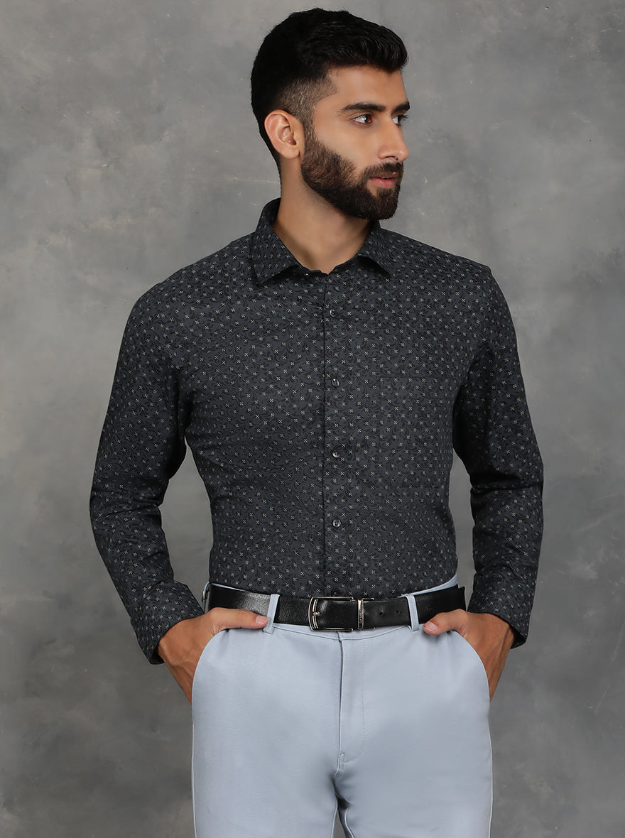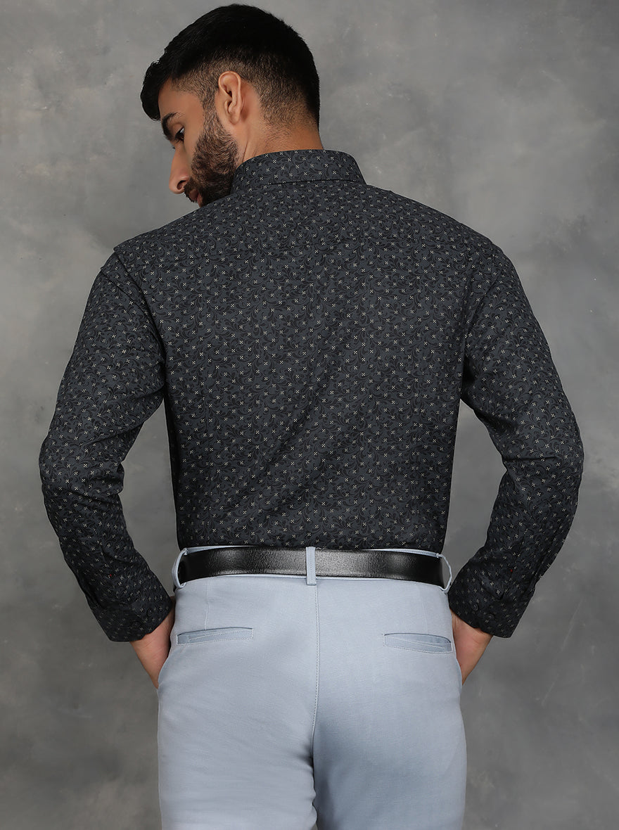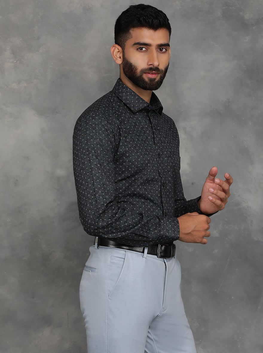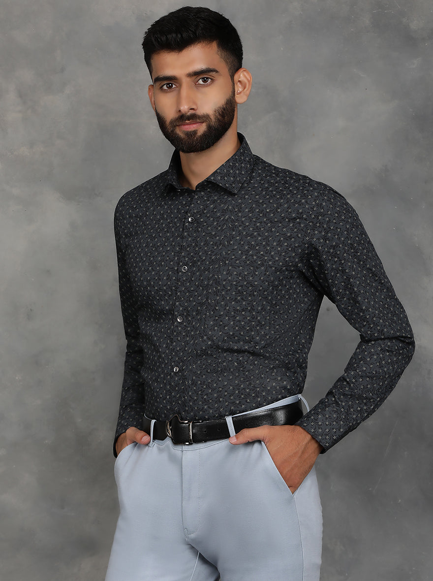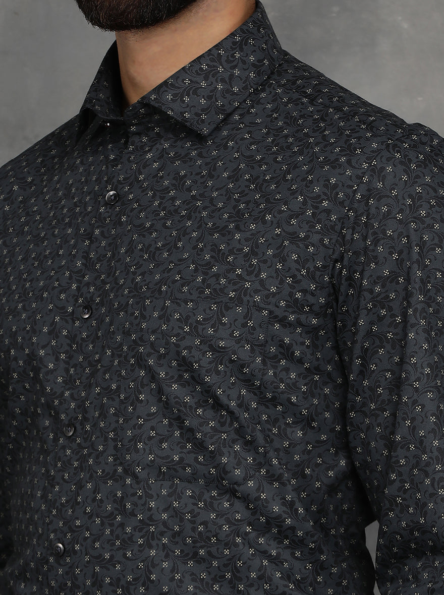 Black Printed Slim Fit Formal Shirt | GreenFibre