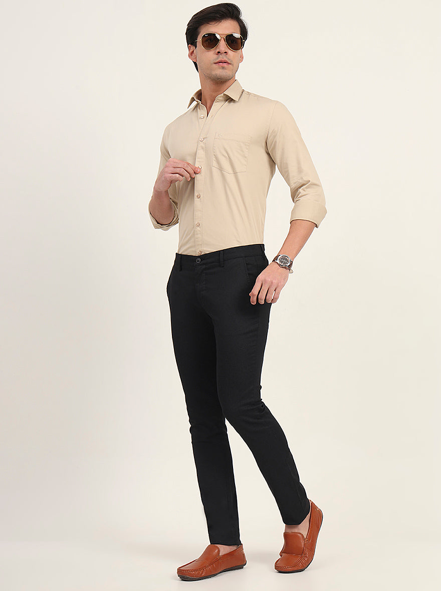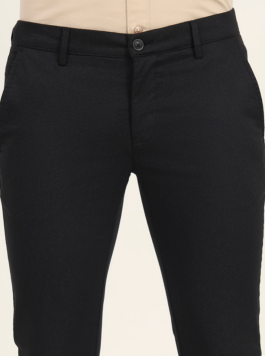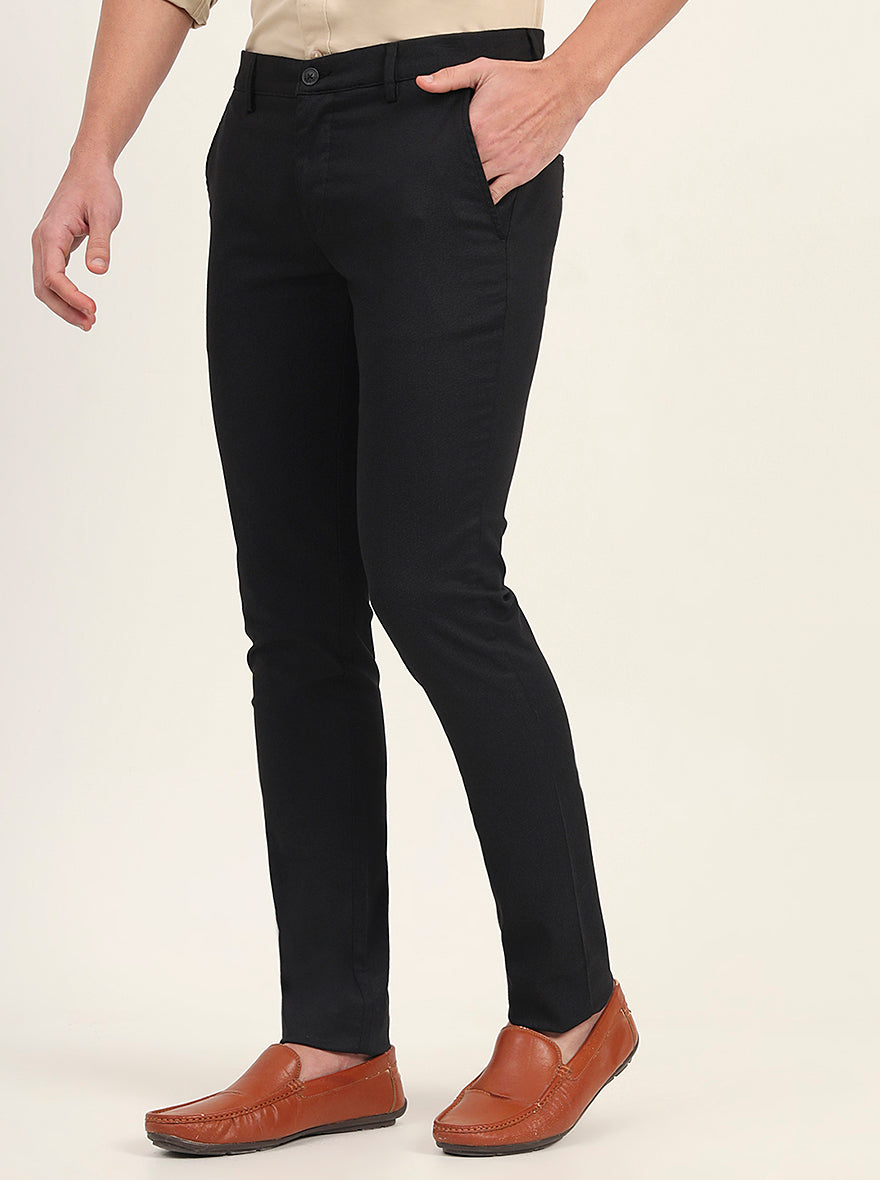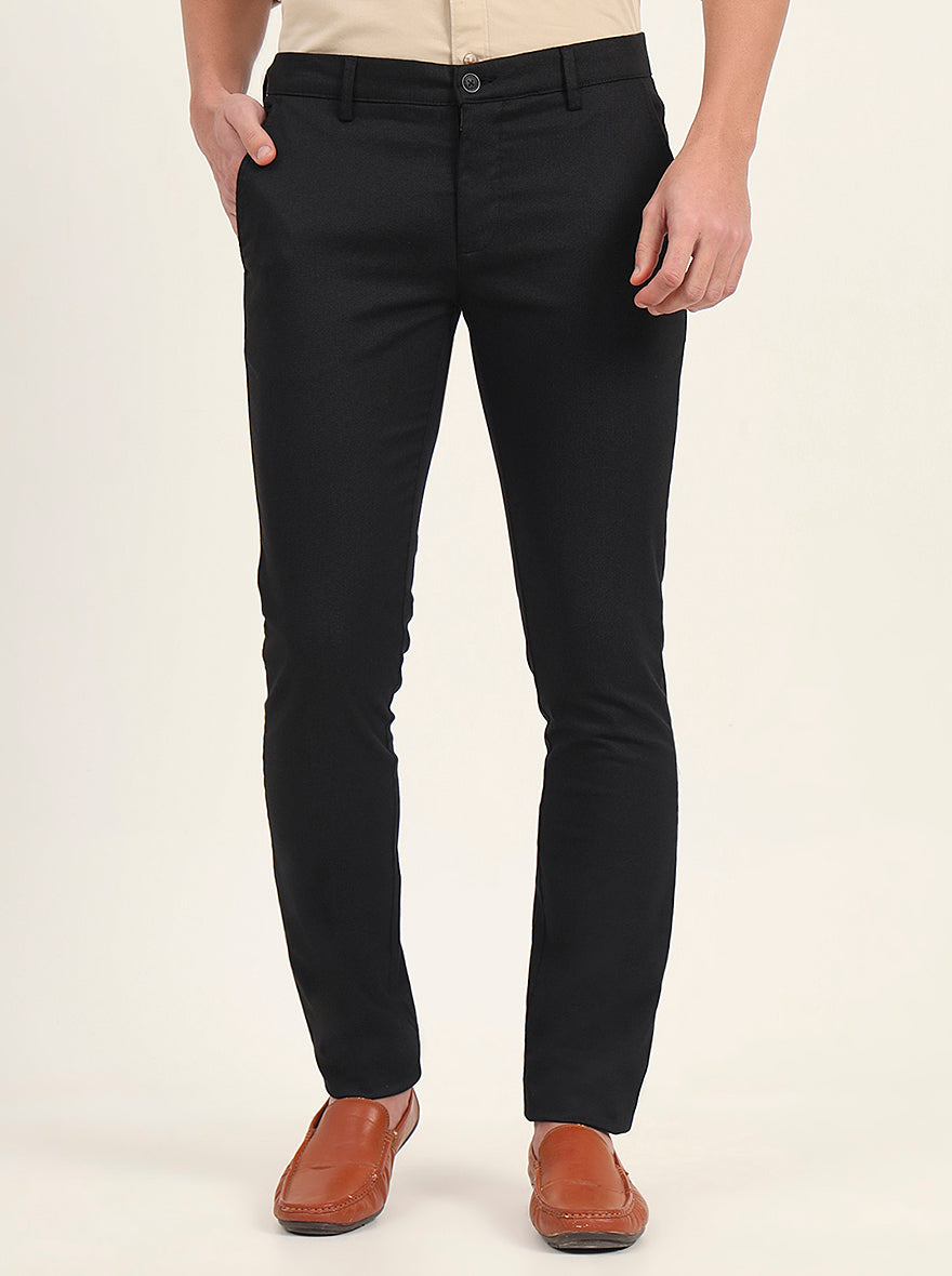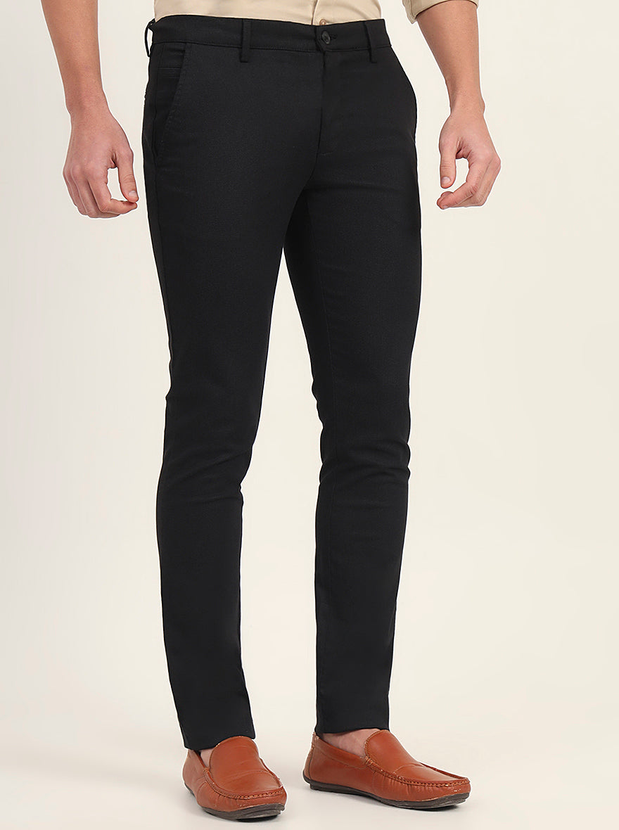 Black Printed Super Slim Fit Casual Trouser | Greenfibre