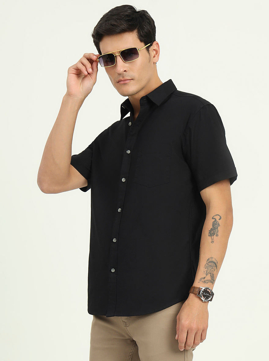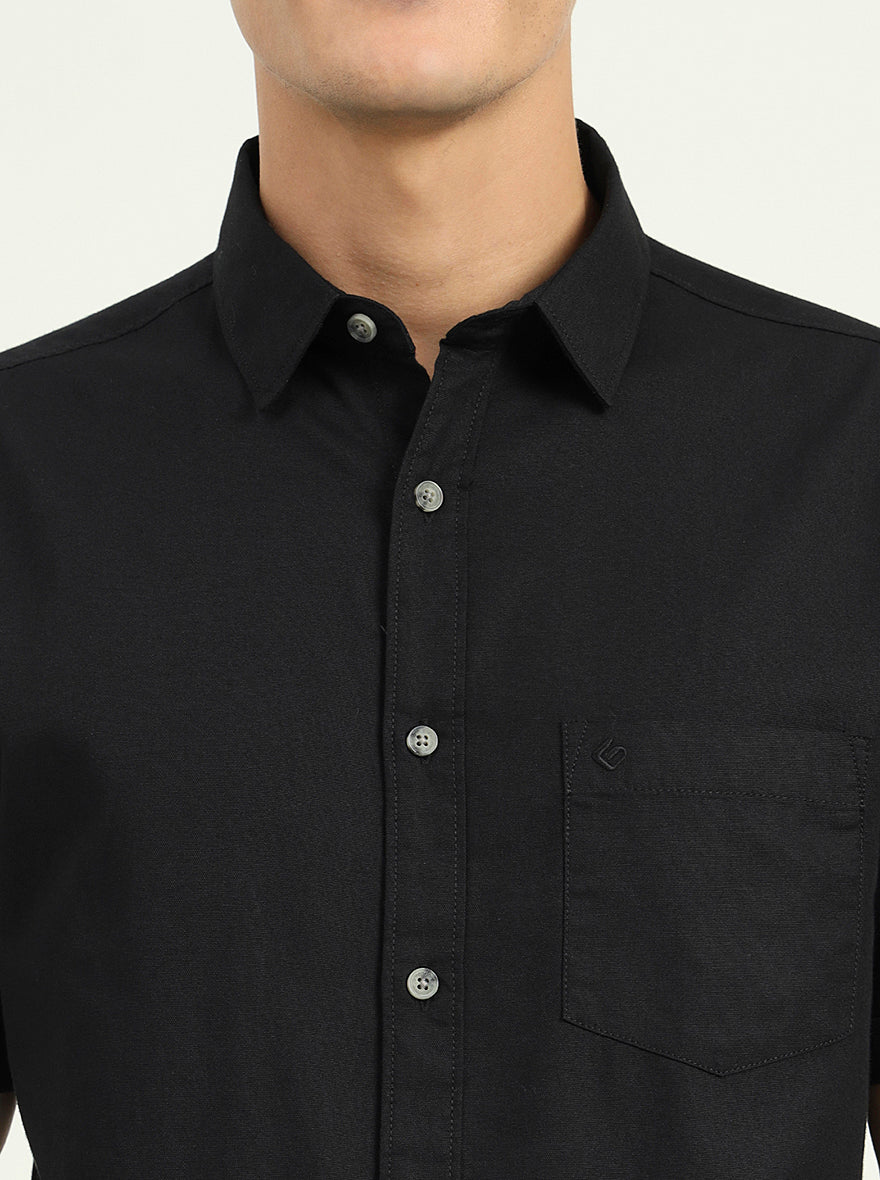 Black Solid Slim Fit Casual Shirt | Greenfibre