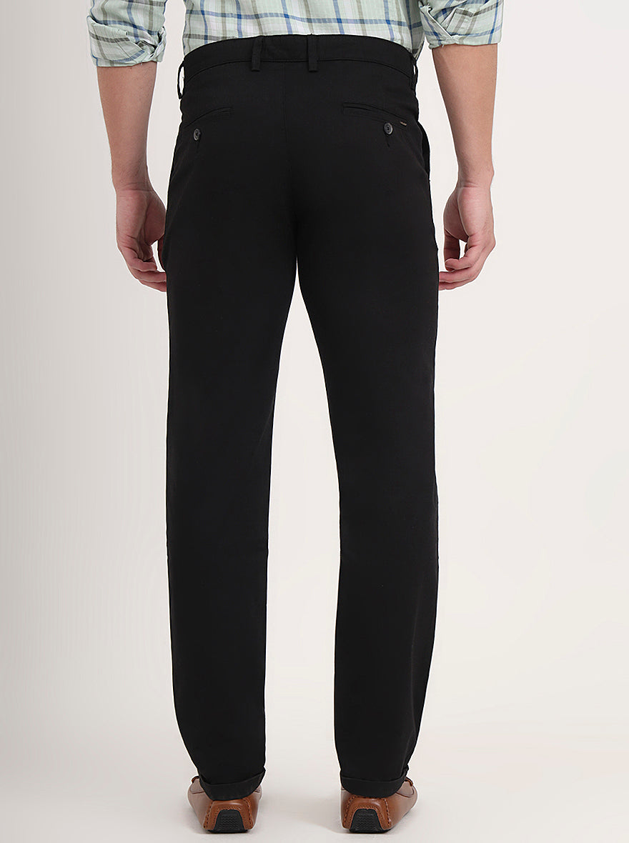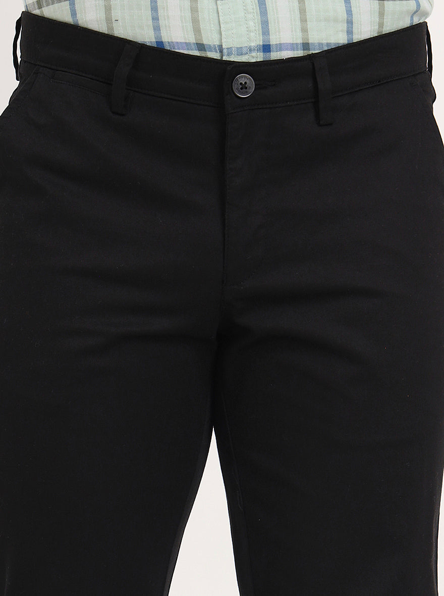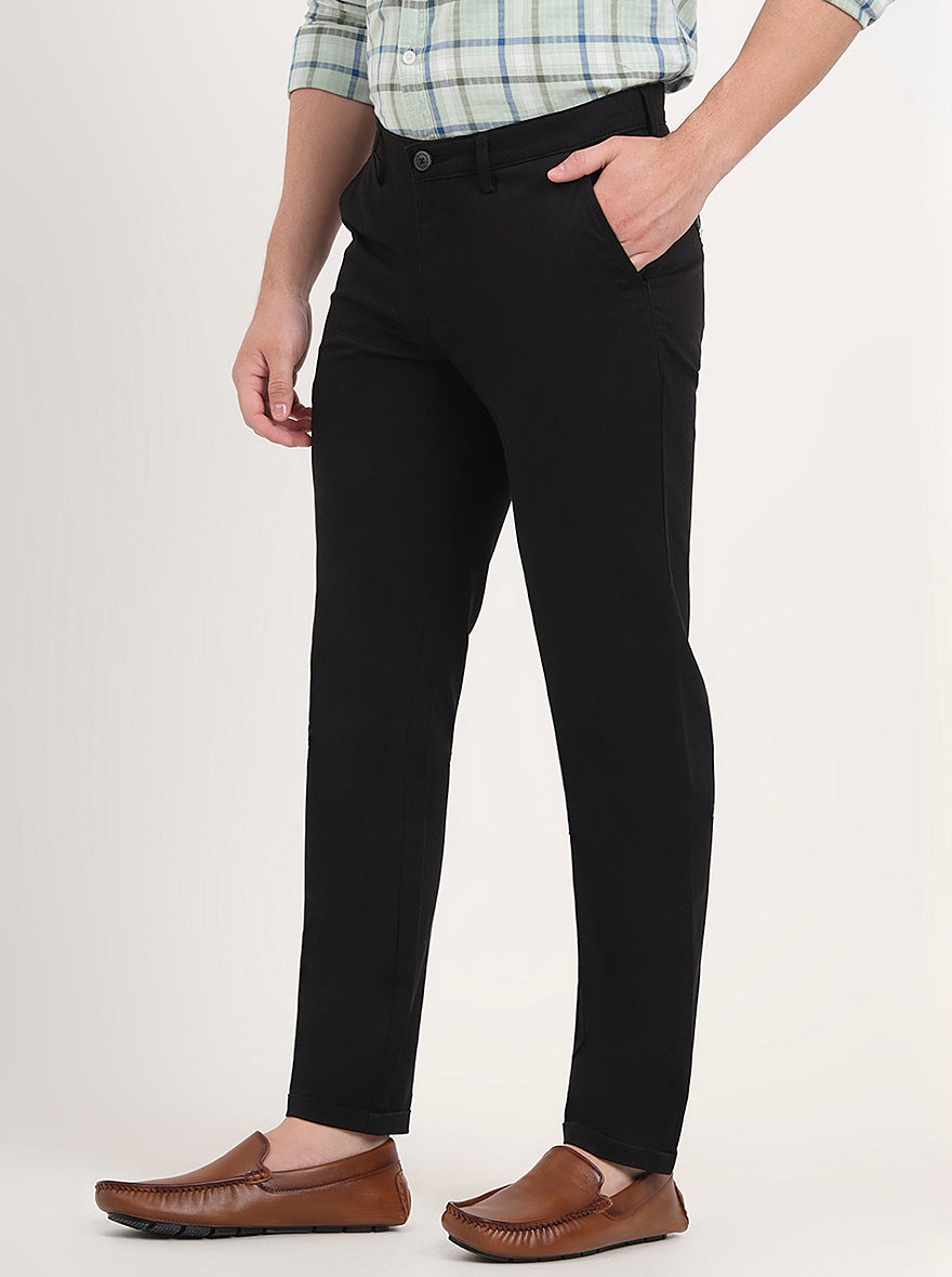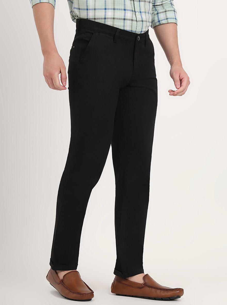 Black Solid Slim Fit Casual Trouser | Greenfibre
