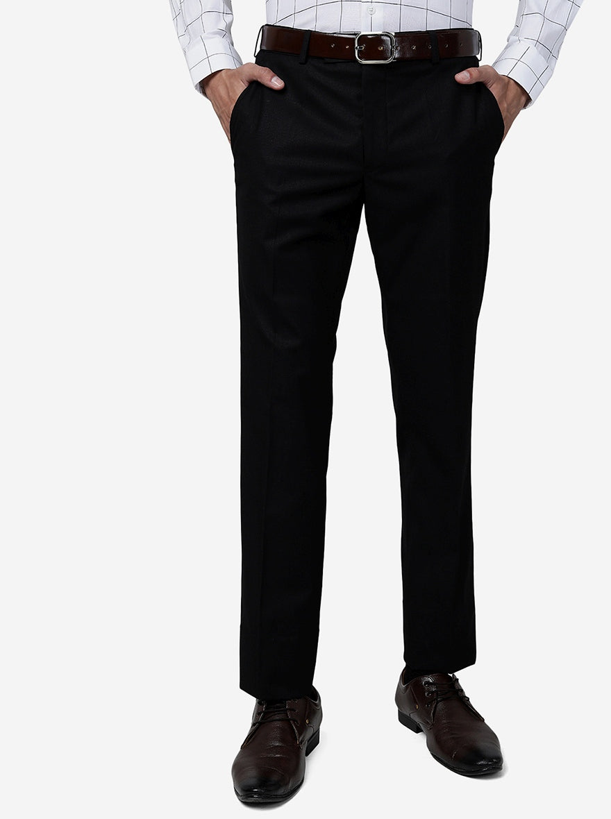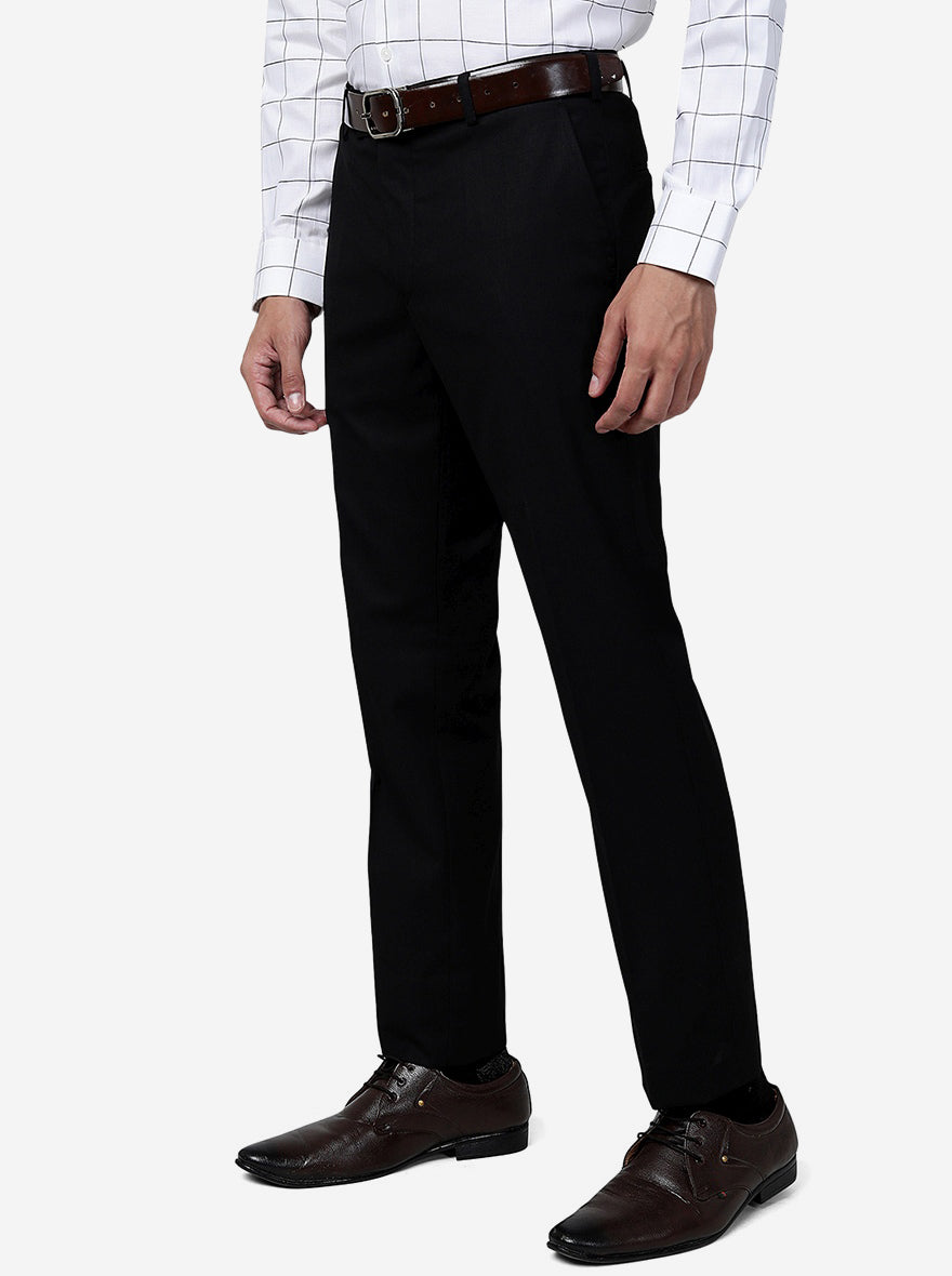 Black Solid Slim Fit Formal Trouser | Greenfibre
