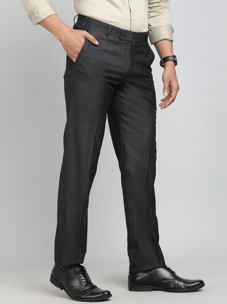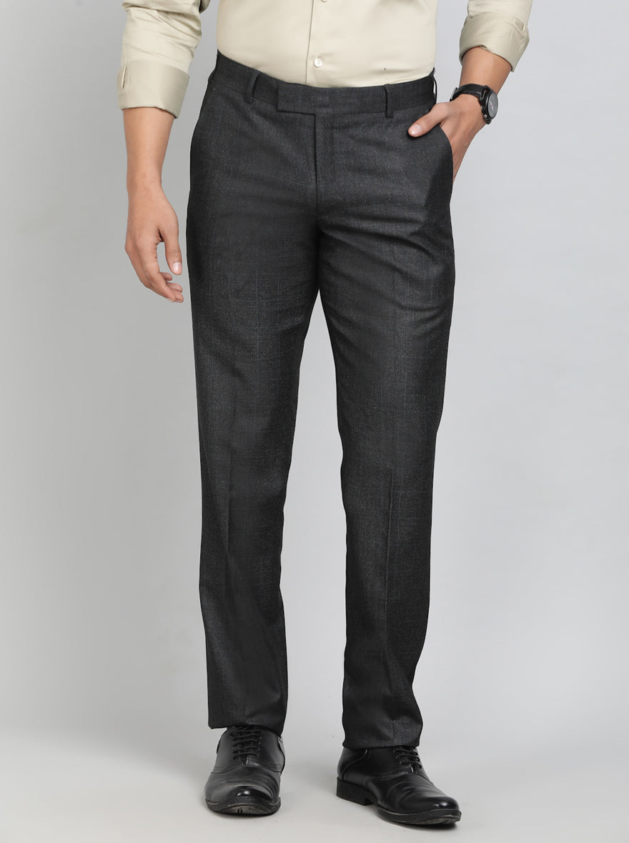 Black Solid Slim Fit Formal Trouser | Greenfibre