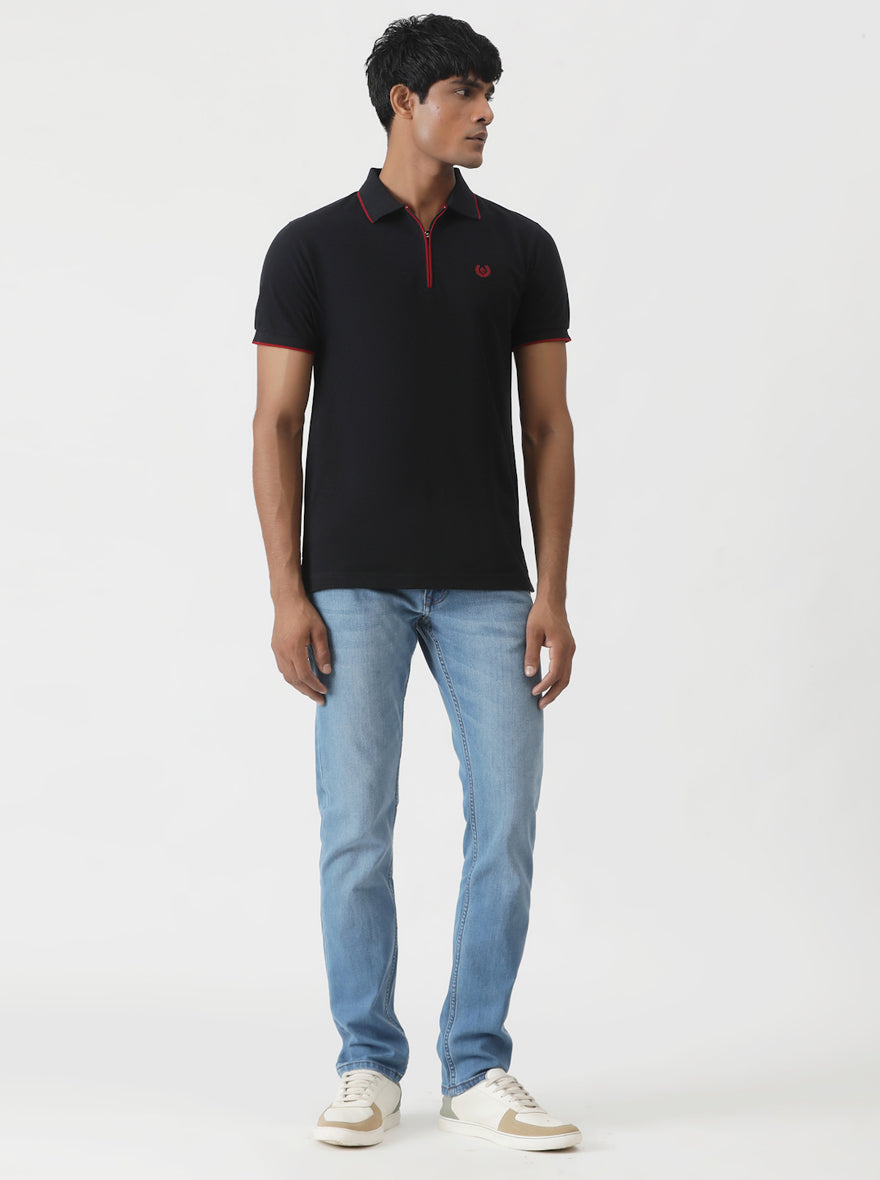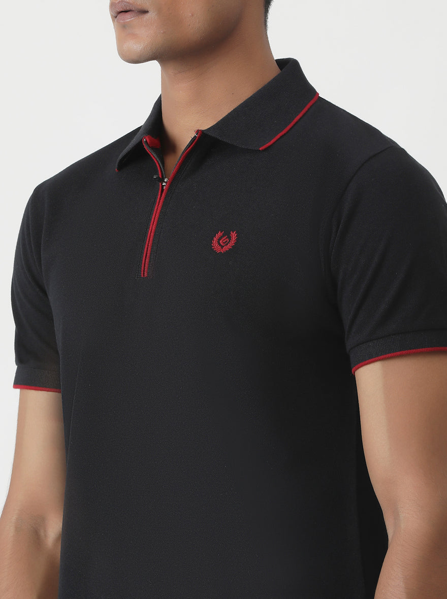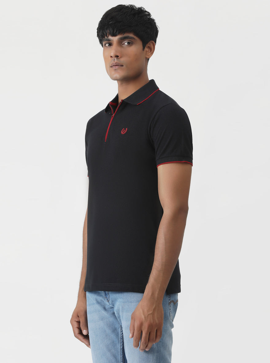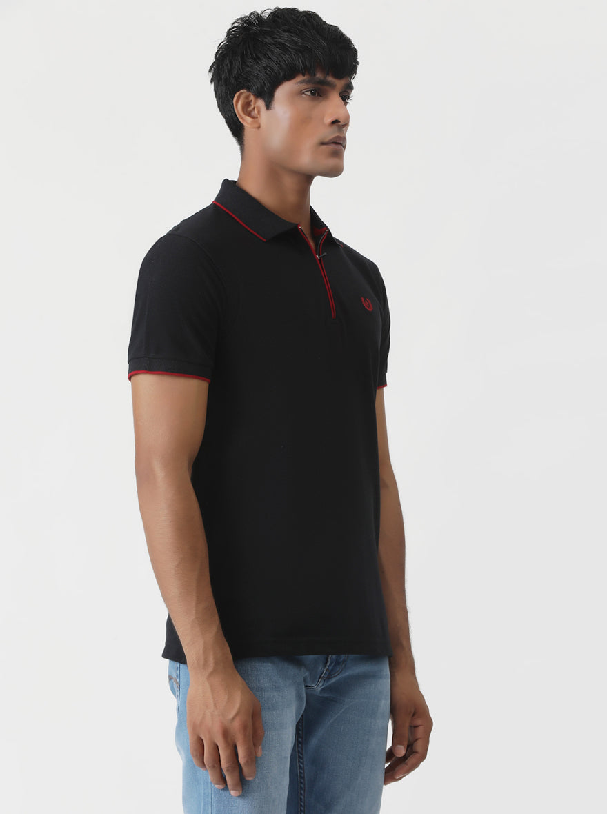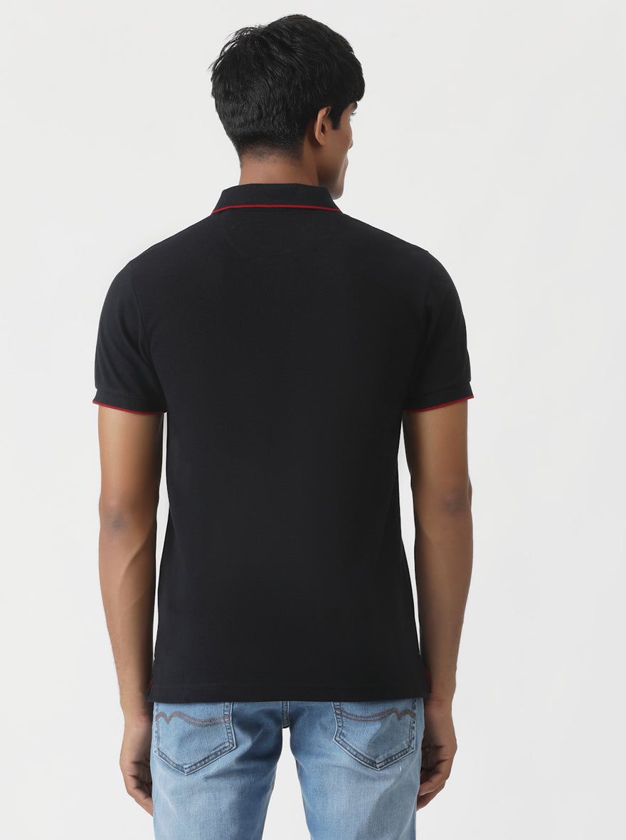 Black Solid Slim Fit Polo T-Shirt | Greenfibre