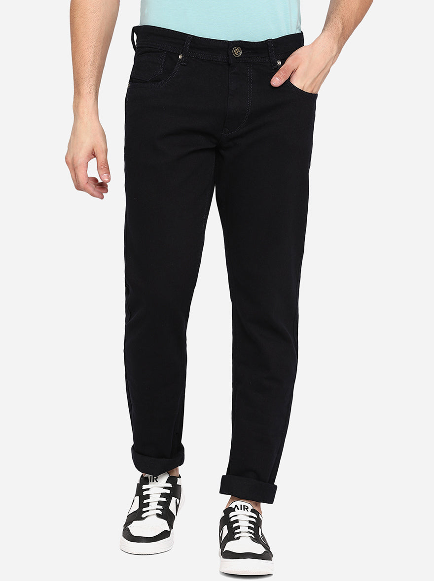 Details: Stay cool and comfy wearing this Black jeans from the latest collection of Greenfibre. It features a button and a zip closure. It comes with three pockets on the front, one being the coin pocket and two at the back. Tailored to a striaght-fit. It is adorned with a solid pattern, making it a trendy choice. It is perfect for casual wear. Crafted with cotton stretch, it assures you the best of comfort and ease during long hours. Team it with a t-shirt of your choice and white sneakers to achieve a cool look.