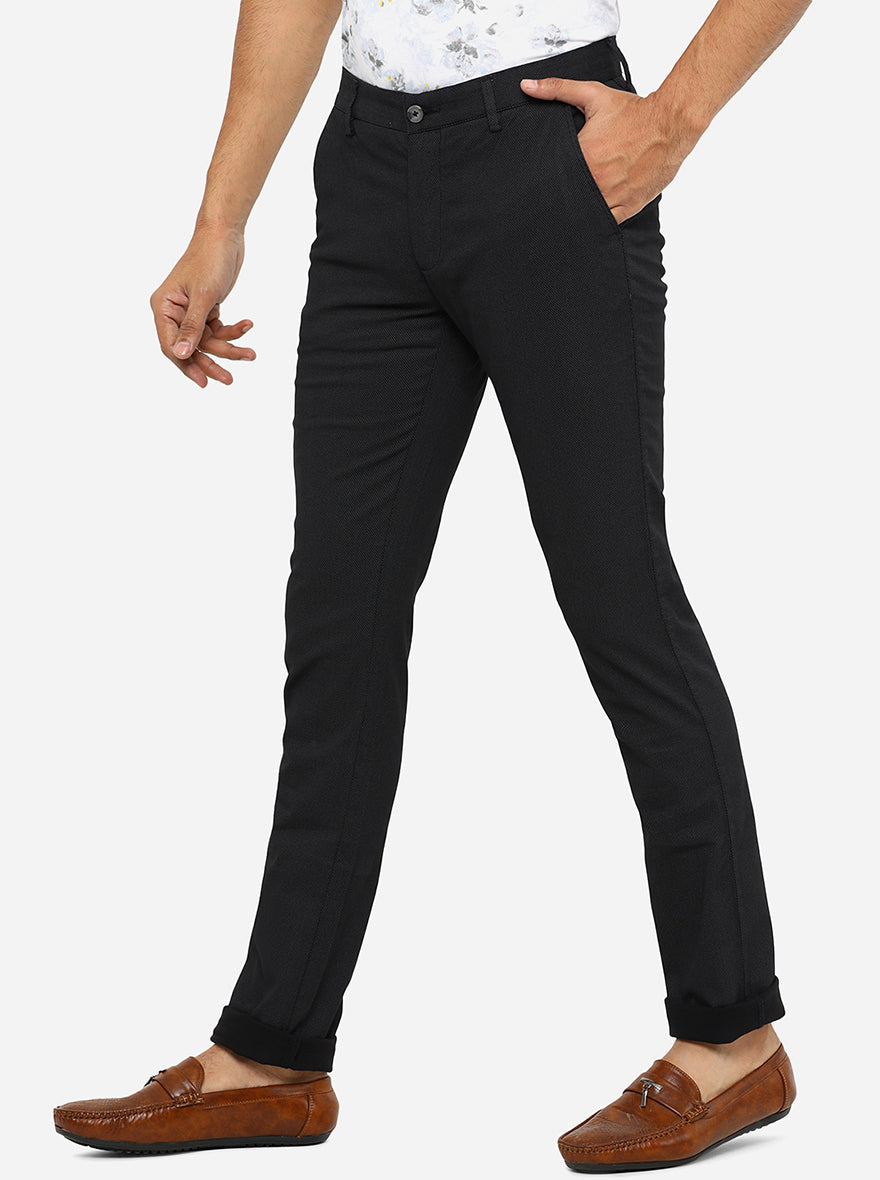 Black Solid Super Slim Fit Casual Trouser | Greenfibre