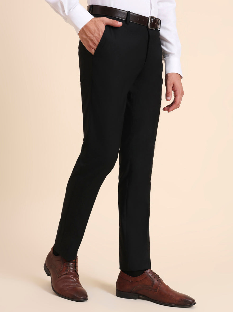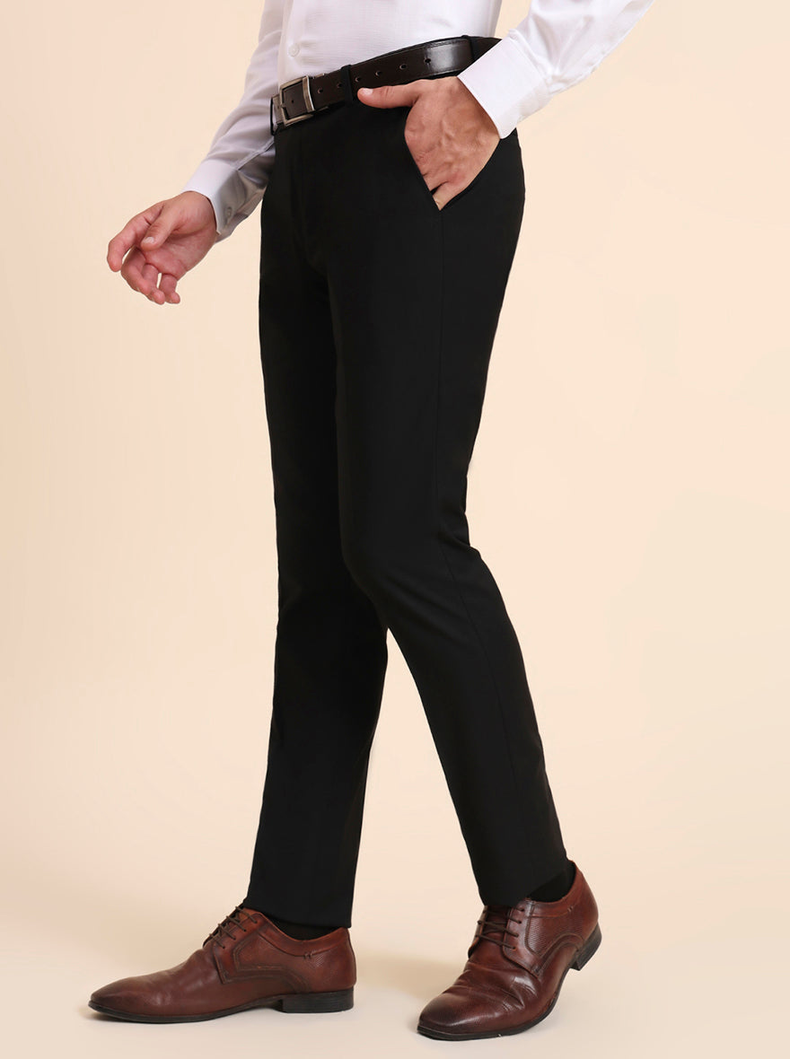 Black Solid Super Slim Fit Formal Trouser | Greenfibre