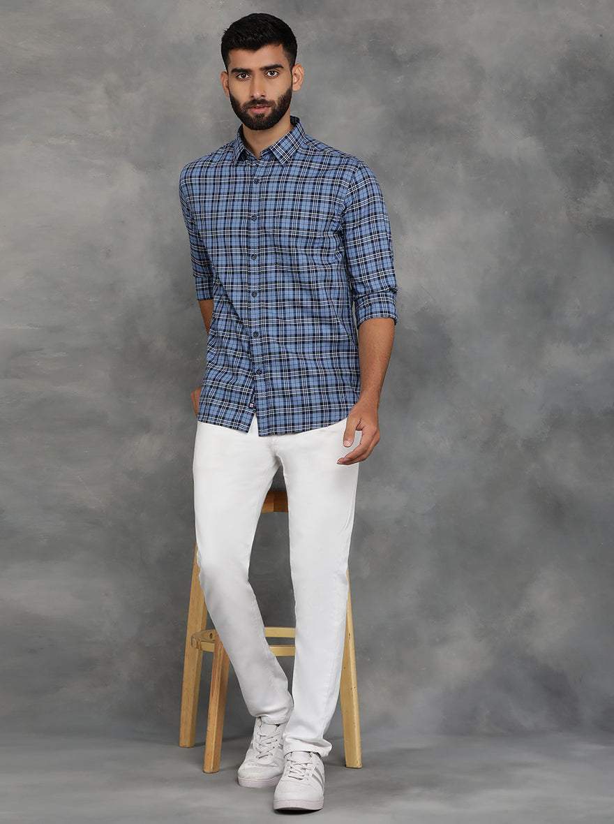 Blue Checked Slim Fit Casual Shirt | GreenFibre