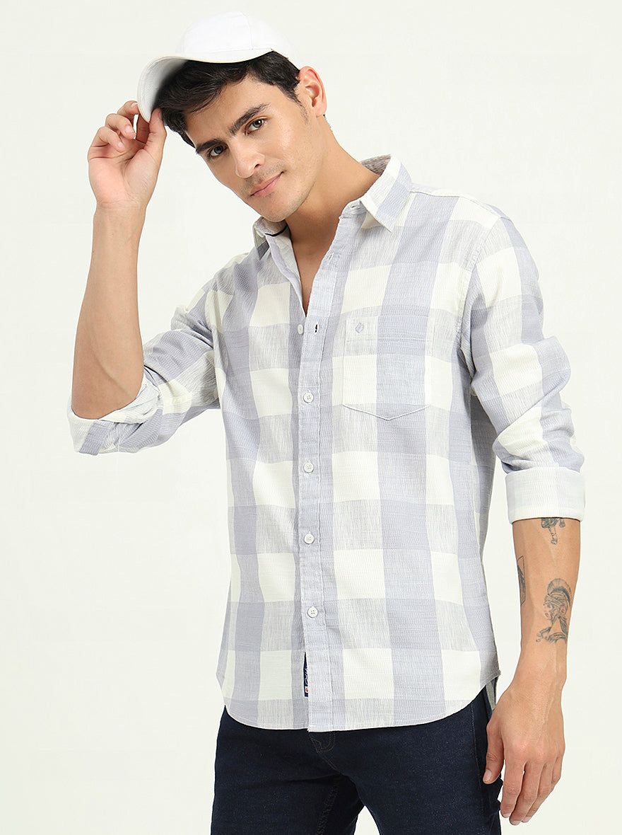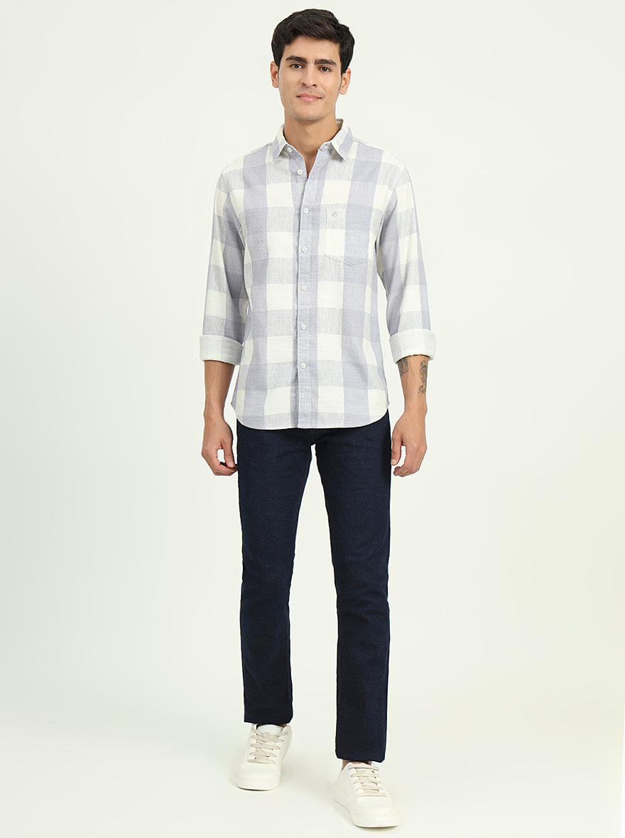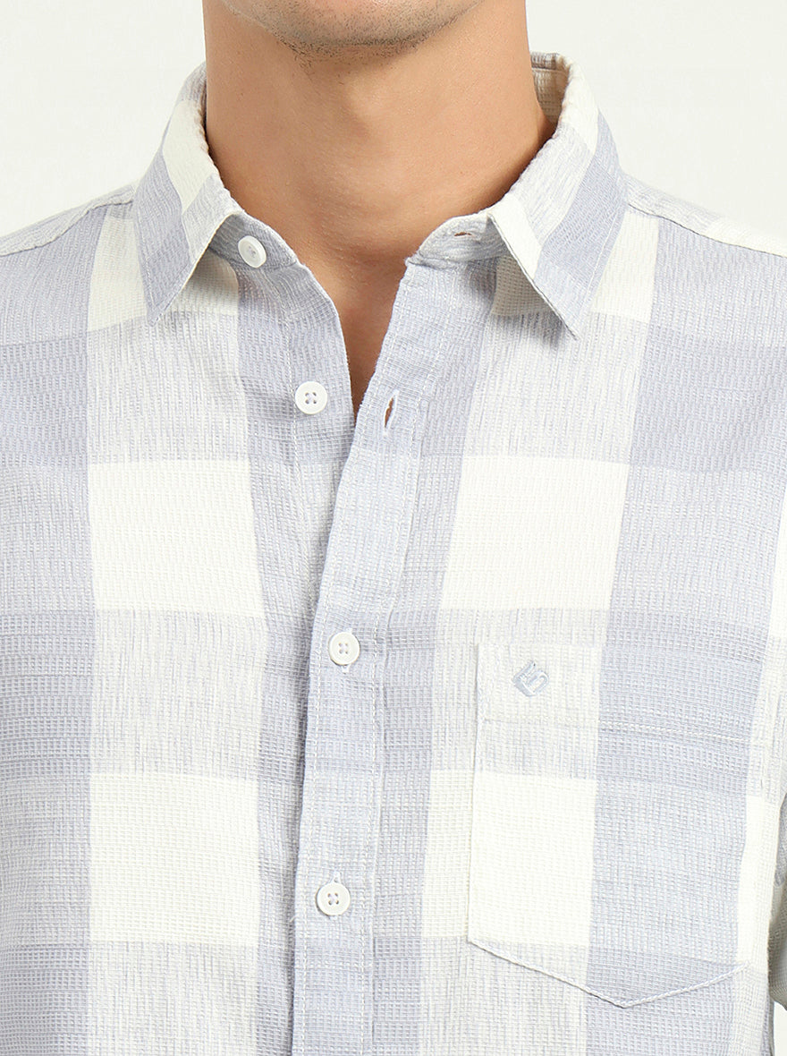Blue Checked Slim Fit Casual Shirt | Greenfibre