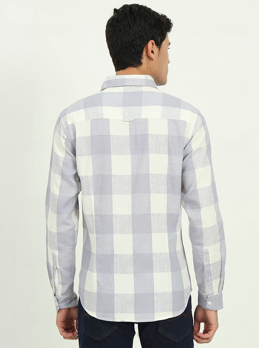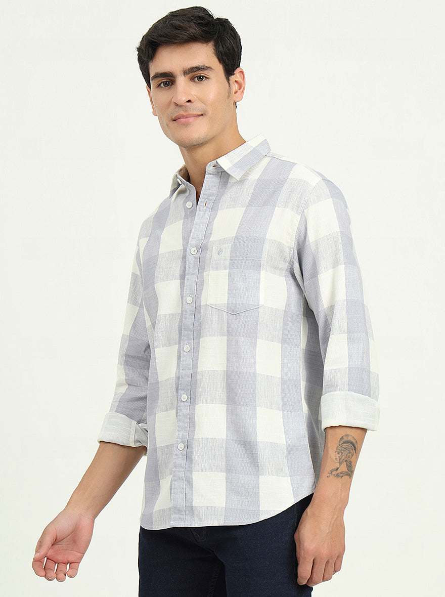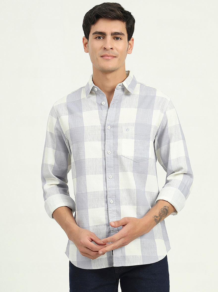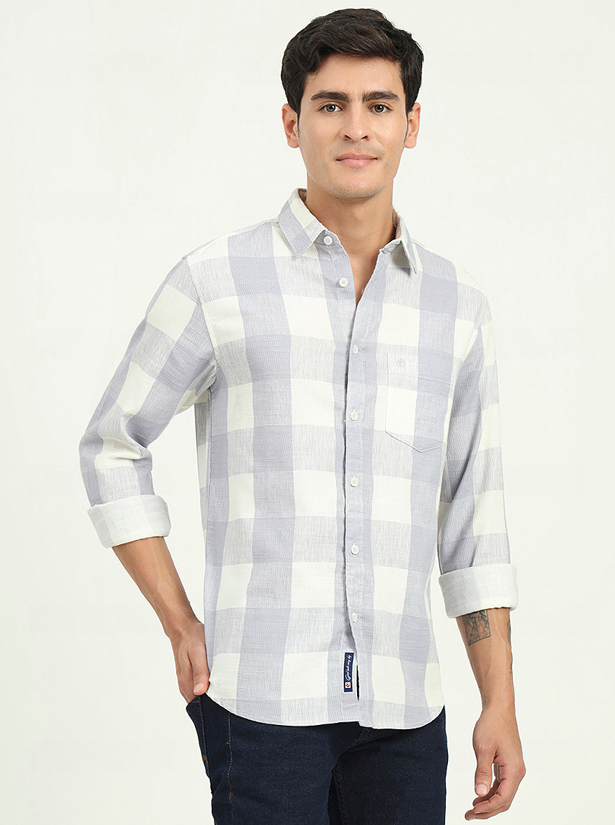 Blue Checked Slim Fit Casual Shirt | Greenfibre