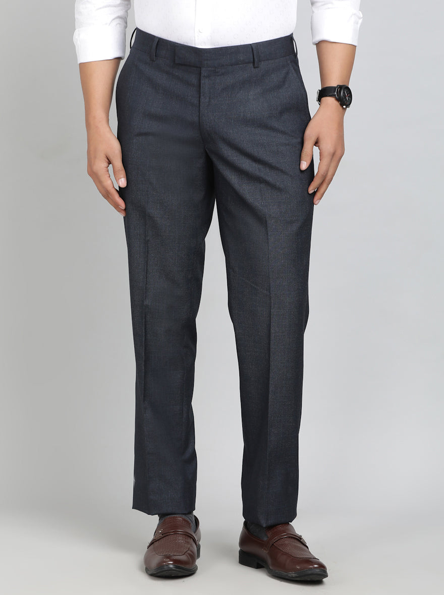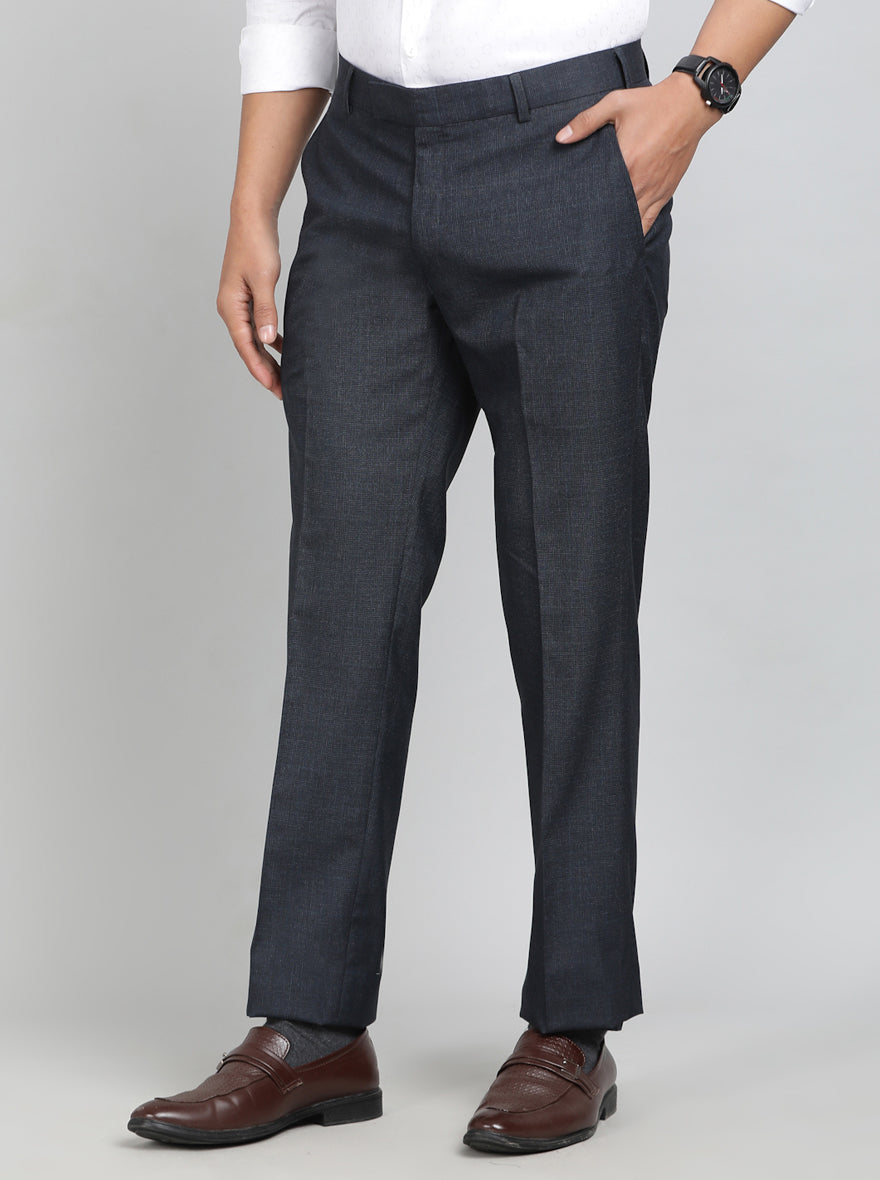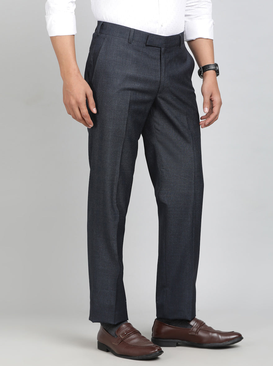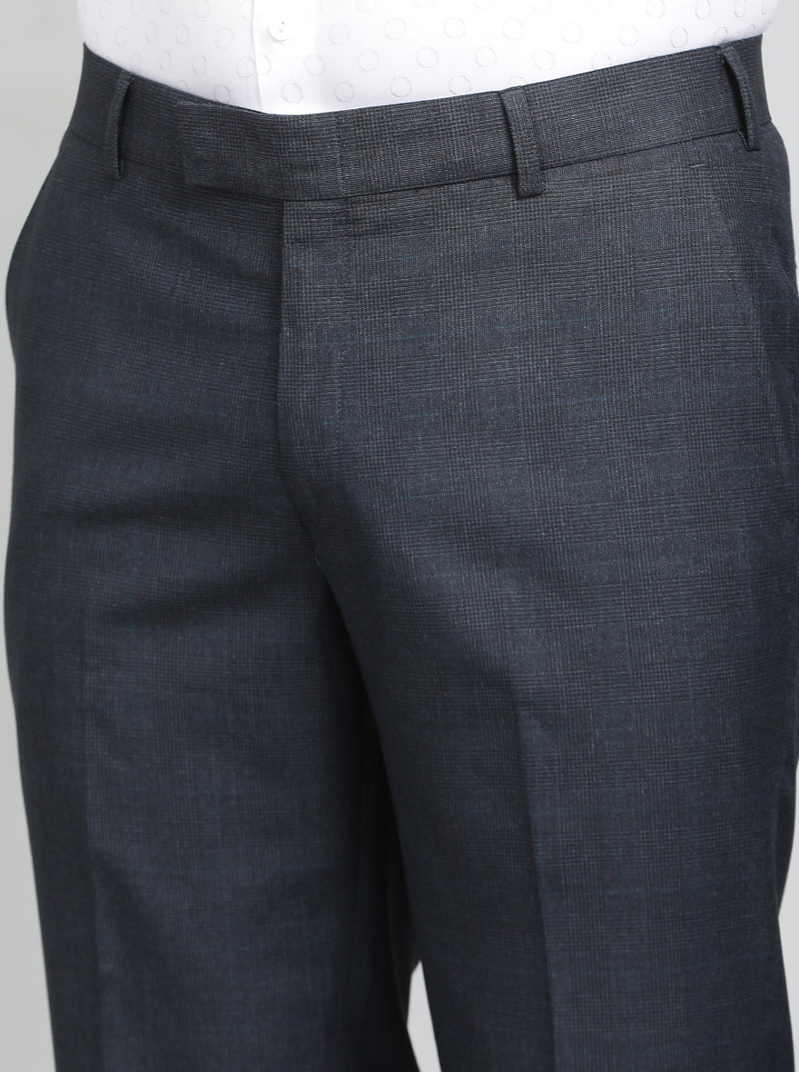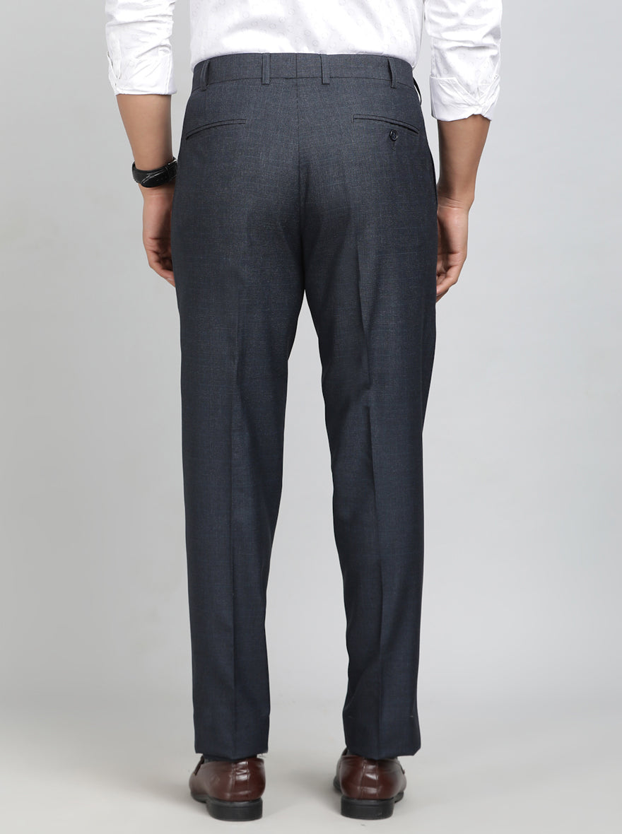 Blue Checked Slim Fit Formal Trouser | Greenfibre
