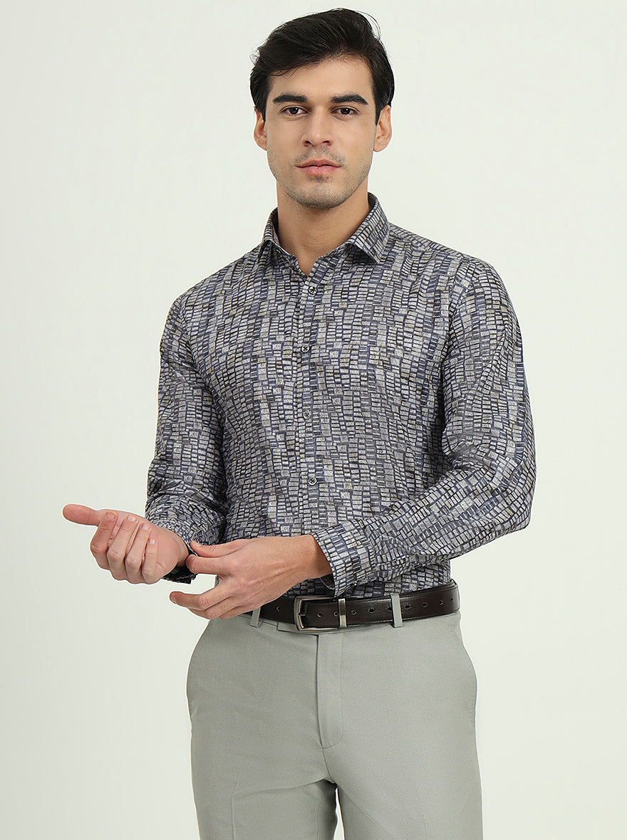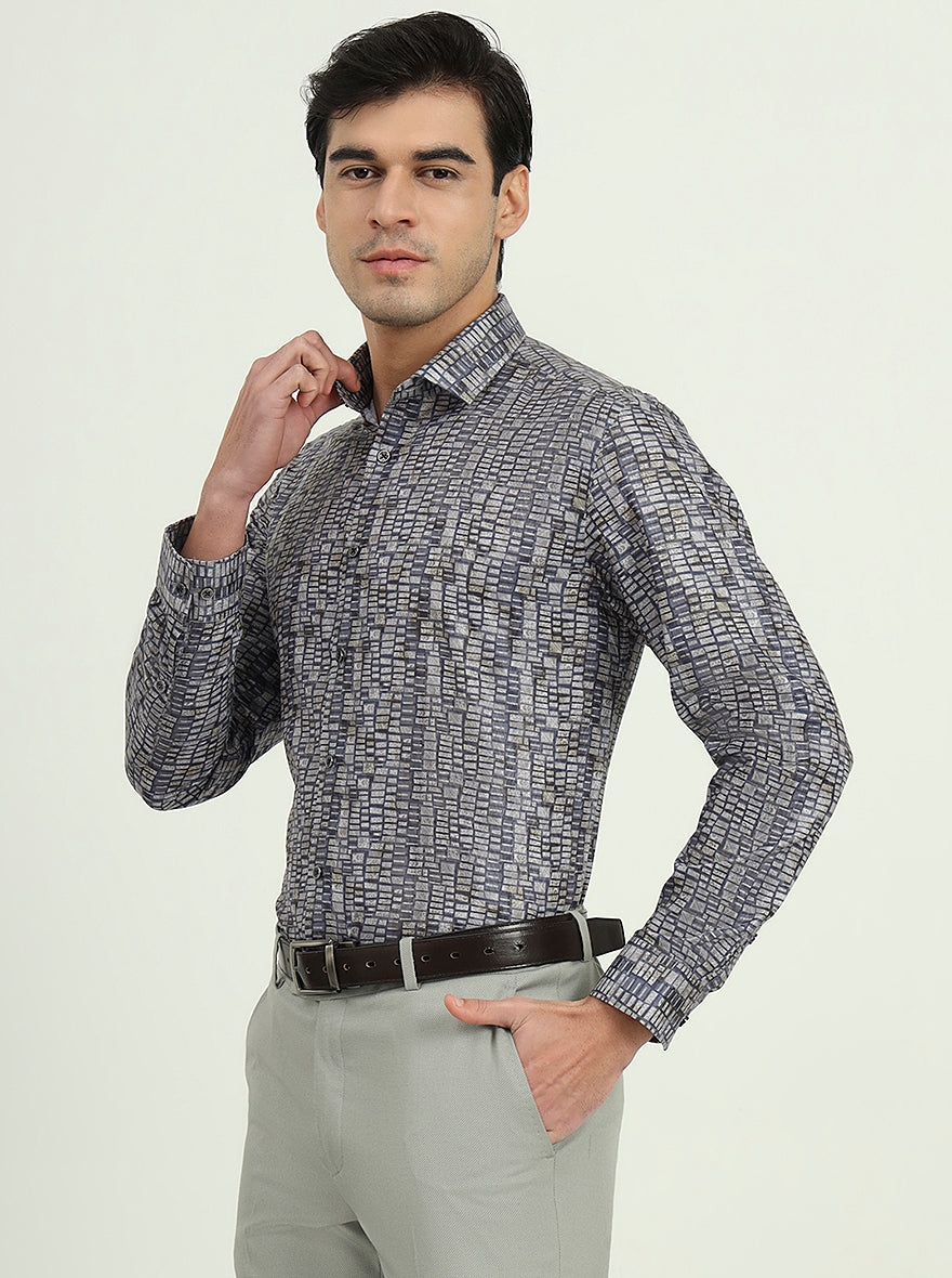 Blue & Grey Printed Slim Fit Party Wear Shirt | Greenfibre