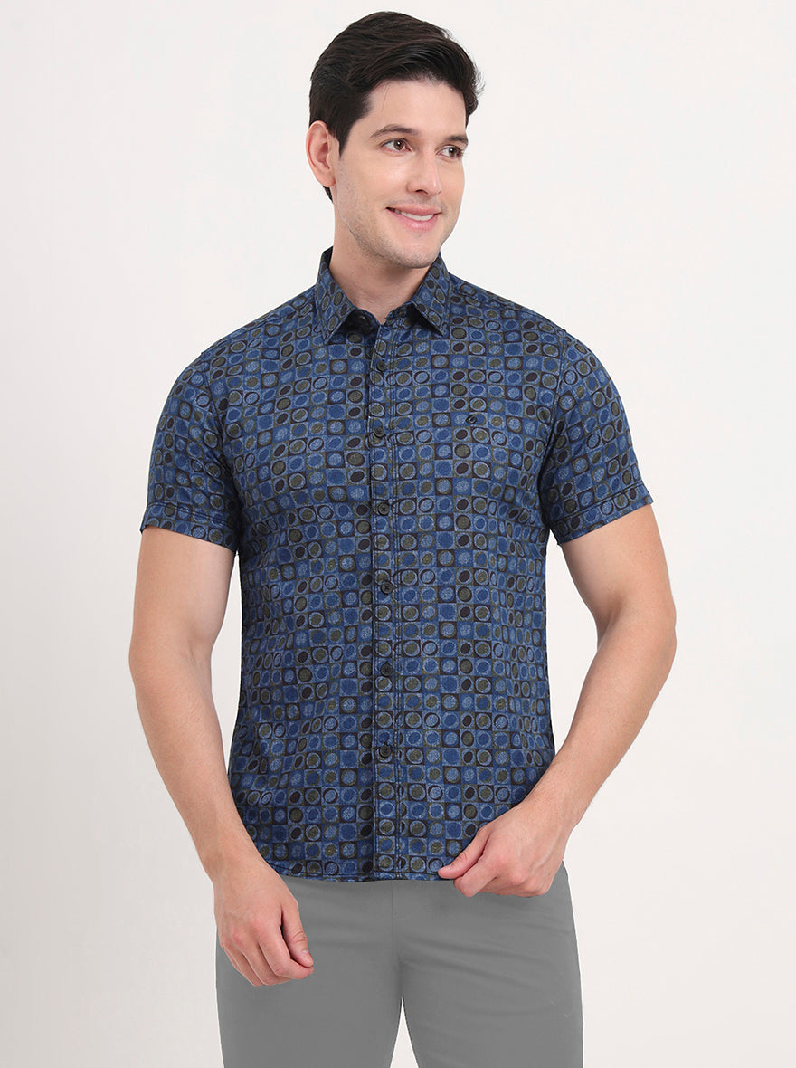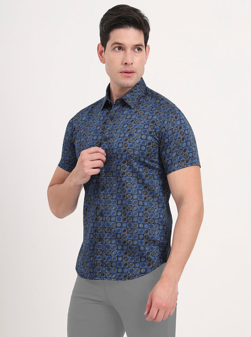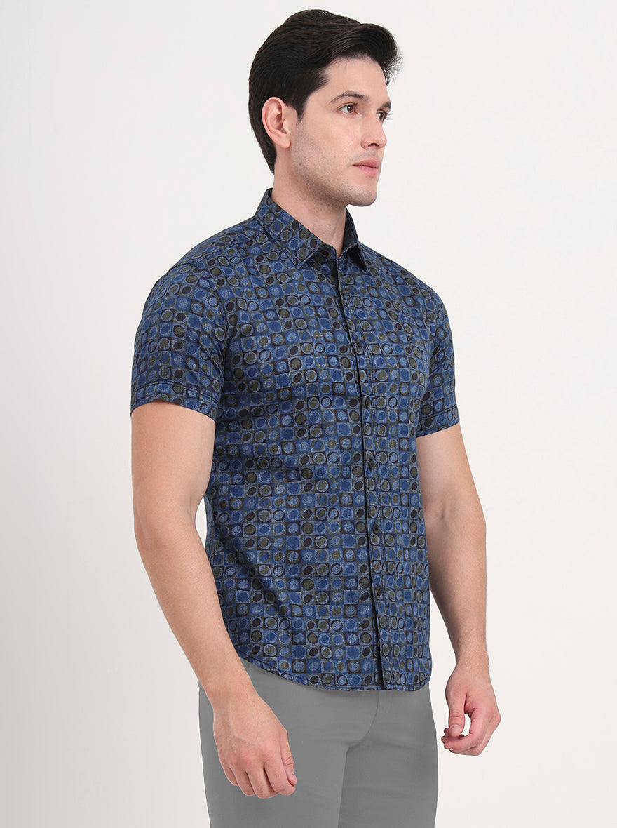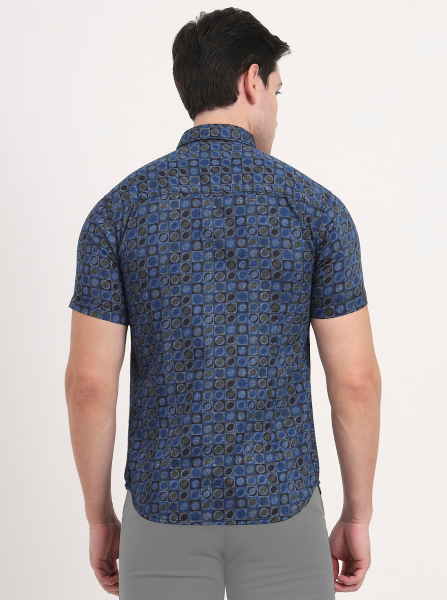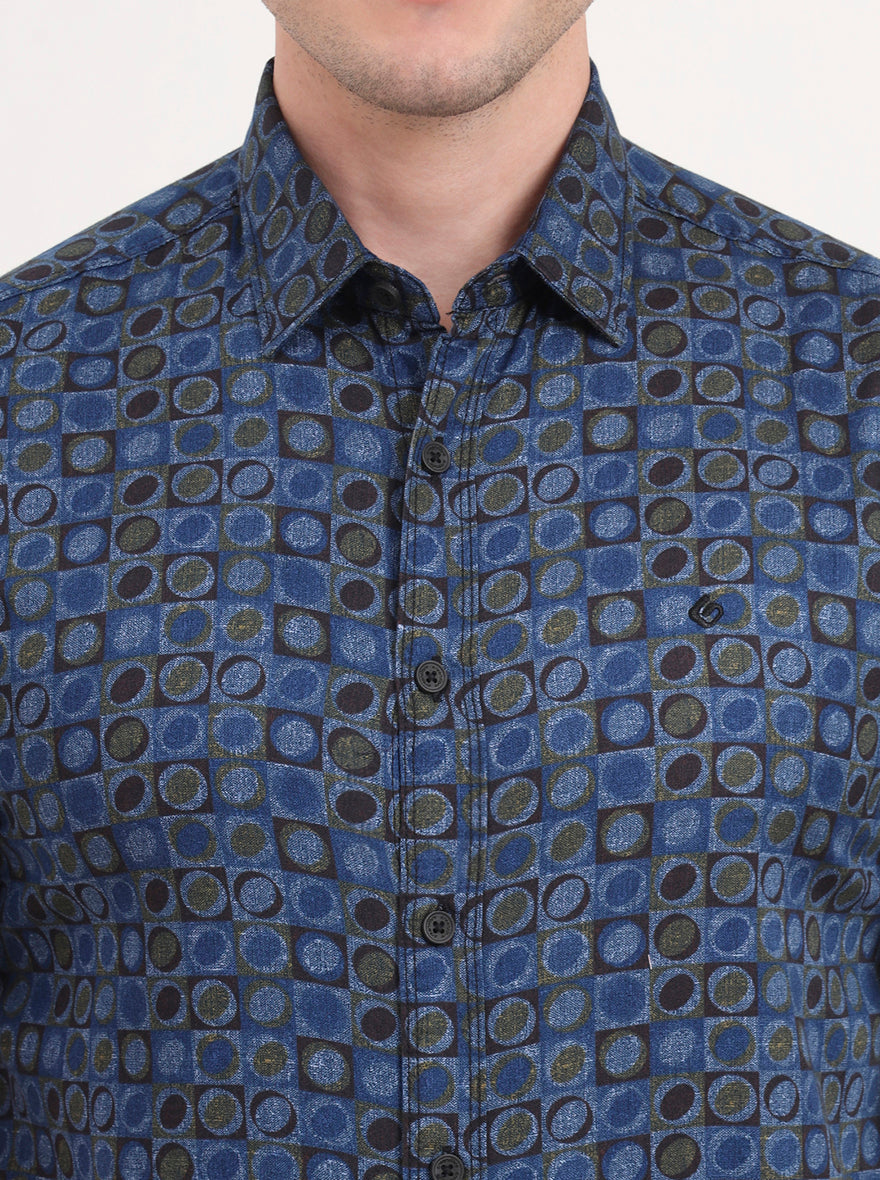 Blue Printed Slim Fit Casual Shirt | Greenfibre