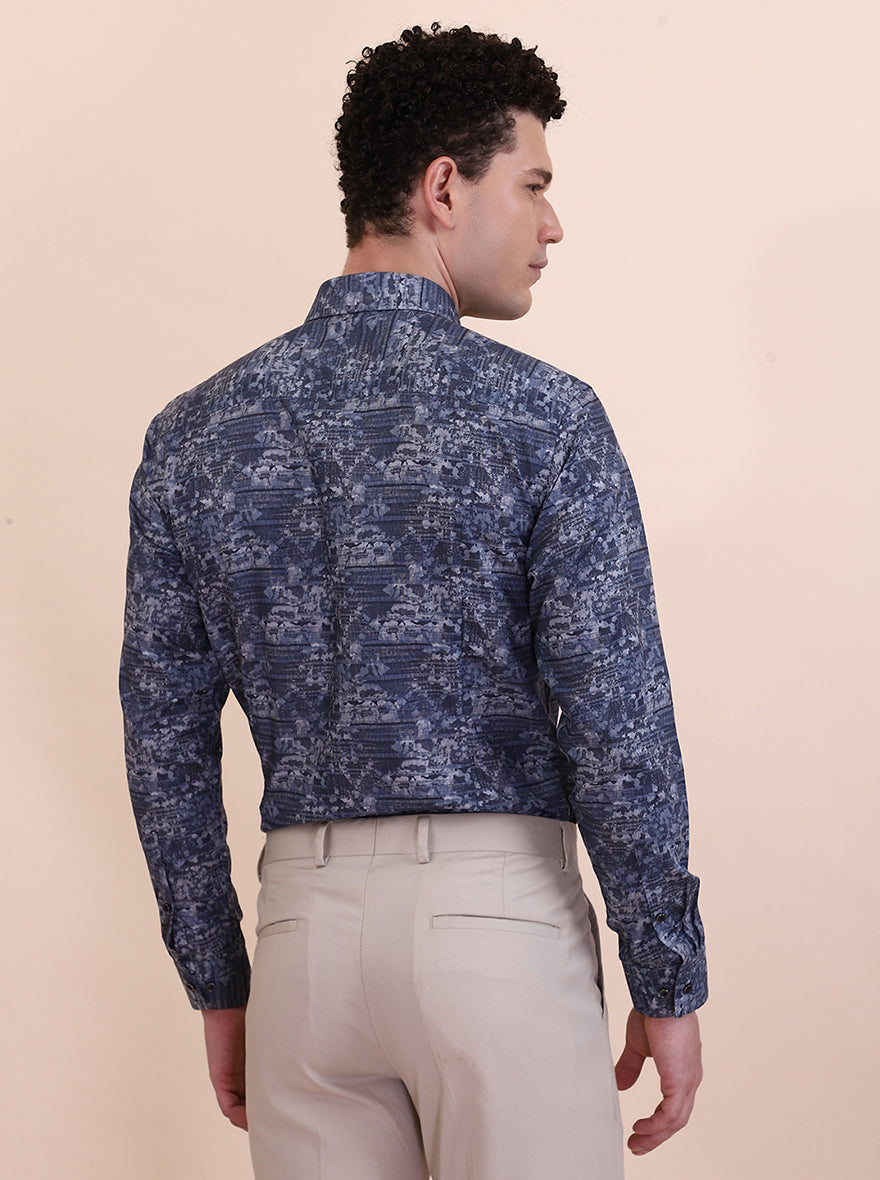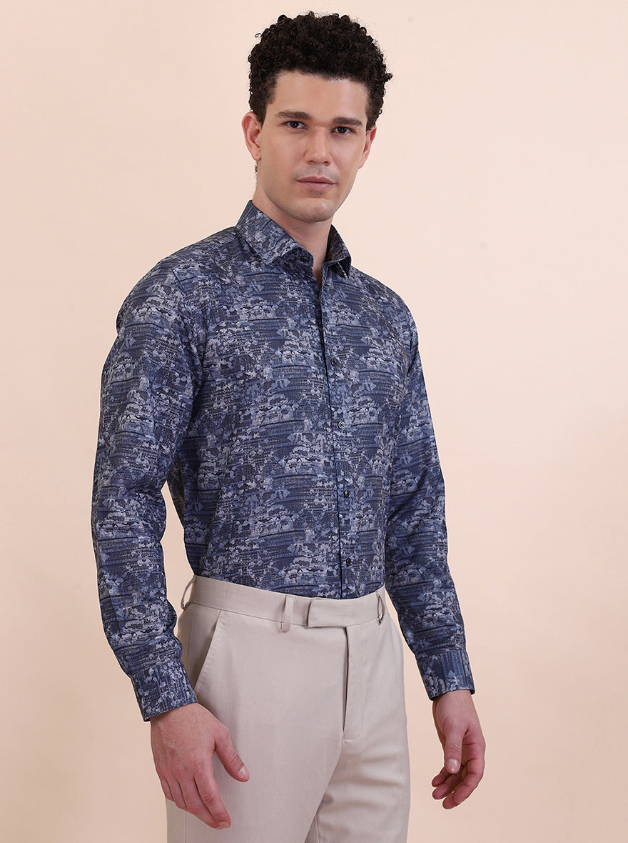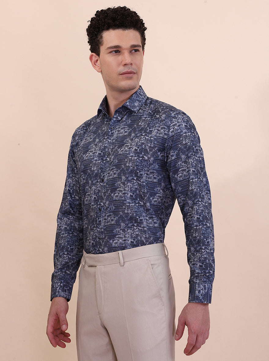Blue Printed Slim Fit Party Wear Shirt | Greenfibre