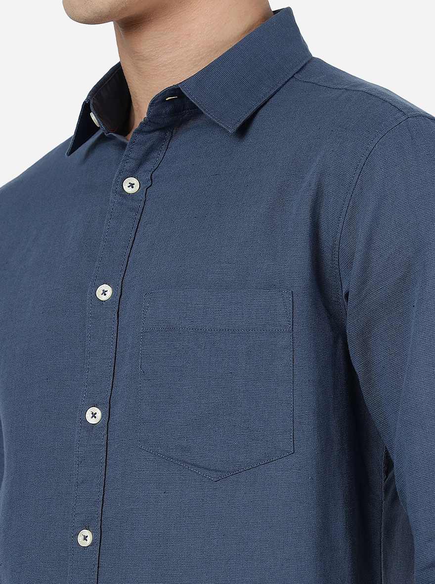 Blue Solid Slim Fit Casual Shirt | Greenfibre