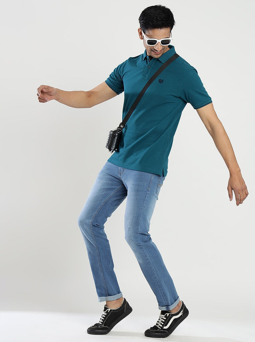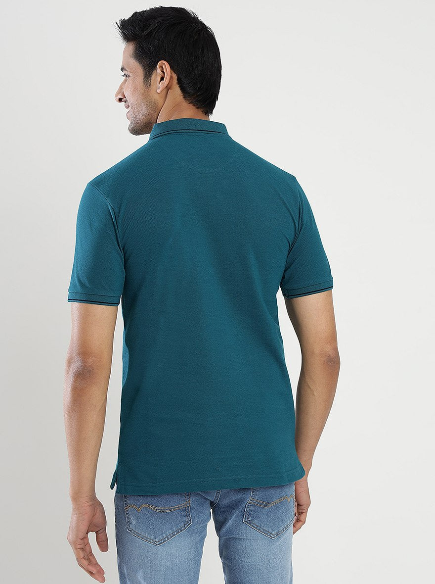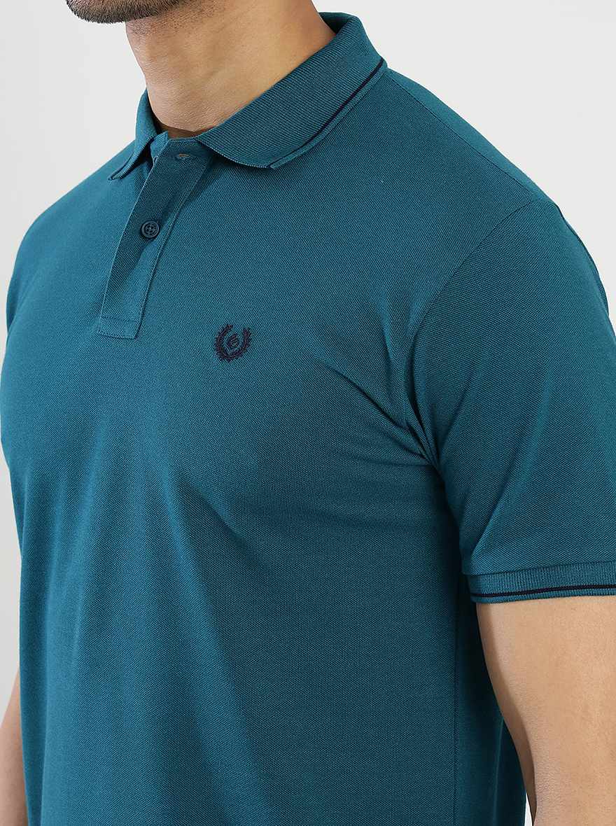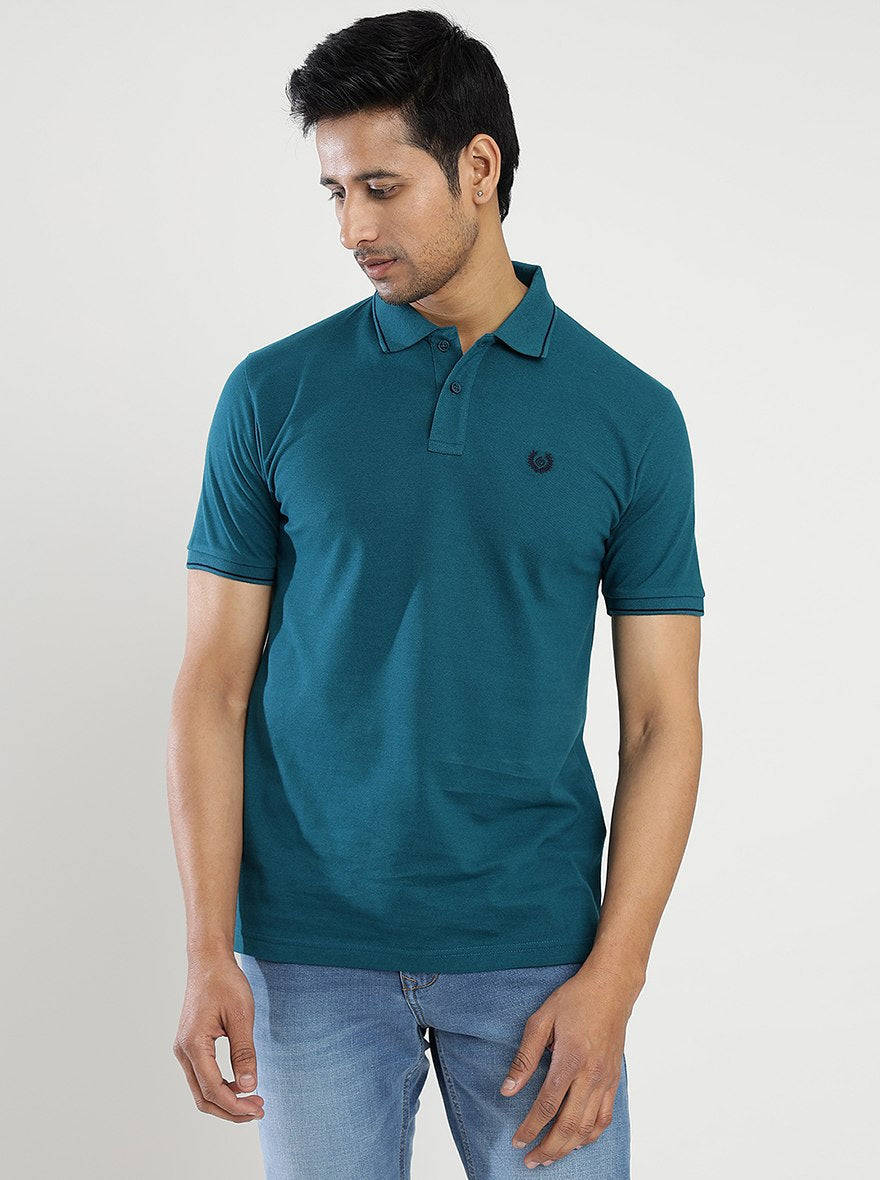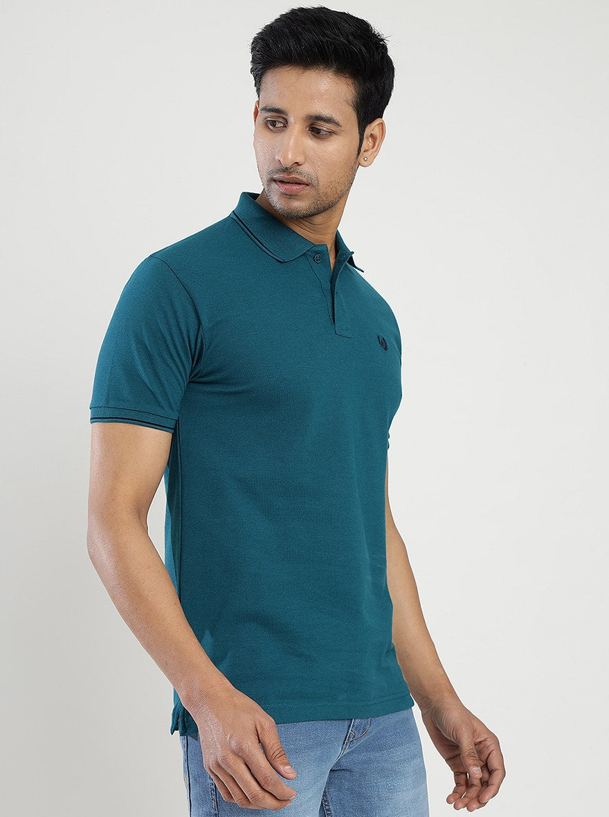 Blue Solid Slim Fit Polo T-Shirt | Greenfibre