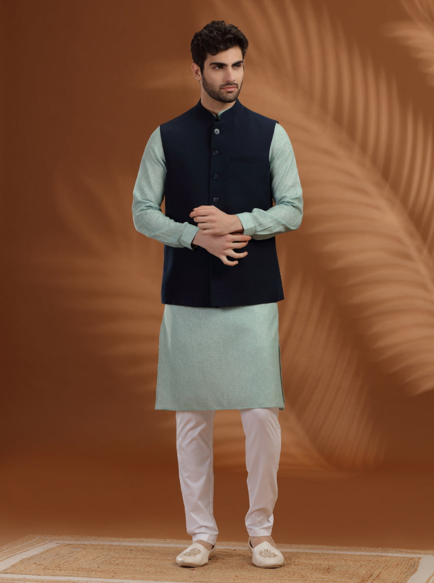 Details: Step up your formal wear game with the Greenfibre Blue Solid Blended Waist Coat, designed for the modern gentleman. This waist coat is crafted from a premium blended fabric, offering a smooth texture and durable wear. Its solid blue color provides a classic look that can easily complement any formal ensemble. Designed with a regular fit, it ensures comfort without compromising on style, allowing for a flattering silhouette that suits any body type. The sophisticated regular collar adds a refined touch, making it perfect for weddings, receptions, or any formal events where you need to make a lasting impression. Pair it with a crisp white shirt and tailored trousers for a polished look that exudes confidence and charm. The Greenfibre waist coat is a versatile addition to your wardrobe, providing endless styling options for any occasion. Invest in quality and style with this impeccable piece from Greenfibre, and showcase your taste for timeless elegance.