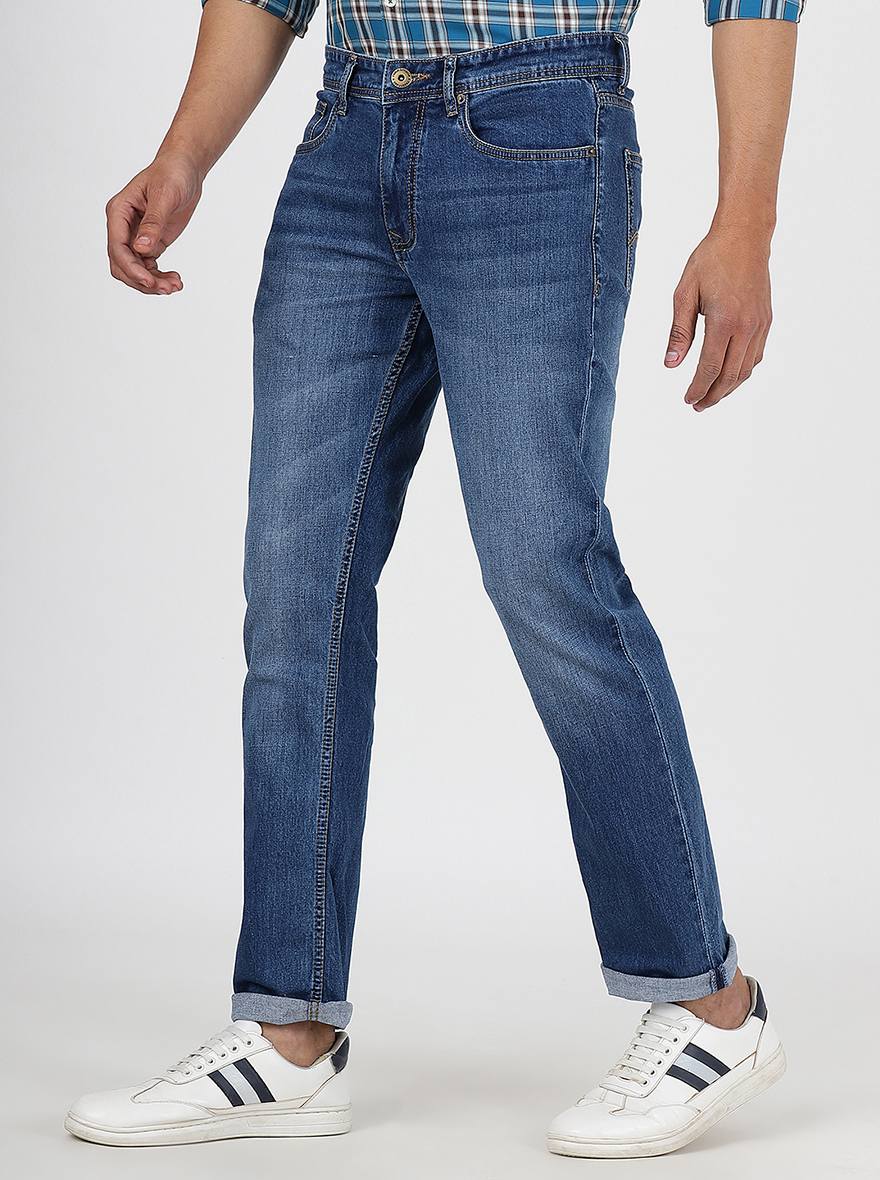 Blue Washed Straight Fit Jeans | Greenfibre