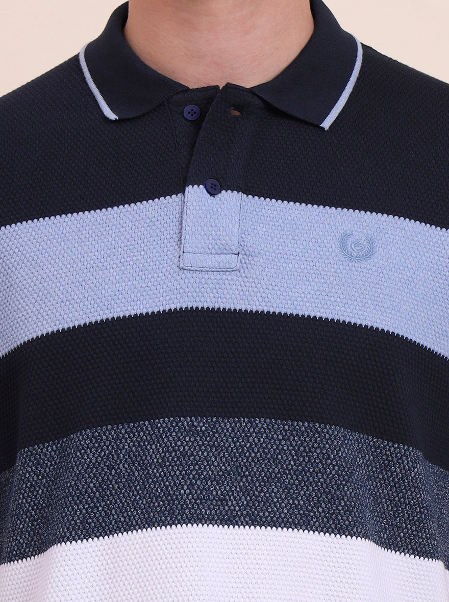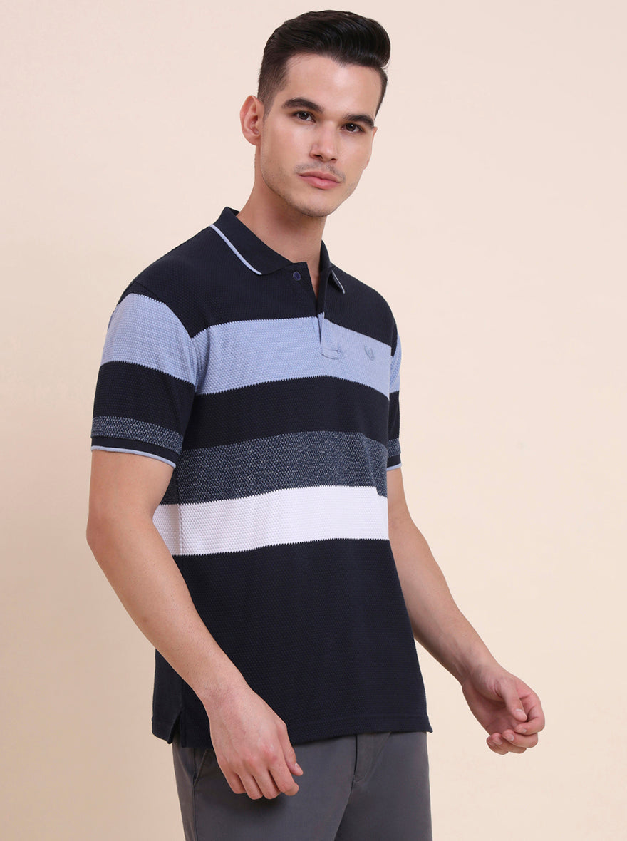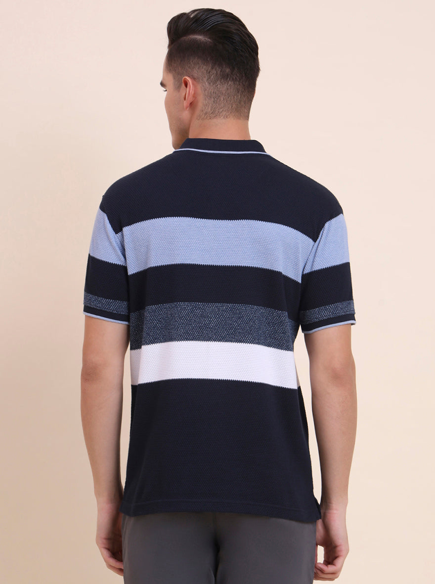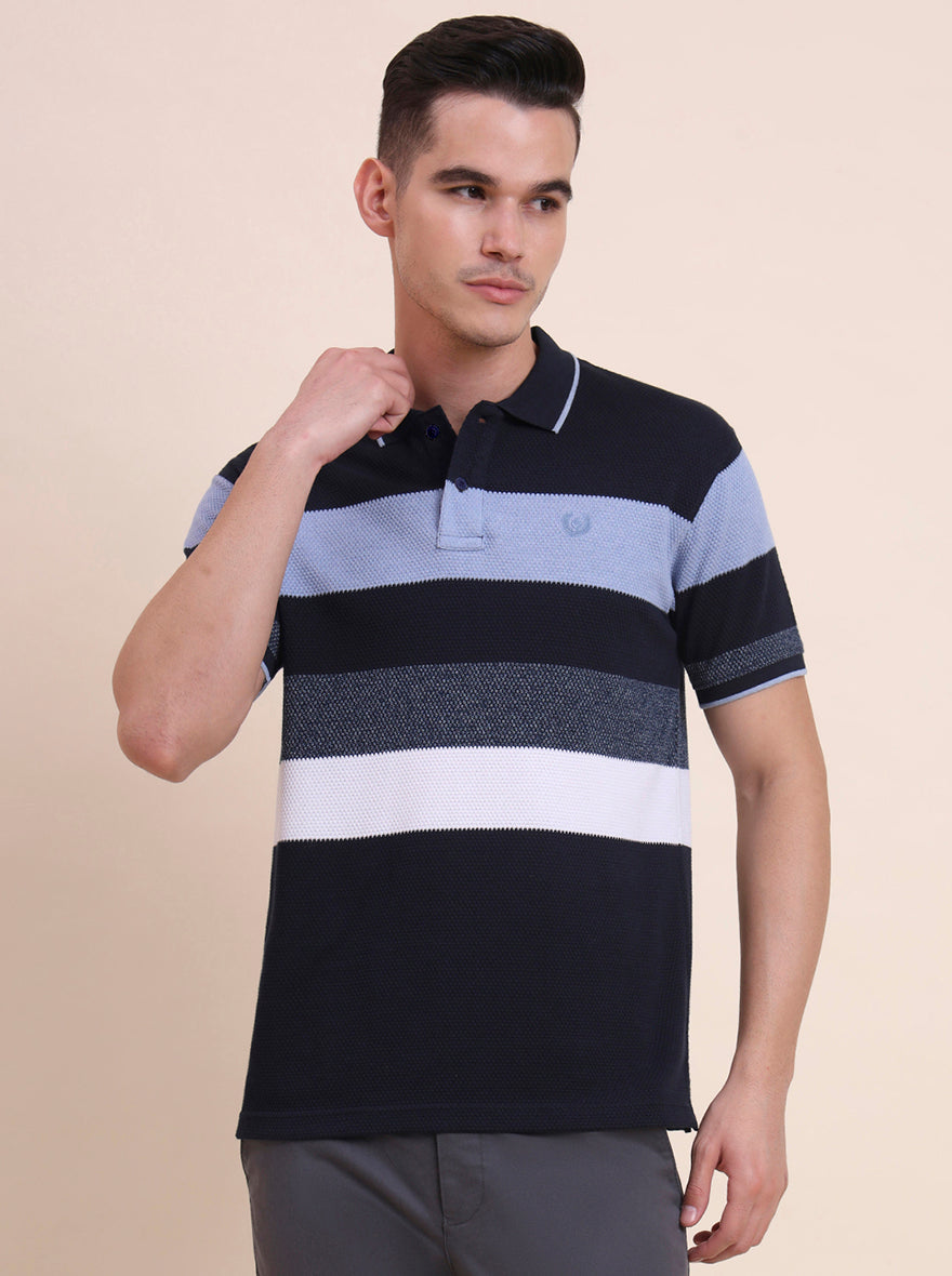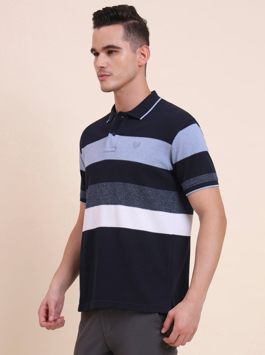 Blue & White Striped Slim Fit Polo T-Shirt | Greenfibre