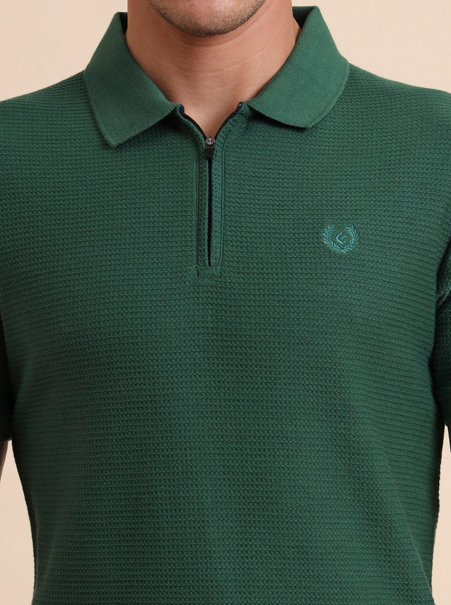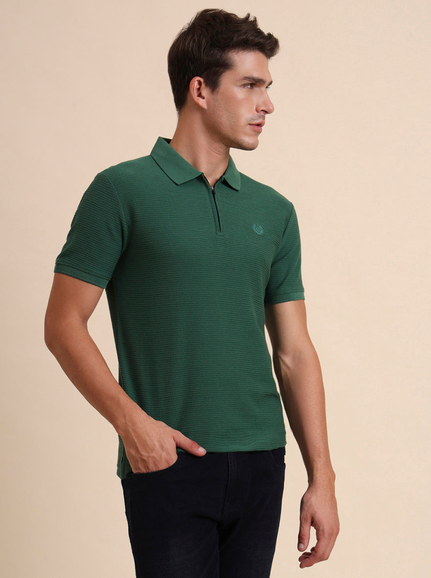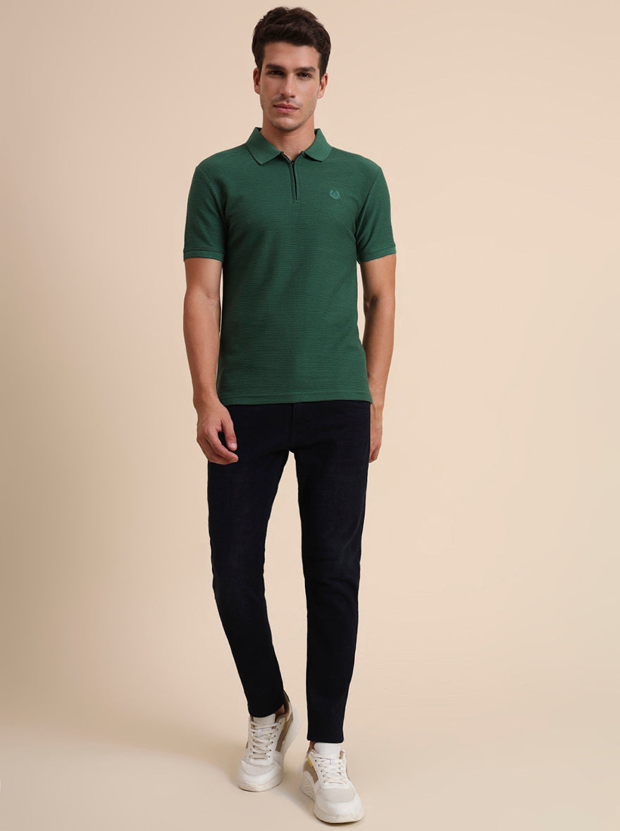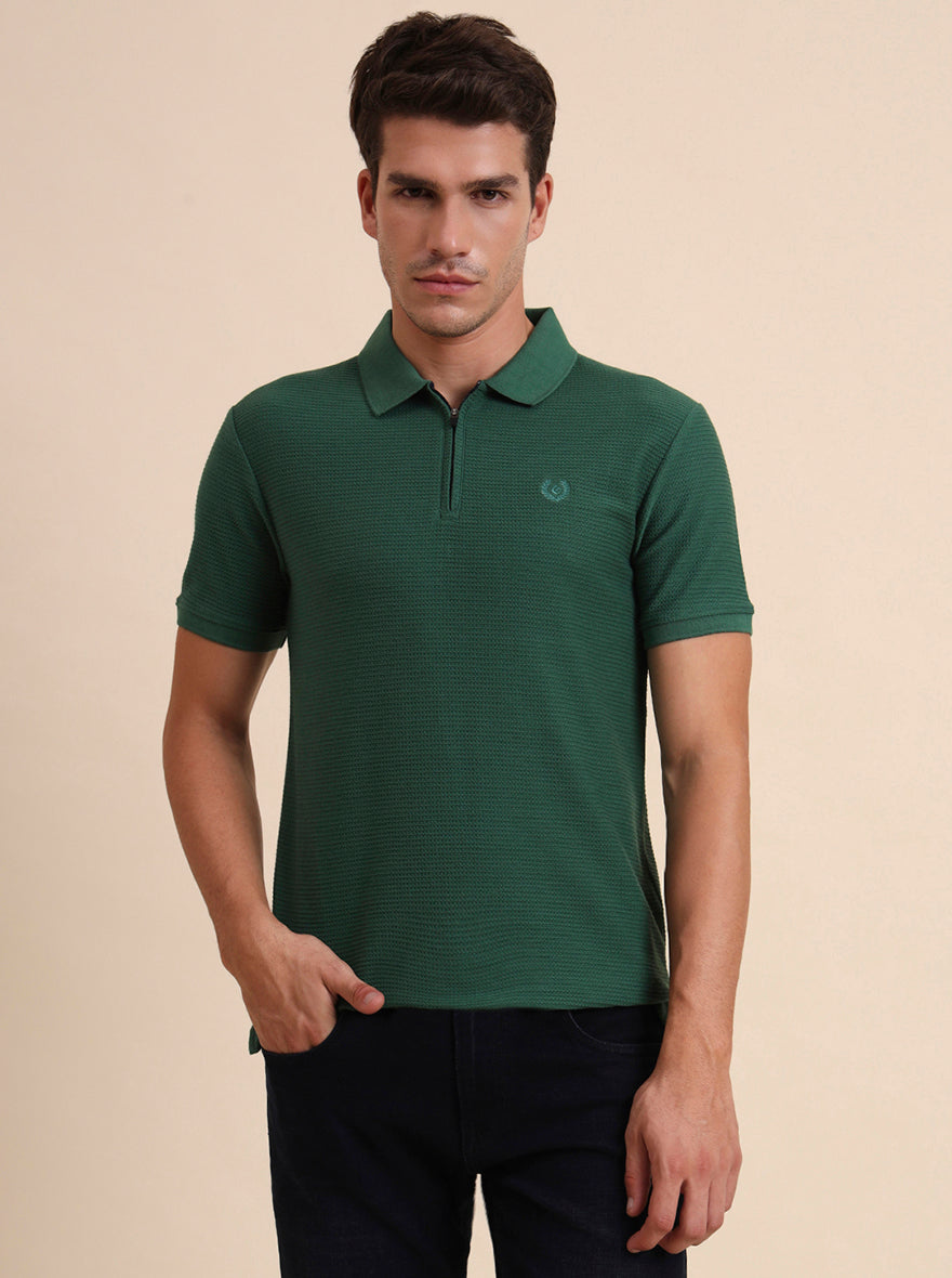 Details: Upgrade your casual collection with the Greenfibre Bottle Green Polo T-Shirt. Crafted from a comfortable cotton blend, this slim-fit tee features a stylish printed design and practical half sleeves. The classic polo collar adds a refined touch, making it suitable for various casual outings. Perfect for a modern and comfortable everyday look.Wash Care: Machine/Hand wash in cold water separately. Use mild detergent. Do not bleach or wring. Tumble dry low. Dry in shade. Warm iron if required.