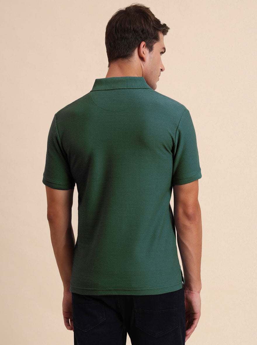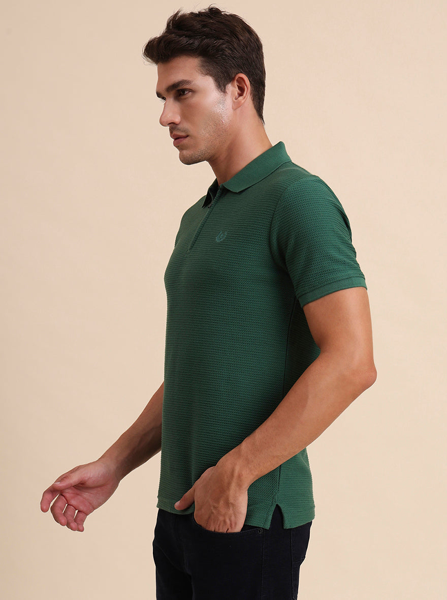 Bottle Green Printed Slim Fit Polo T-Shirt | Greenfibre