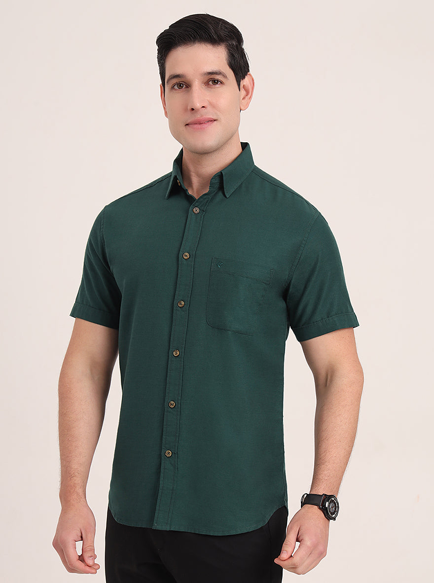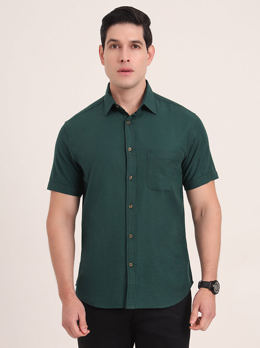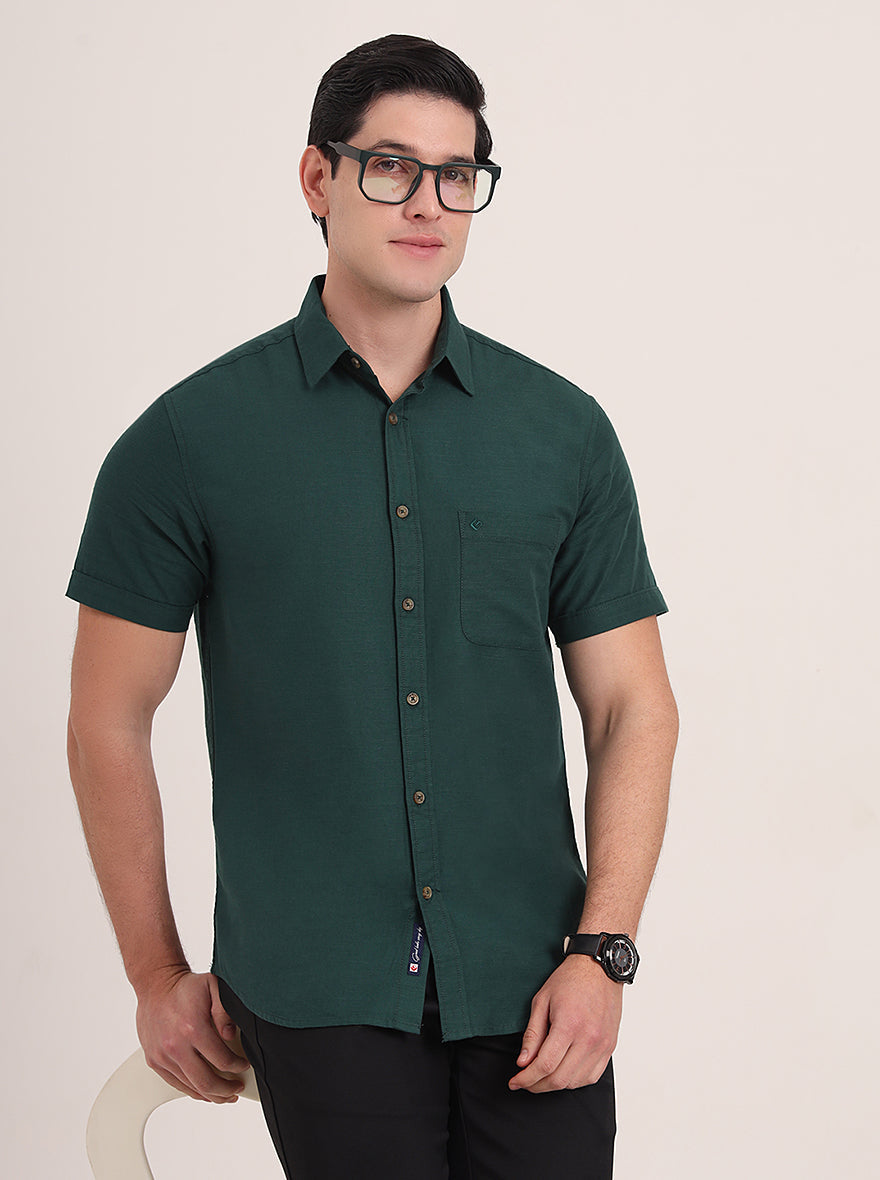 Bottle Green Solid Slim Fit Casual Shirt | Greenfibre