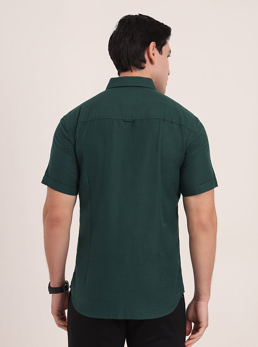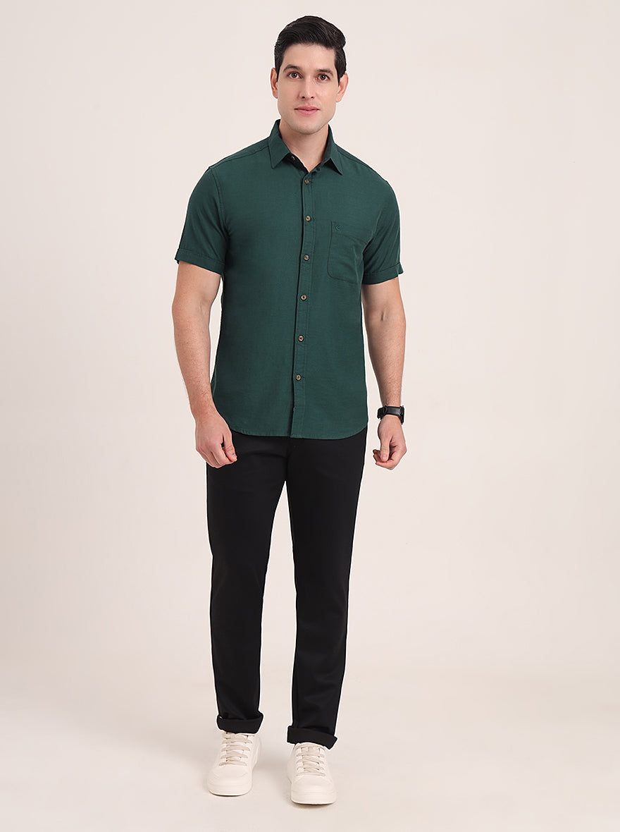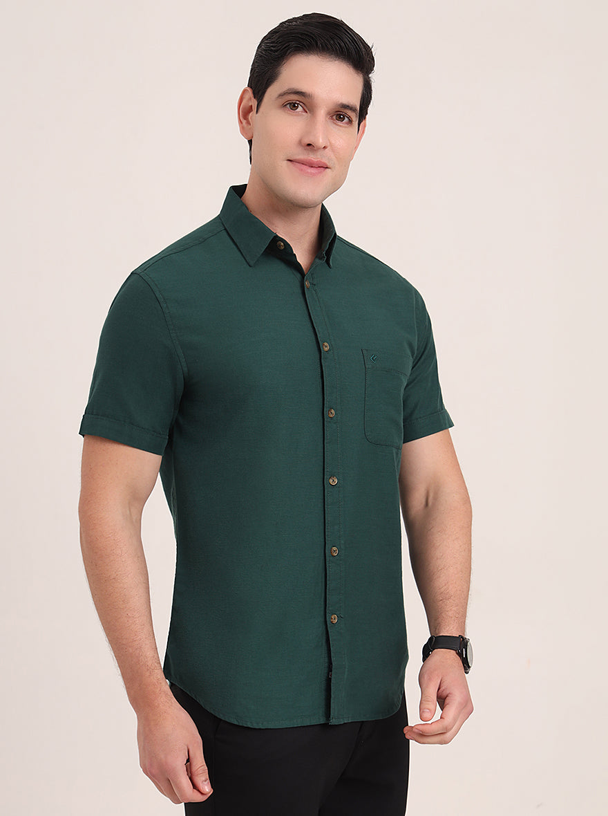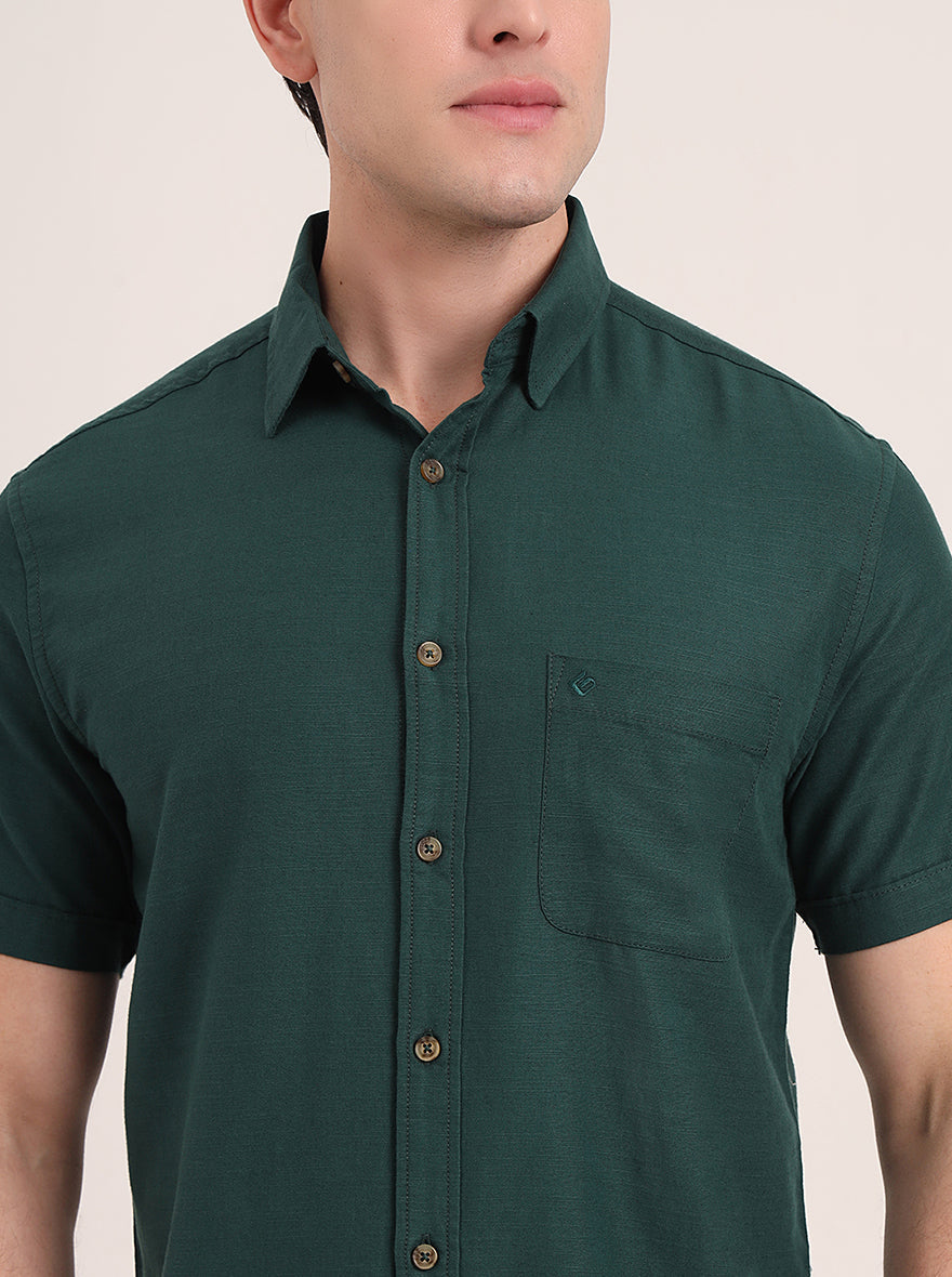 Bottle Green Solid Slim Fit Casual Shirt | Greenfibre