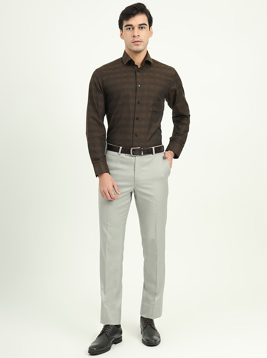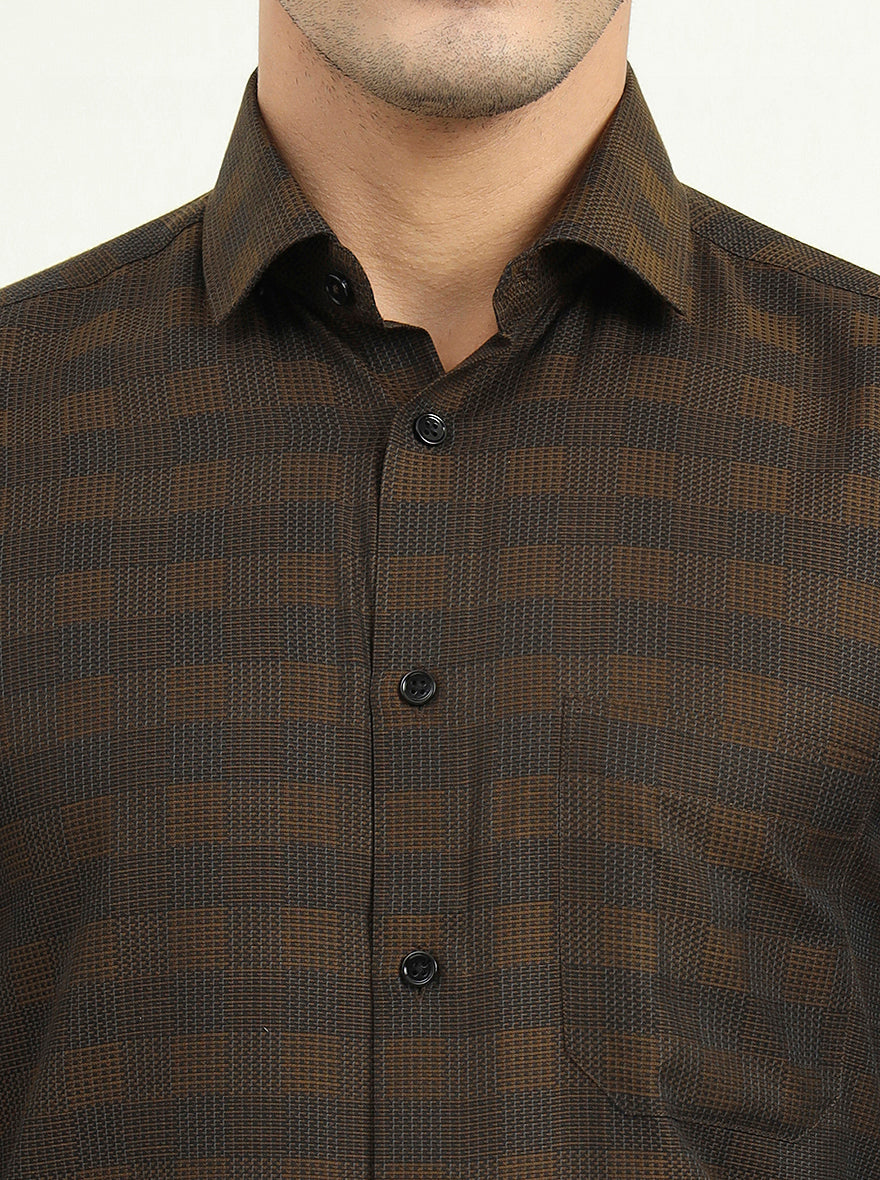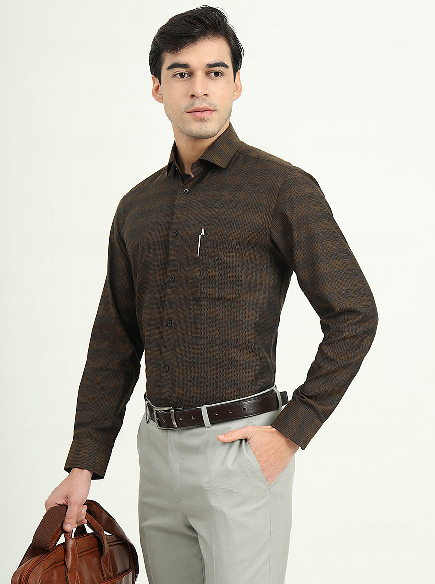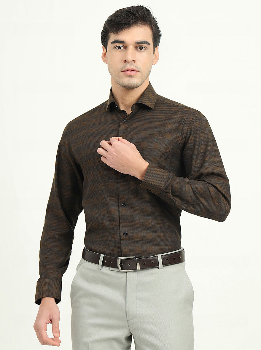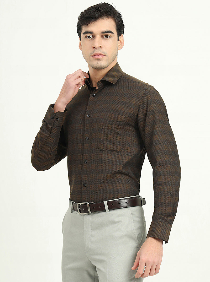Brown & Black Checked Slim Fit Formal Shirt | Greenfire