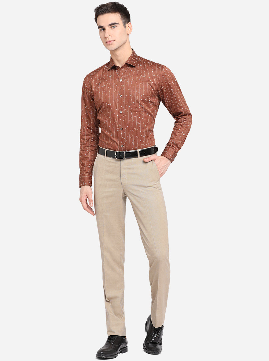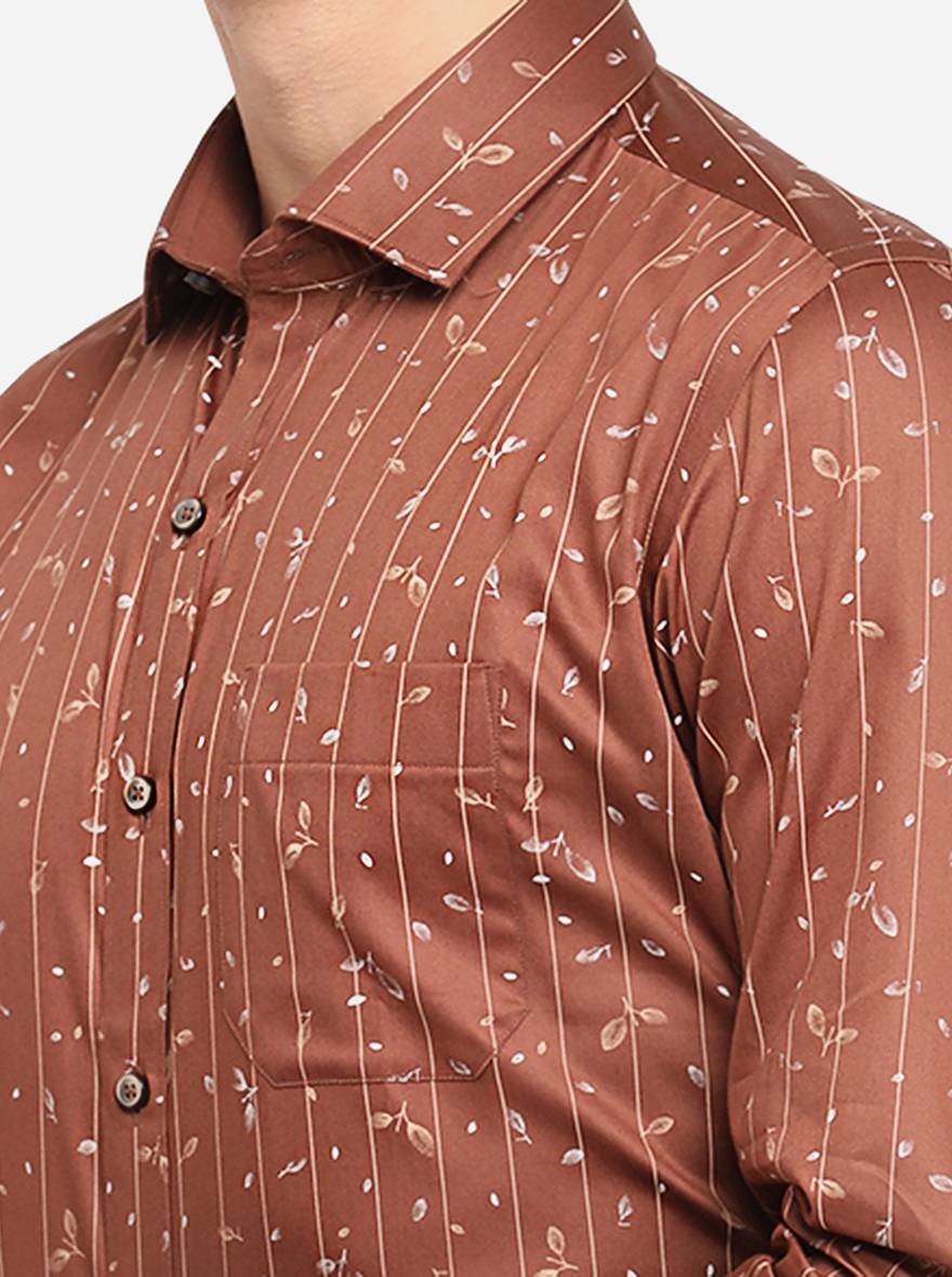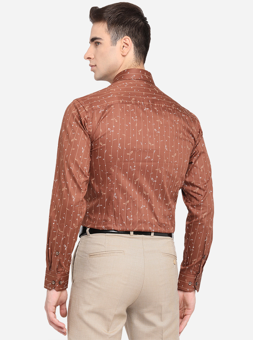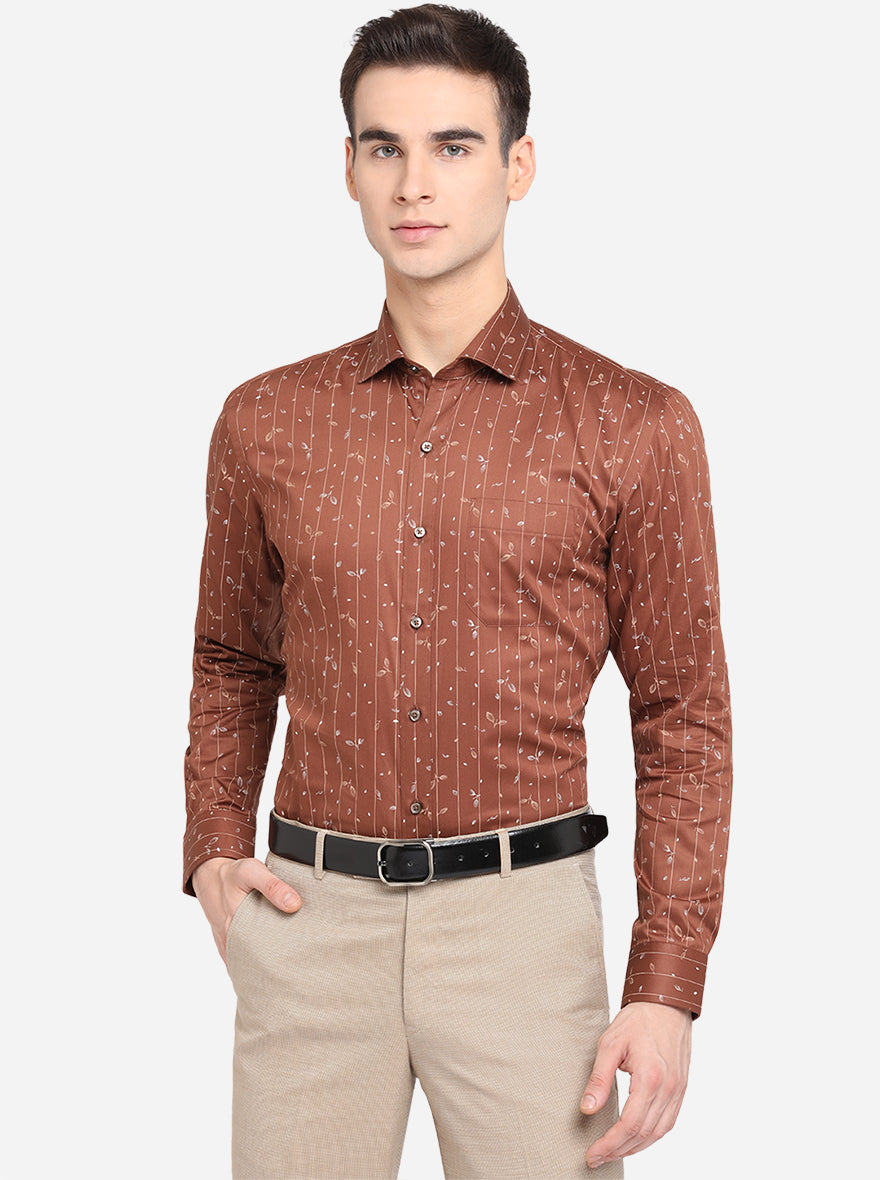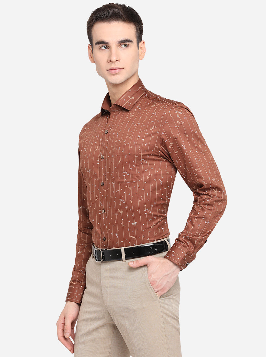 Brown Printed Slim Fit Formal Shirt | Greenfibre