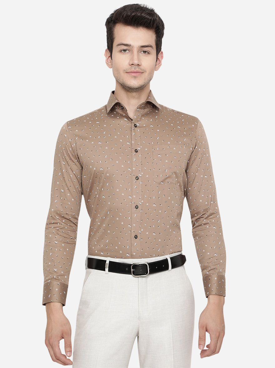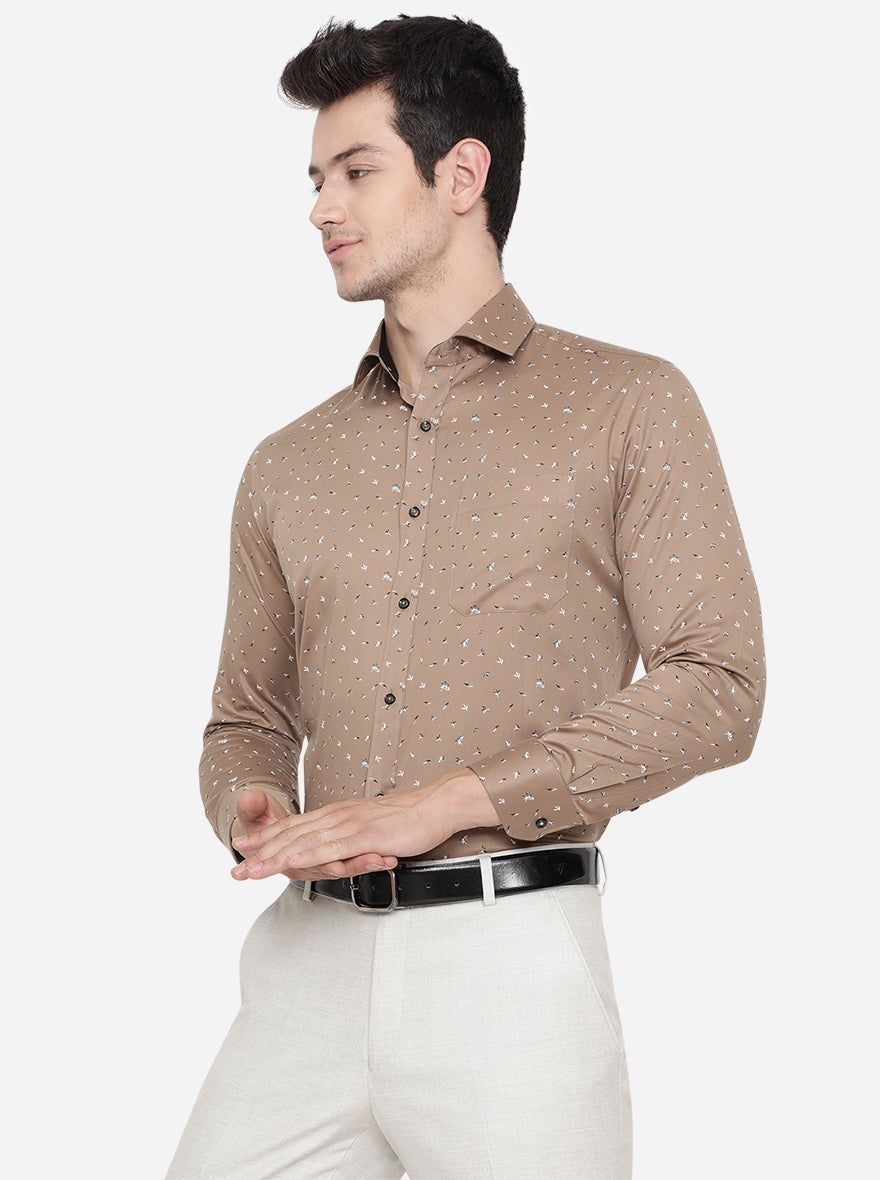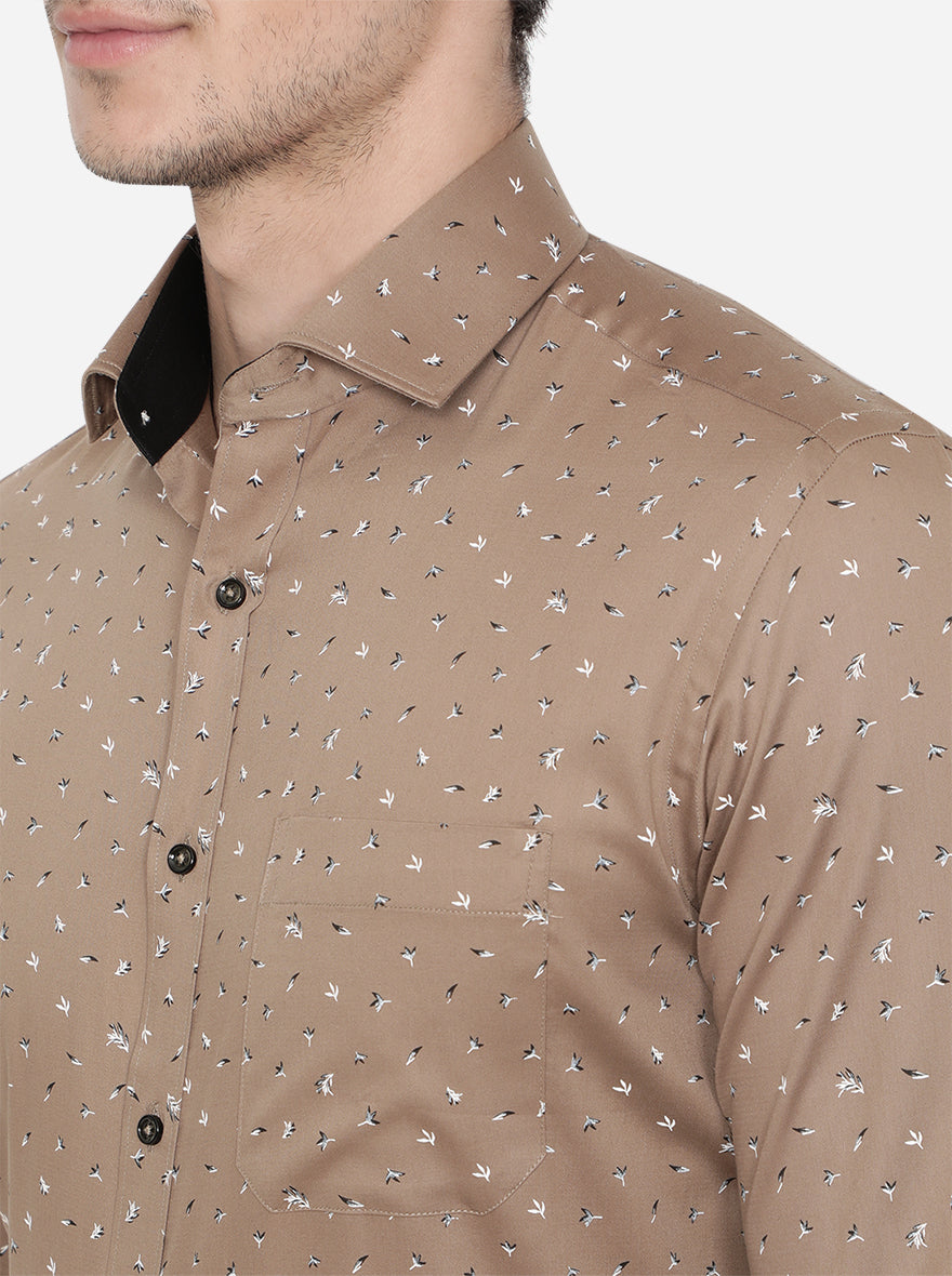 Brown Printed Slim Fit Party Wear Shirt | Greenfibre