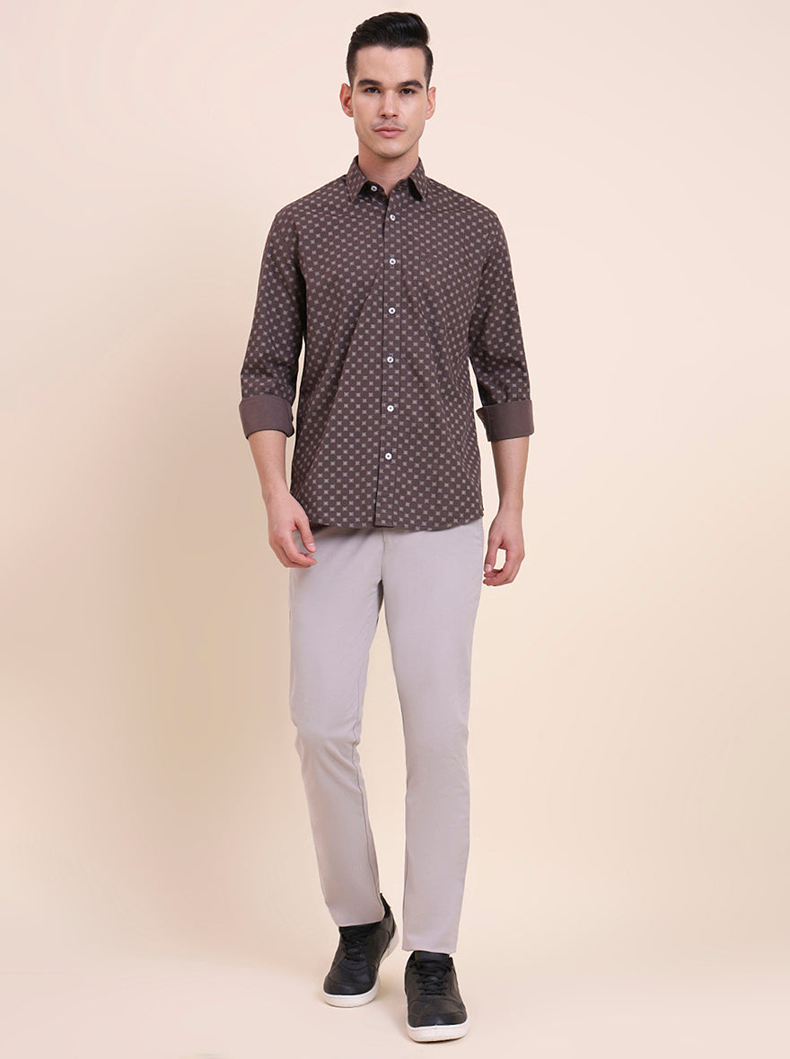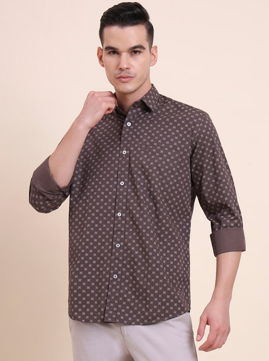 Brown Printed Smart Fit Semi Casual Shirt | Greenfibre