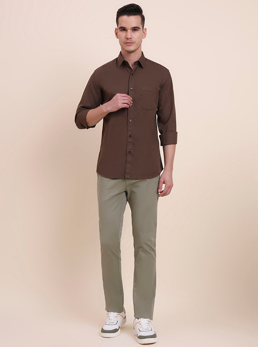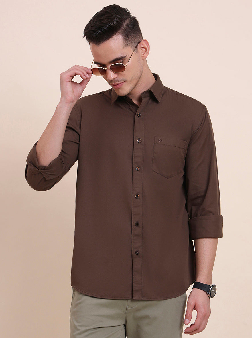 Brown Solid Smart Fit Semi Casual Shirt | Greenfibre