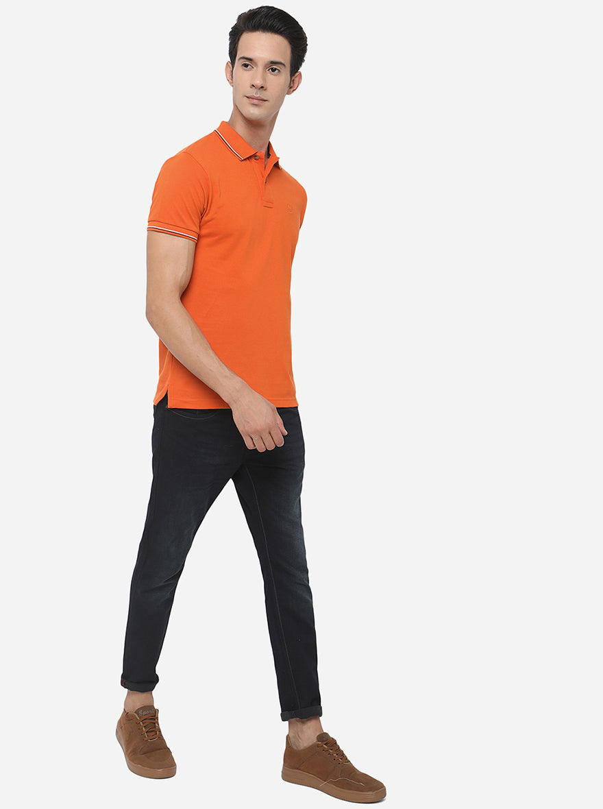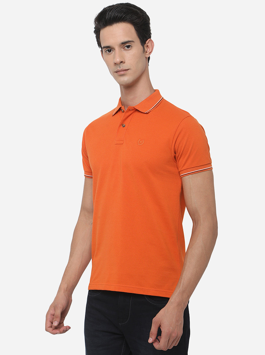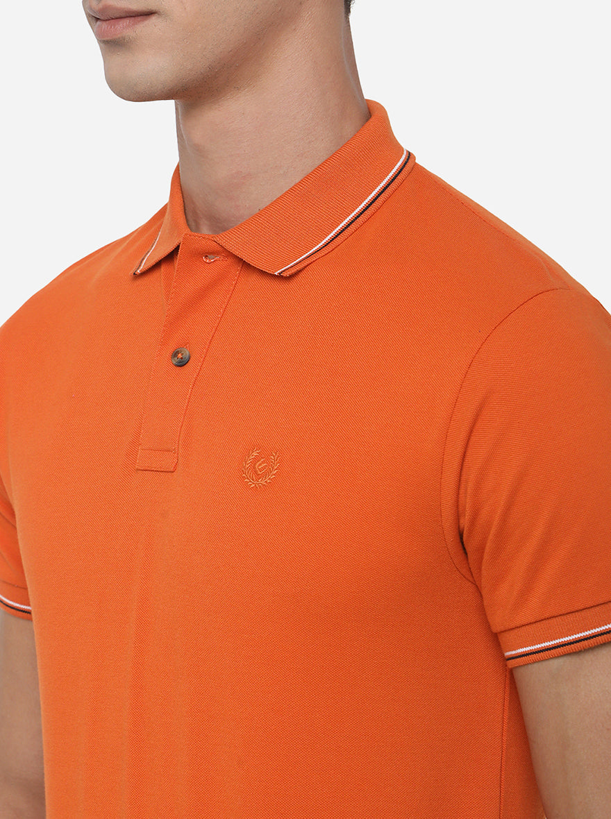 Burnt Orange Solid Slim Fit Polo T-Shirt | Greenfibre