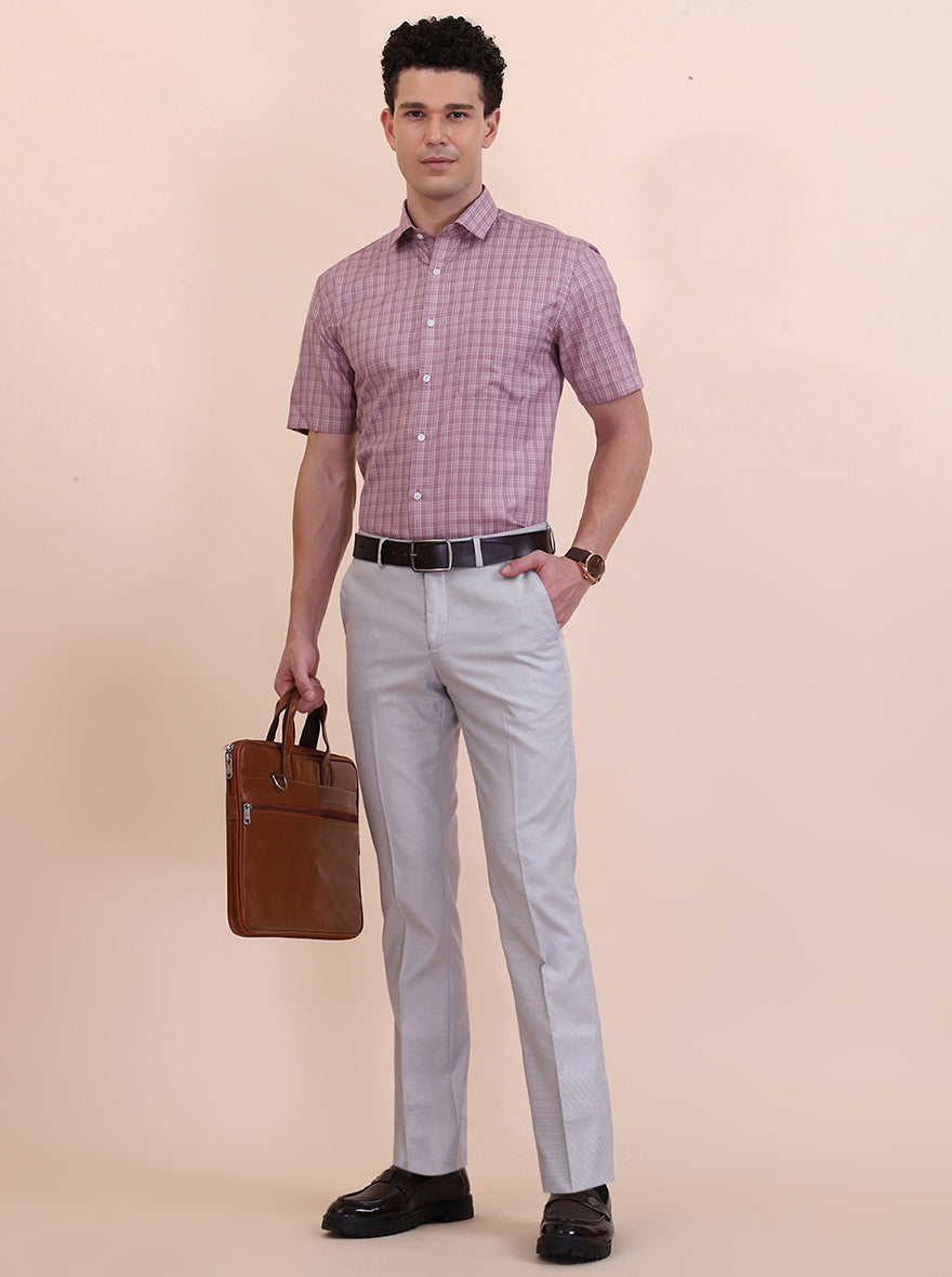 Carrot Pink Checked Regular Fit Formal Shirt | Greenfibre