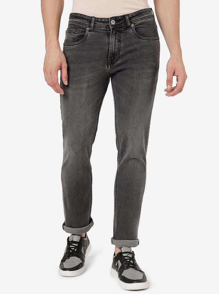 Charcoal Grey Solid Straight Fit Jeans | Greenfibre