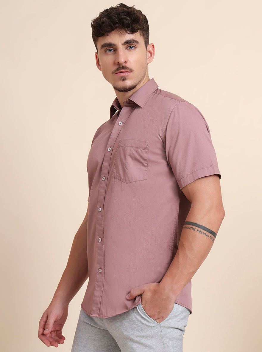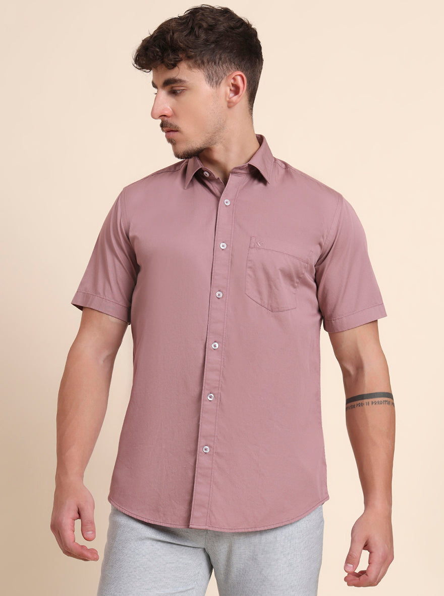 Coral Pink Solid Smart Fit Semi Casual Shirt | Greenfibre