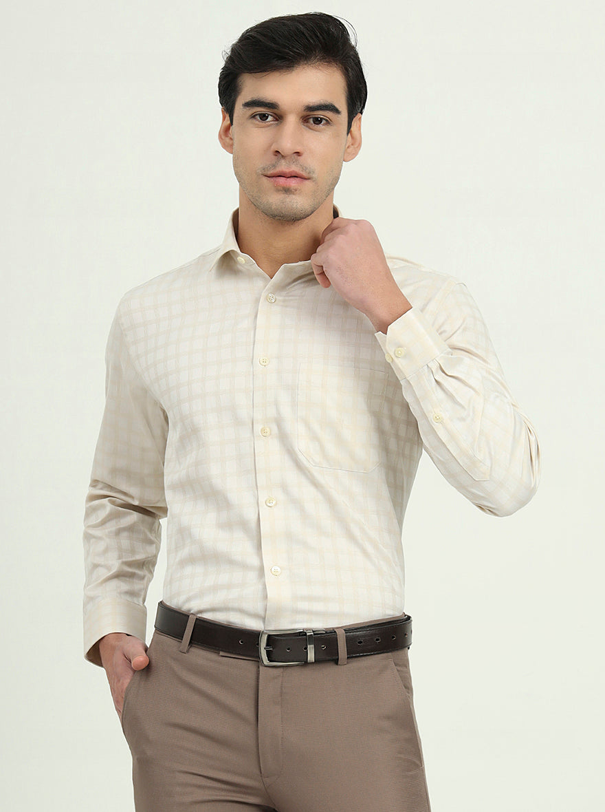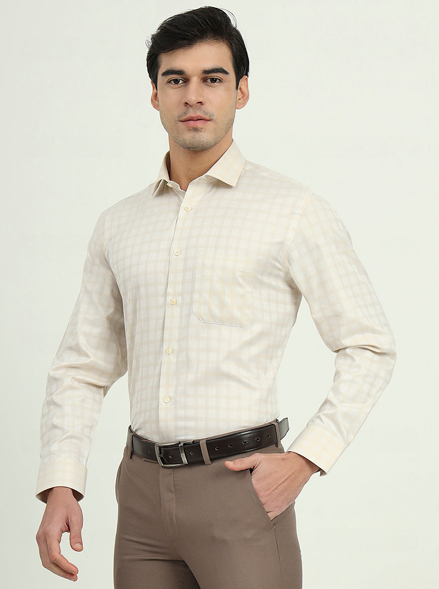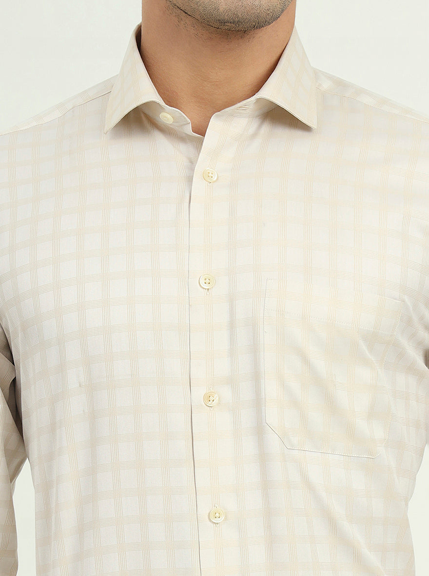 Cream Checked Regular Fit Formal Shirt | Greenfire