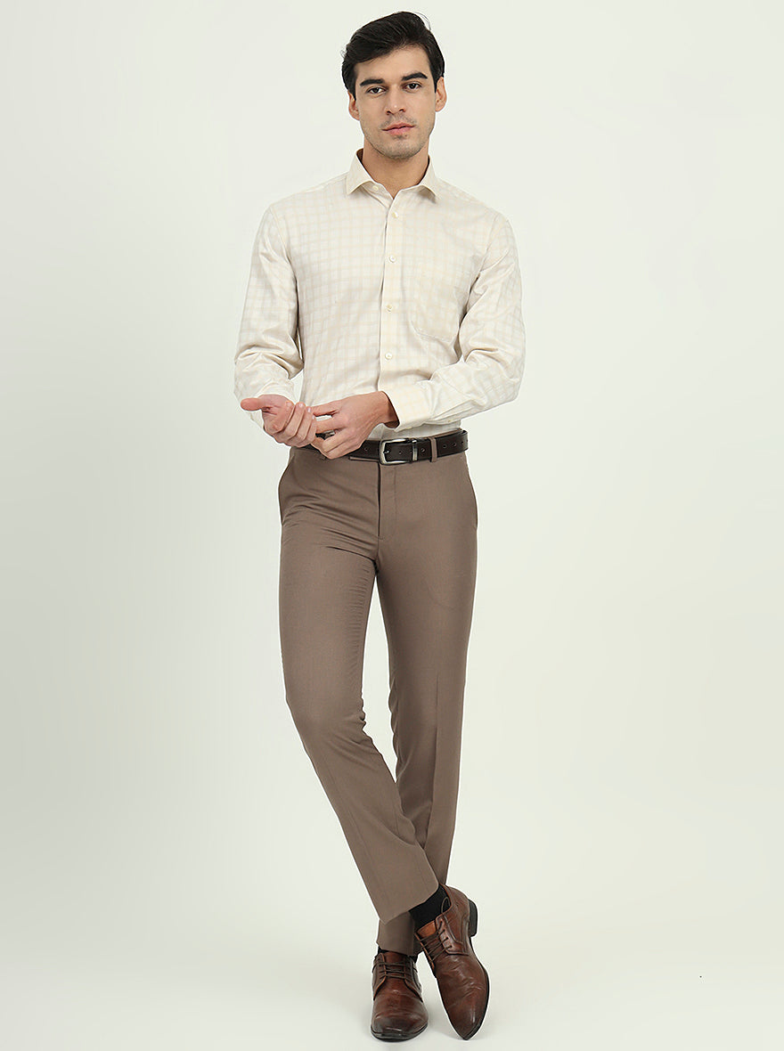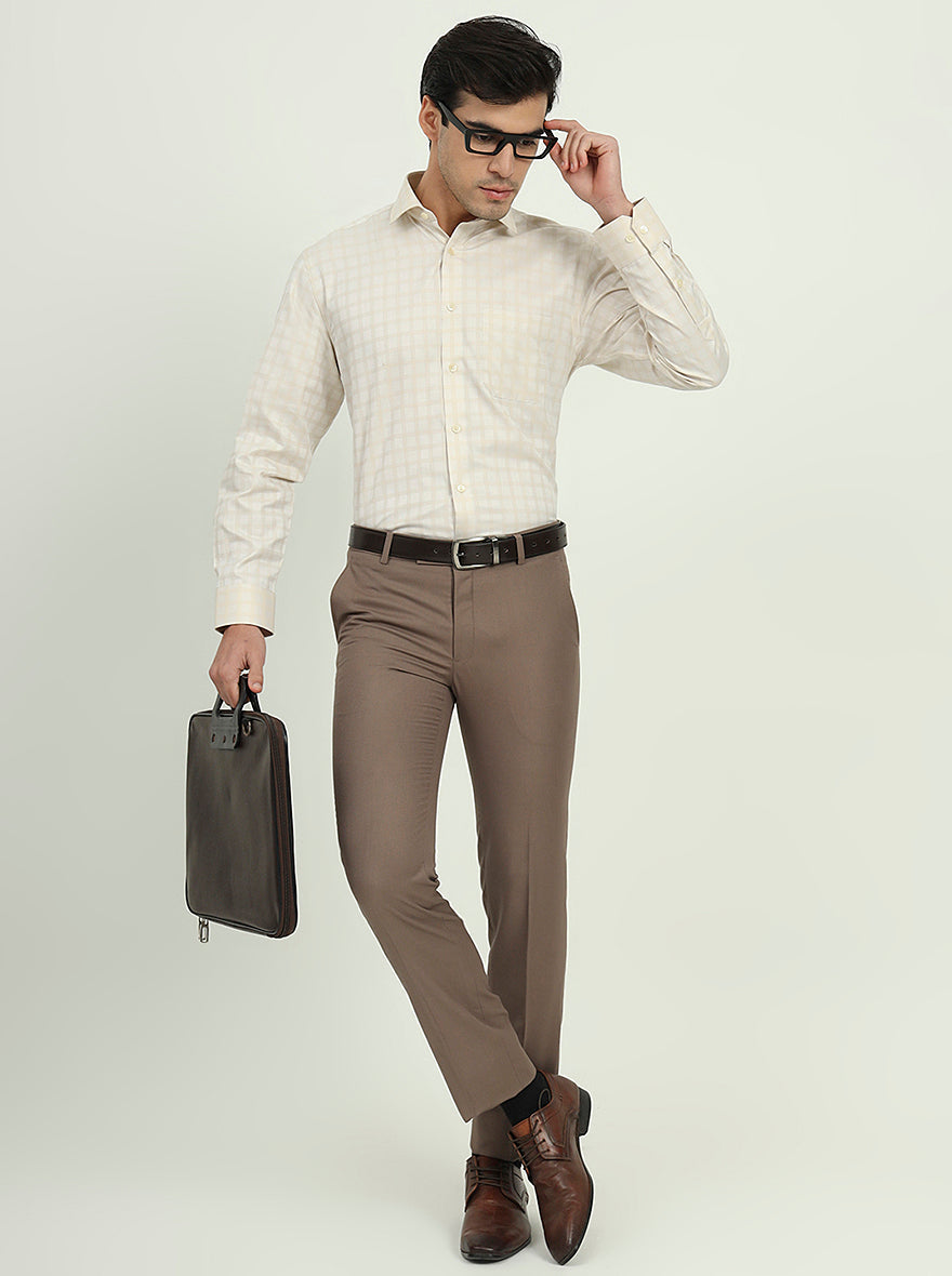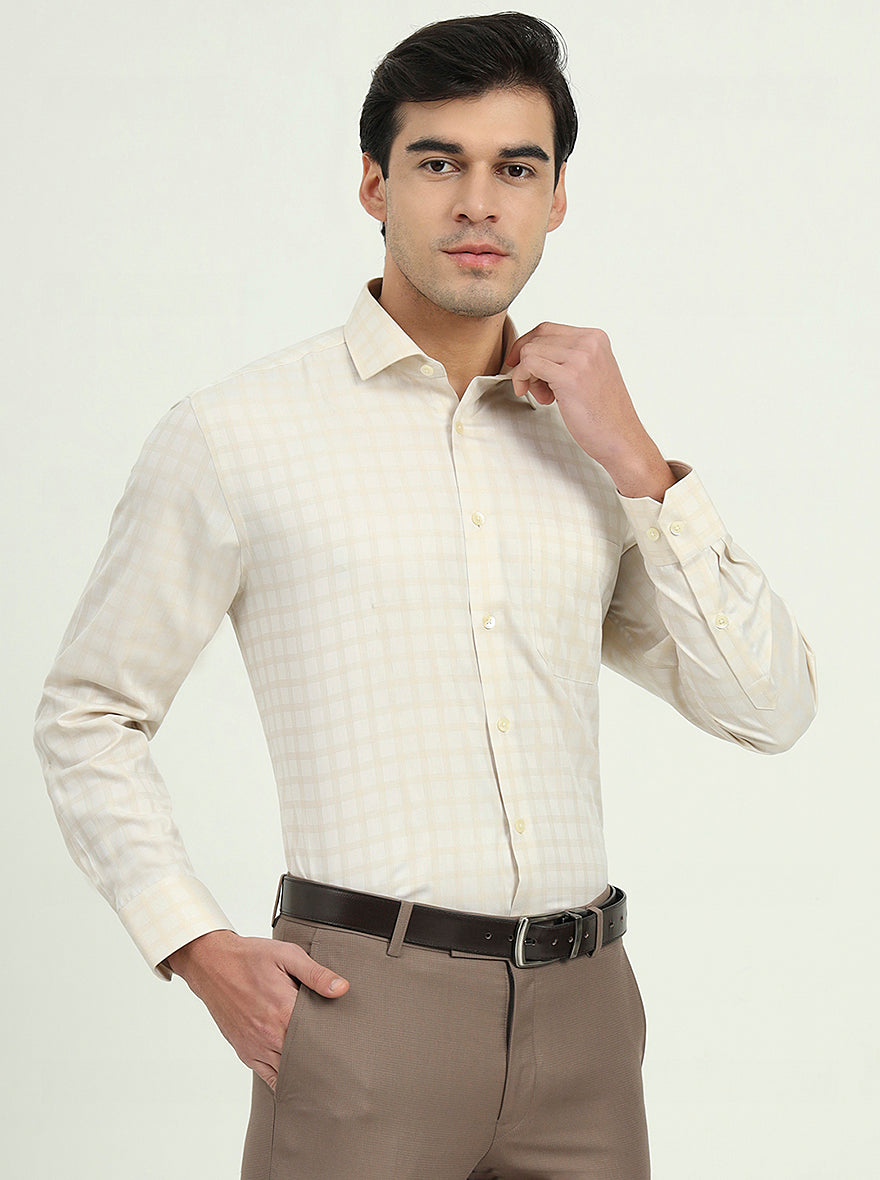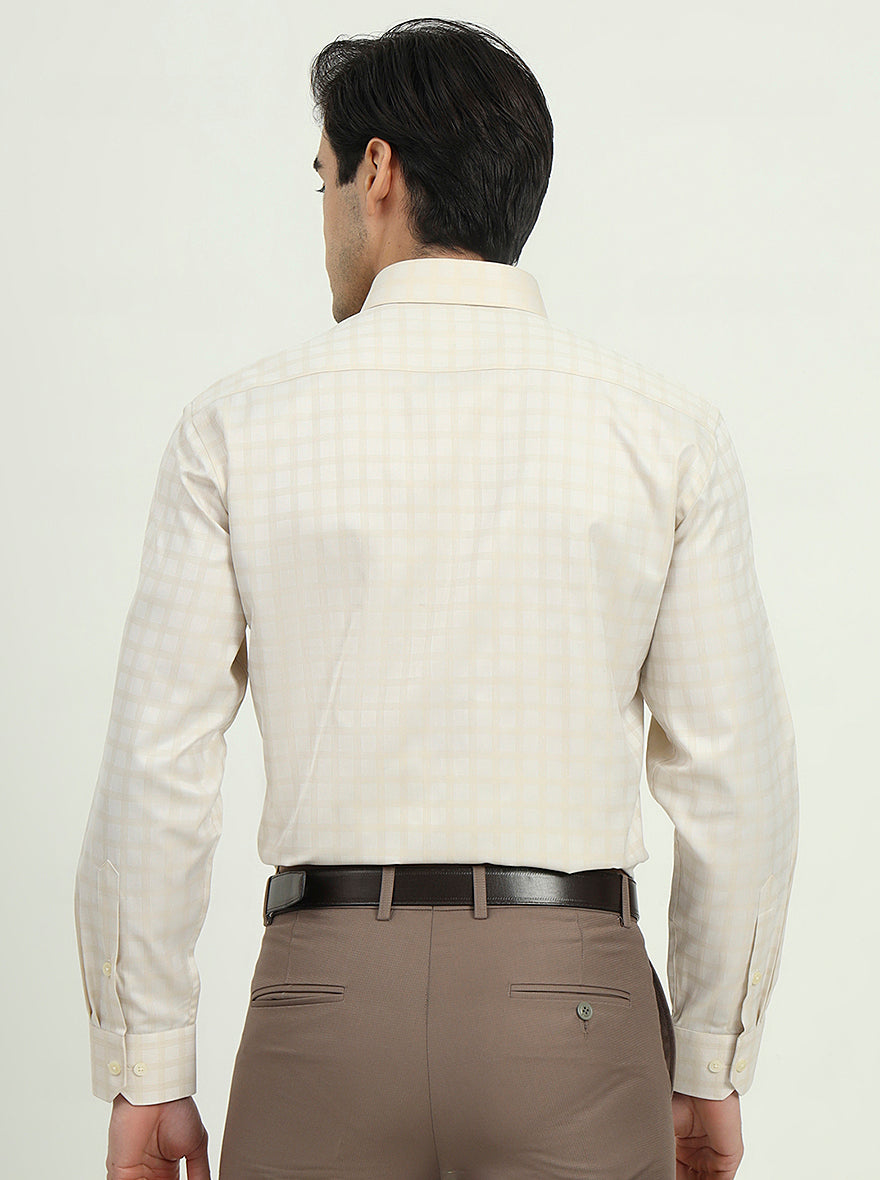 Cream Checked Regular Fit Formal Shirt | Greenfire