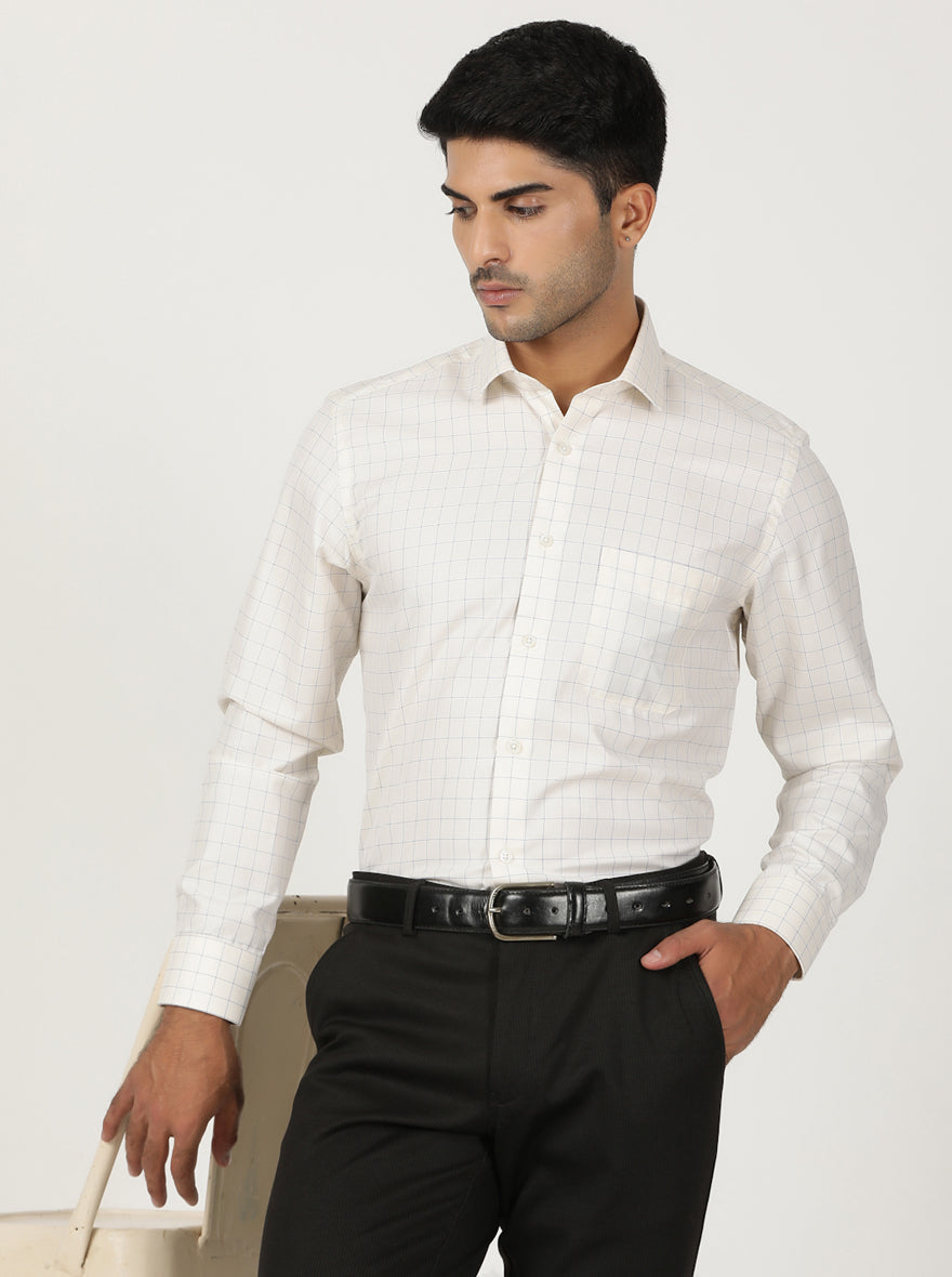 Cream Checked Slim Fit Formal Shirt | Greenfibre